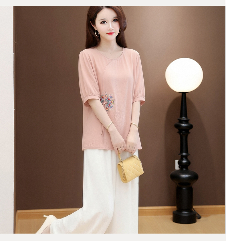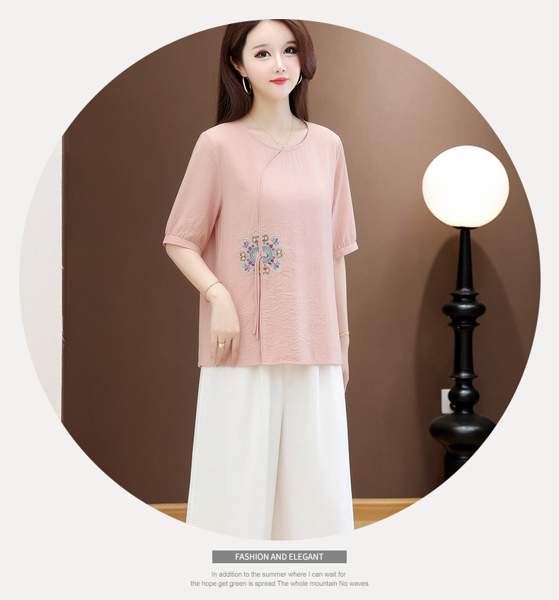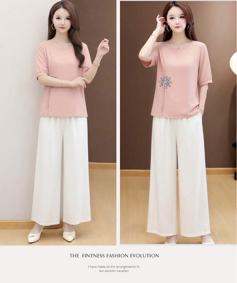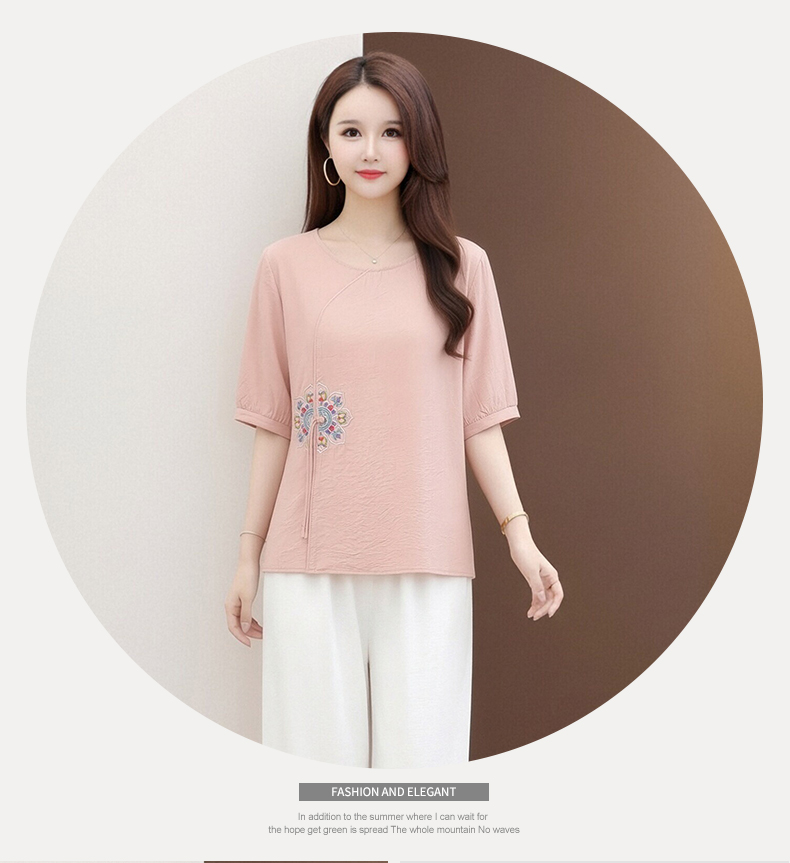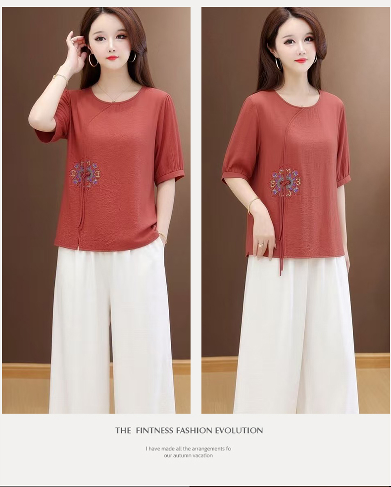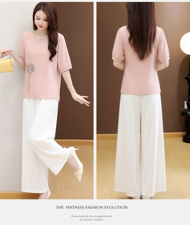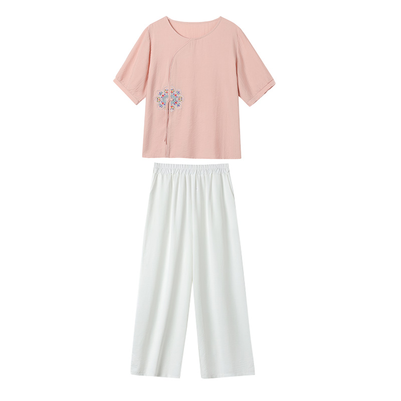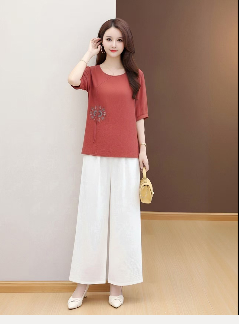 RY3494# 实拍有货 2026夏季新款宽松连衣裙棉麻妈妈套装新中式套裤透气