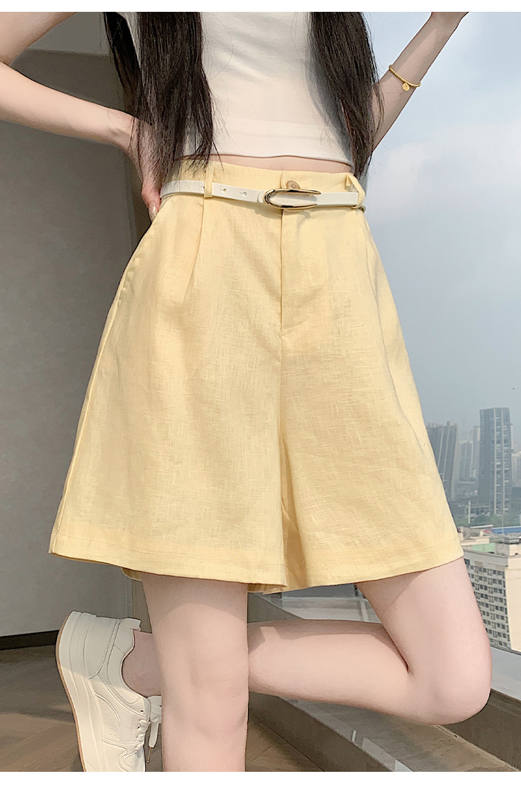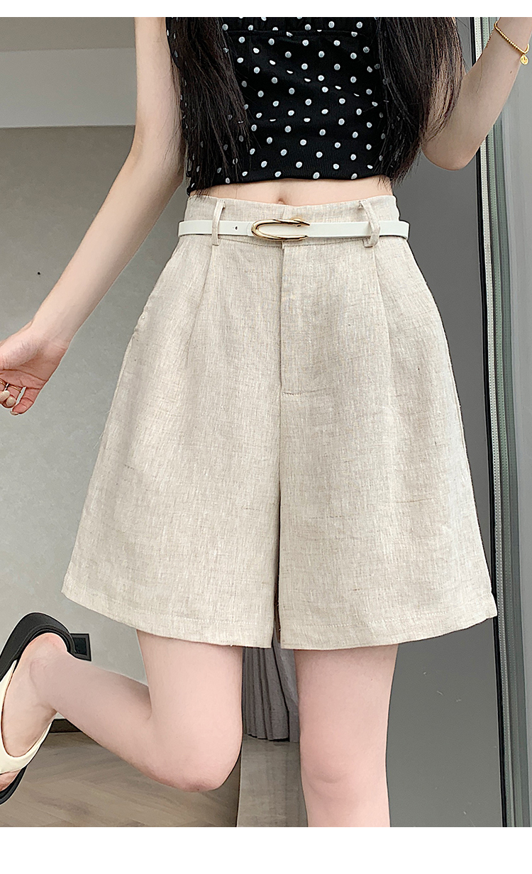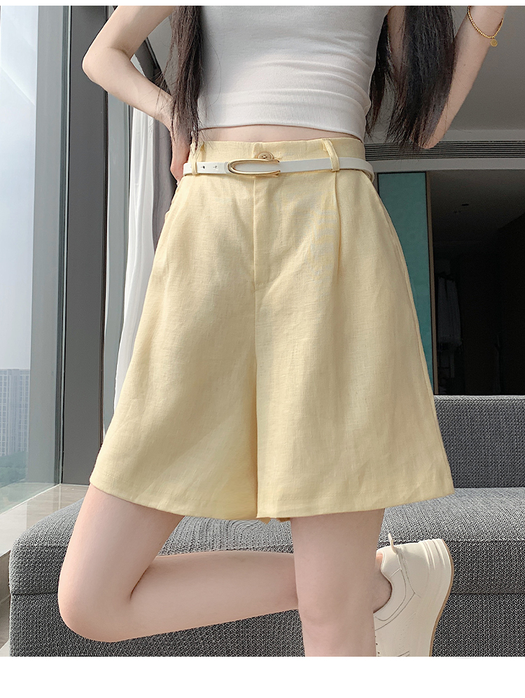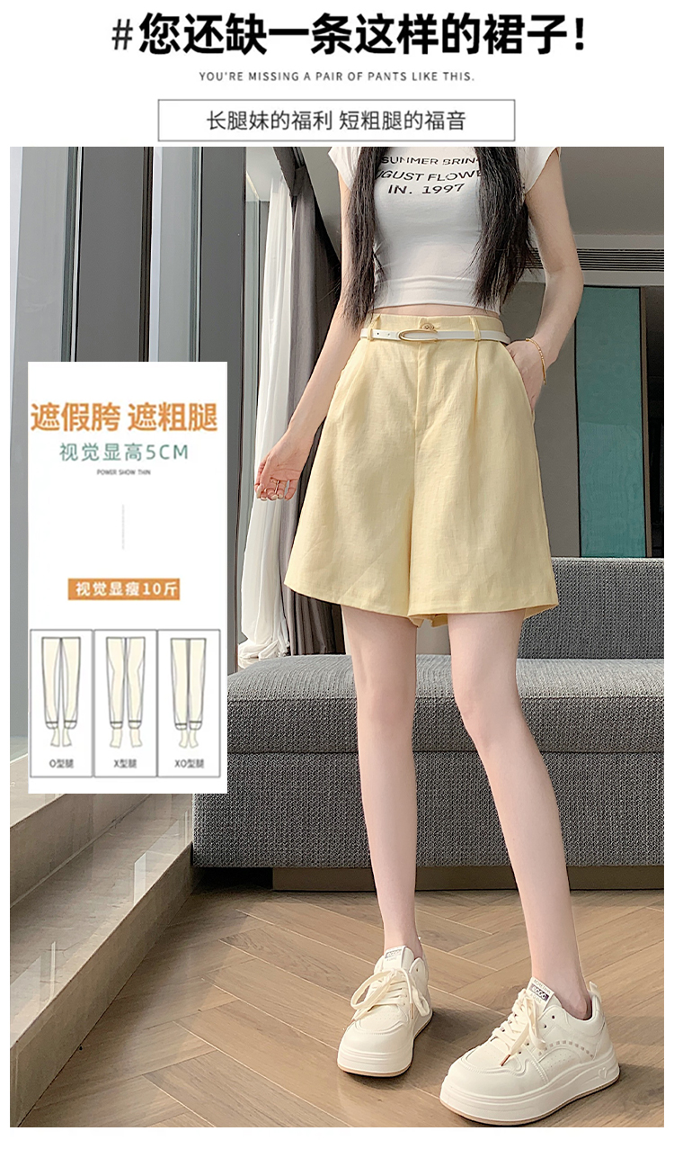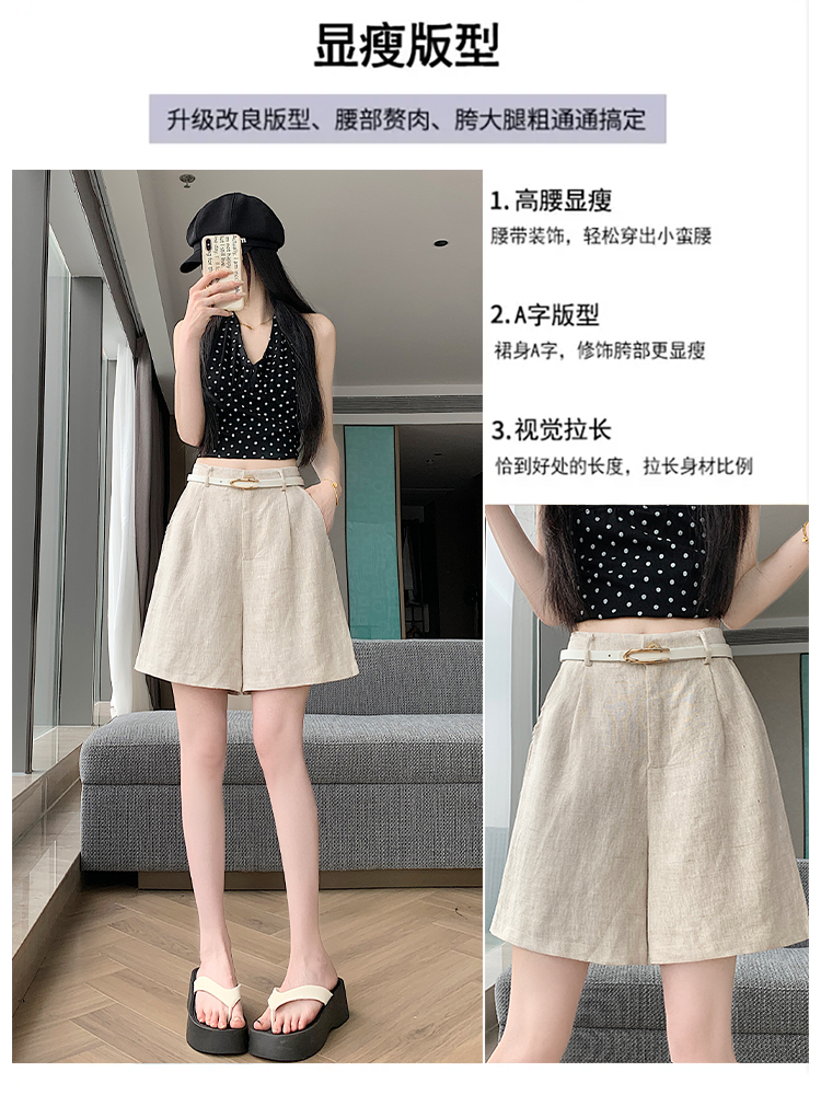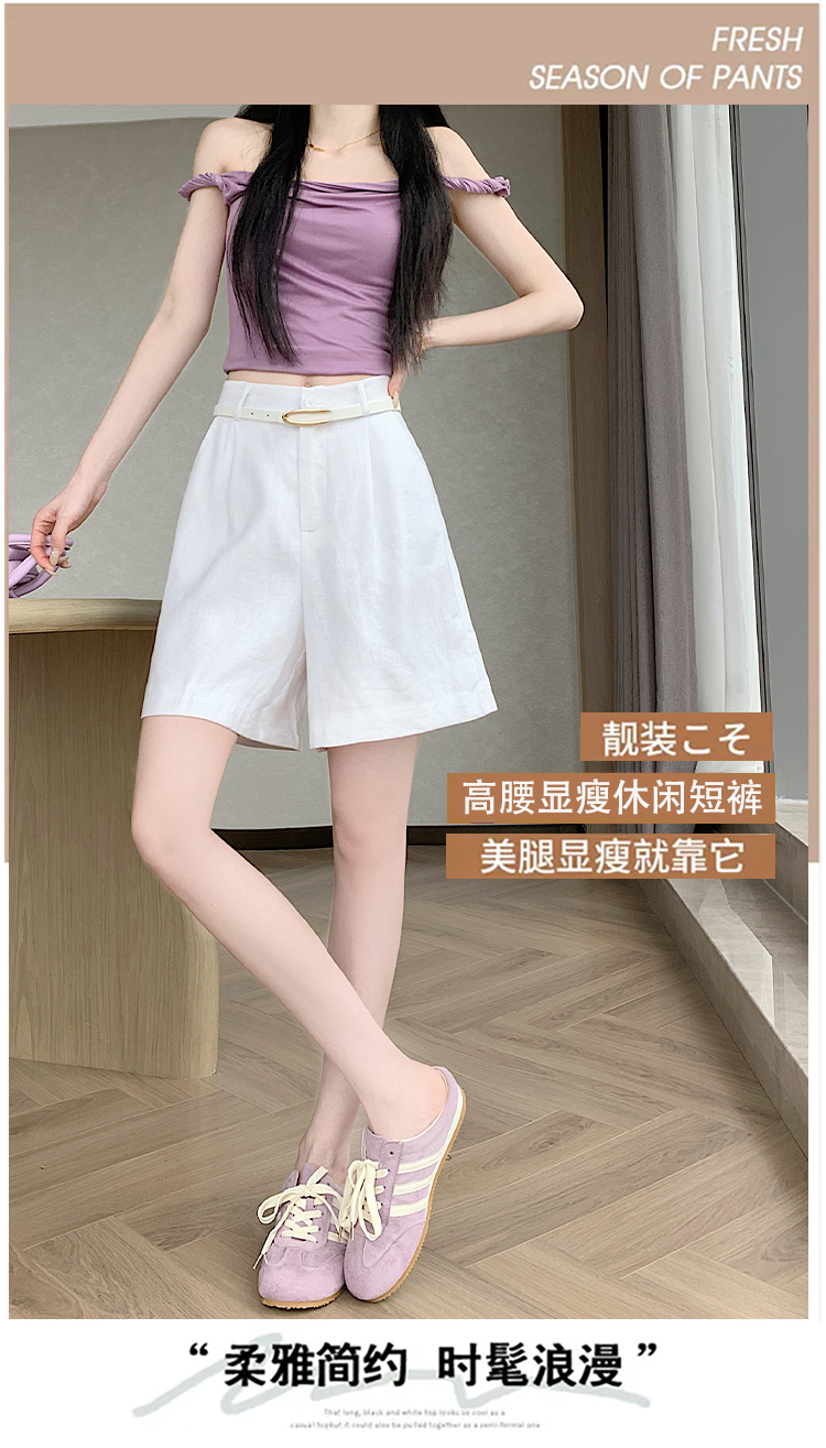 RY4281# 实拍2026新版网红辣妹高级亚麻面料百搭高腰短裤 阔腿裤配送腰带