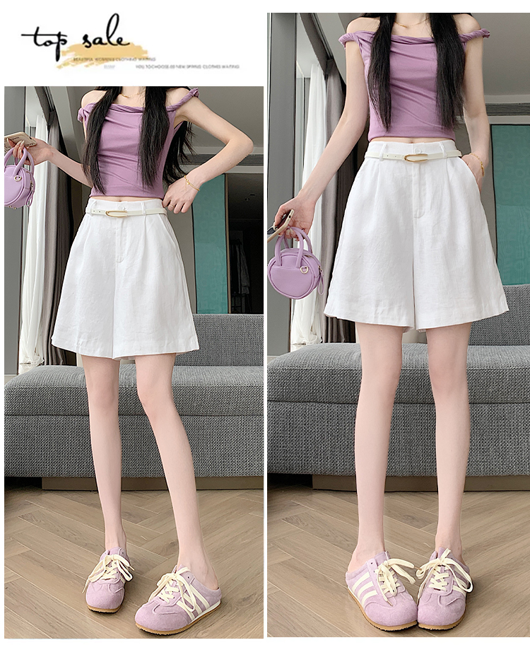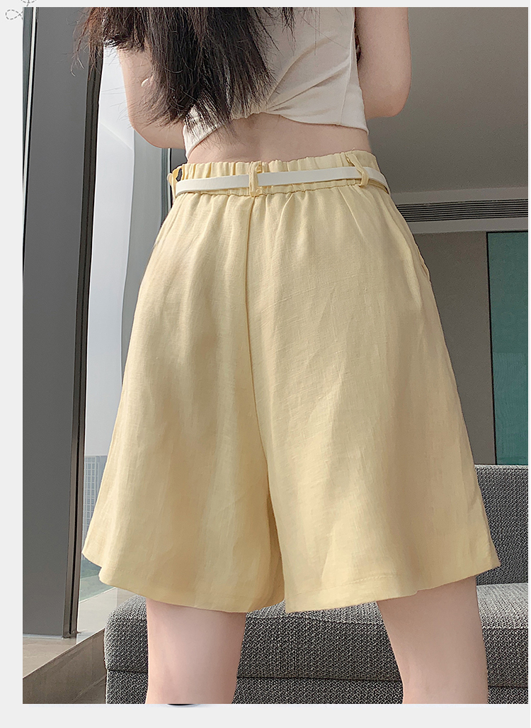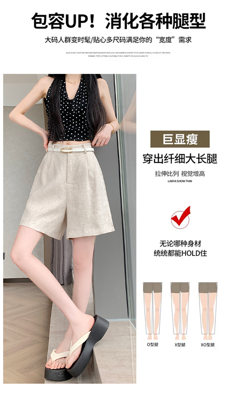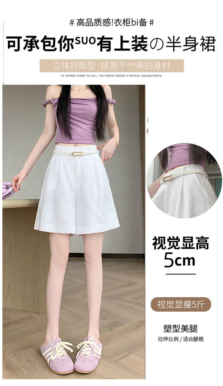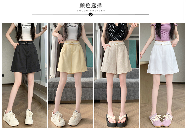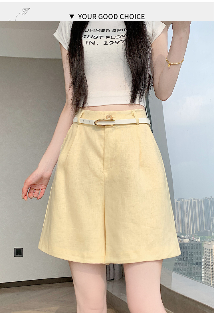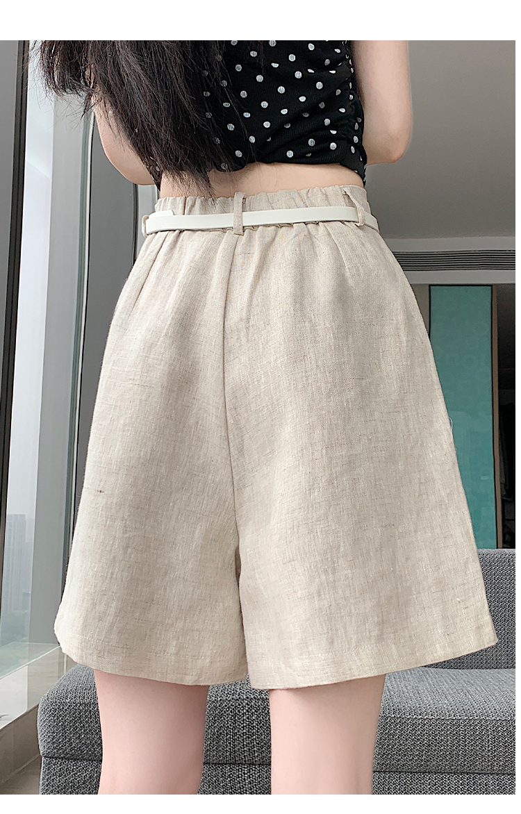 RY4281# 实拍2026新版网红辣妹高级亚麻面料百搭高腰短裤 阔腿裤配送腰带