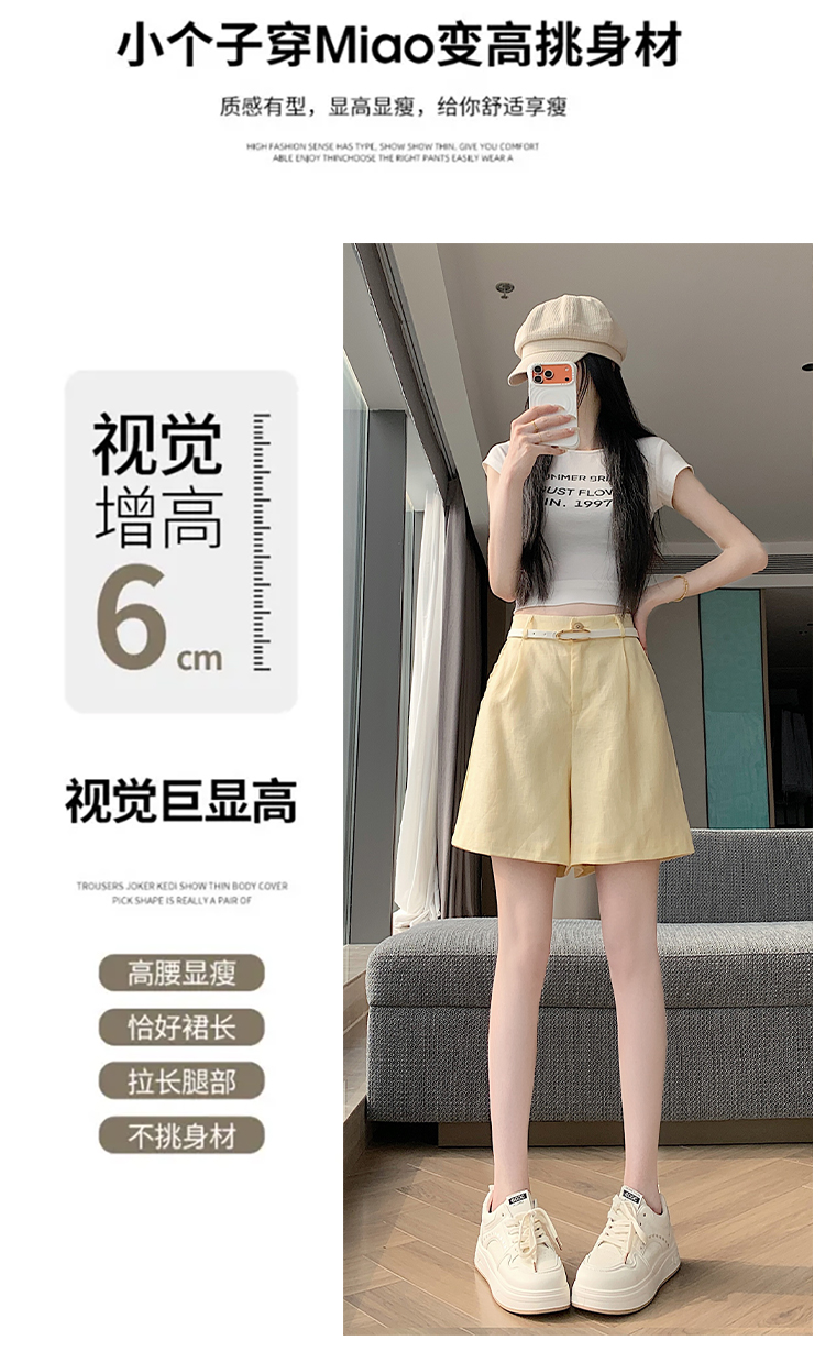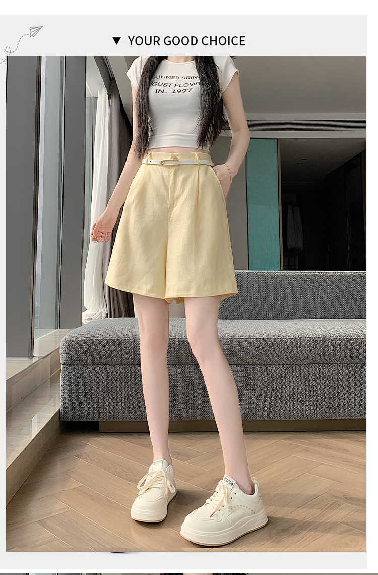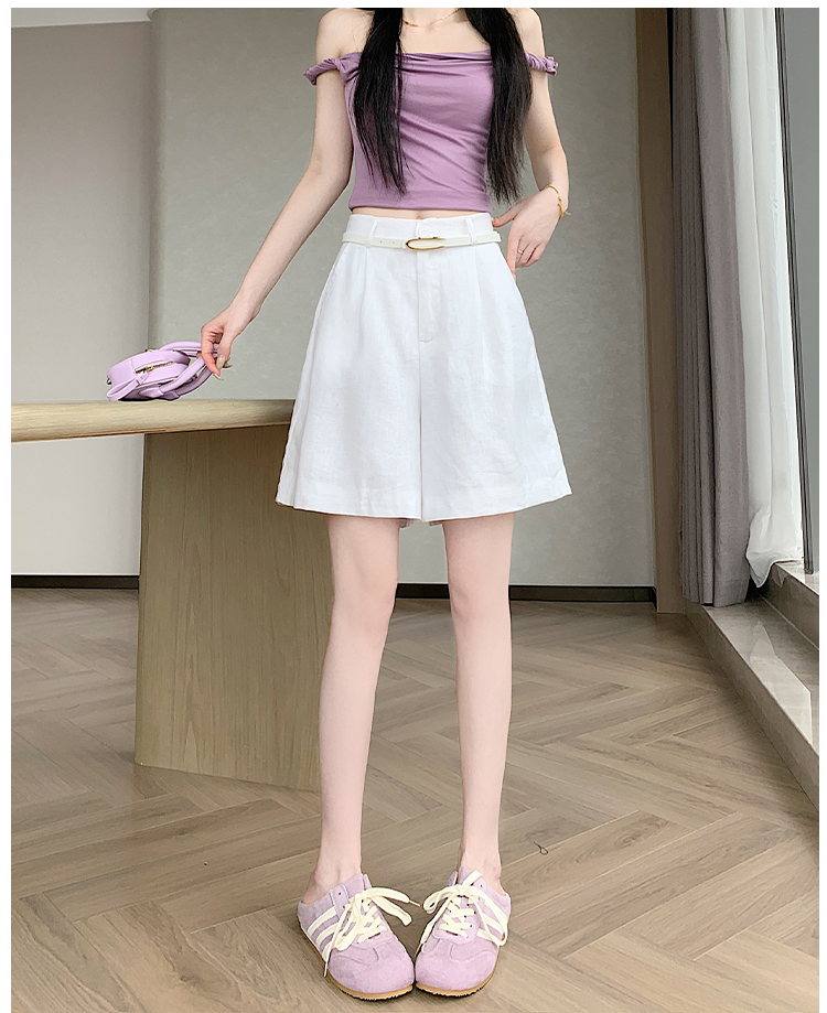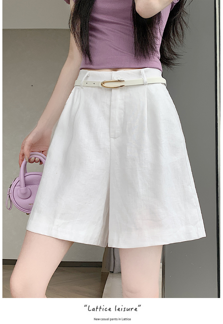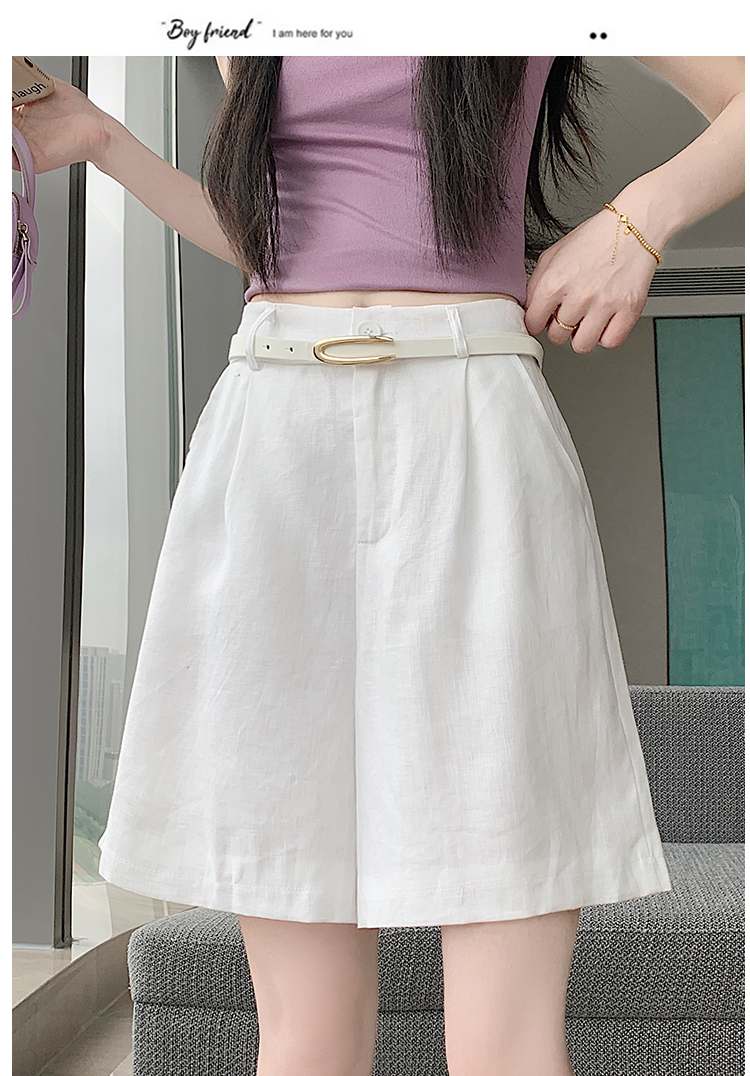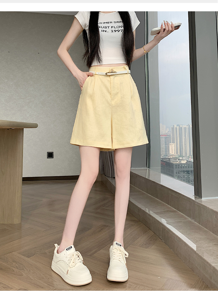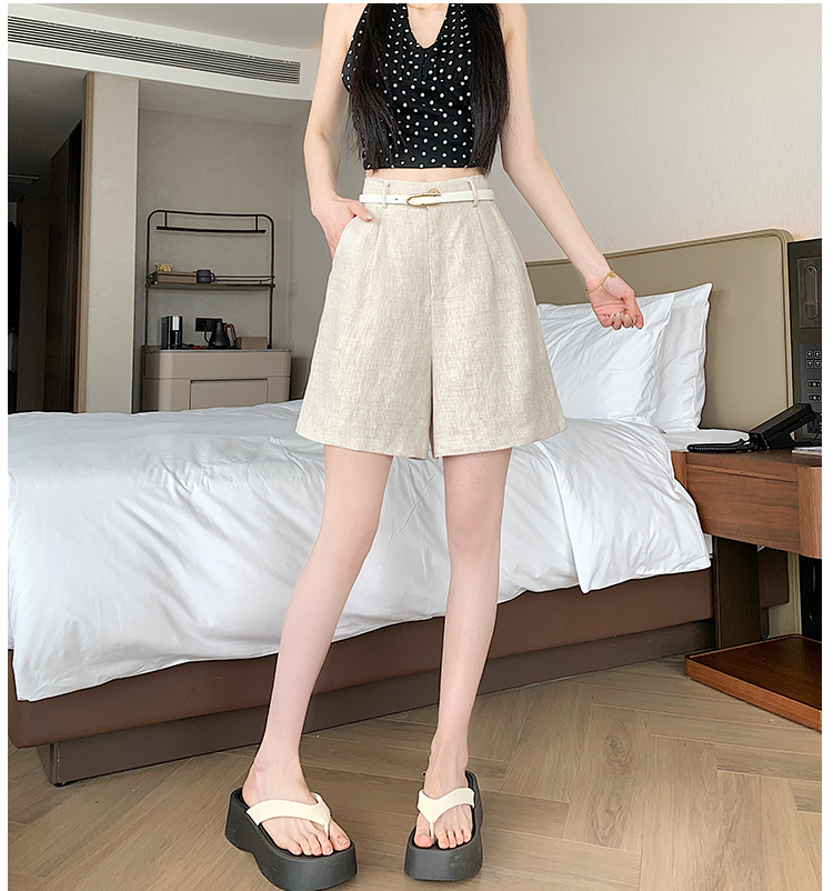 RY4281# 实拍2026新版网红辣妹高级亚麻面料百搭高腰短裤 阔腿裤配送腰带