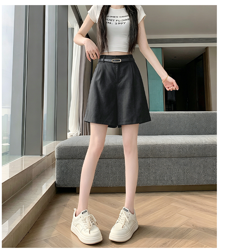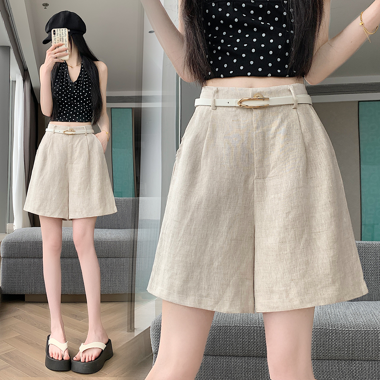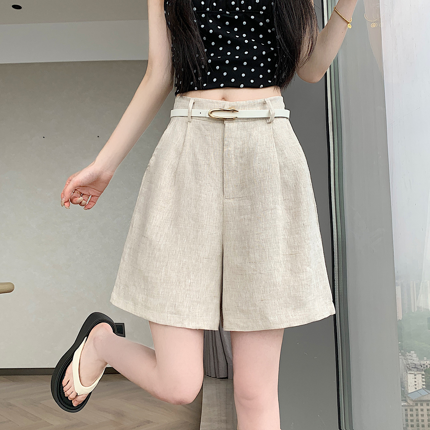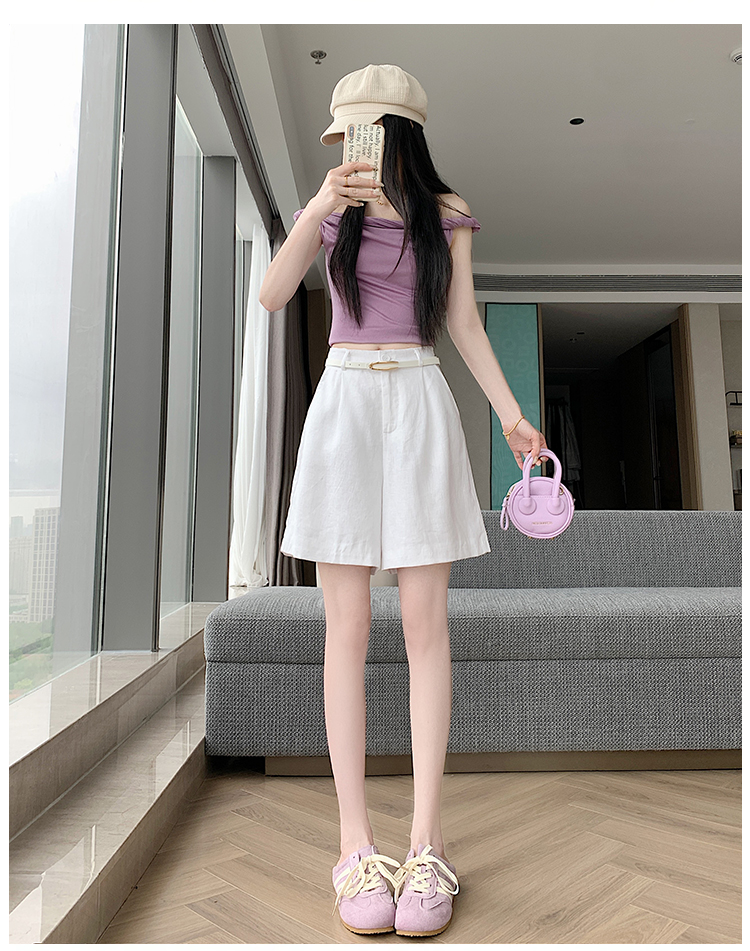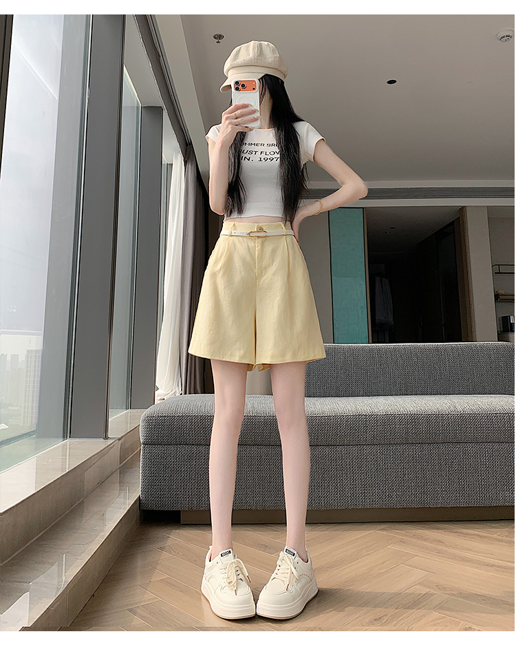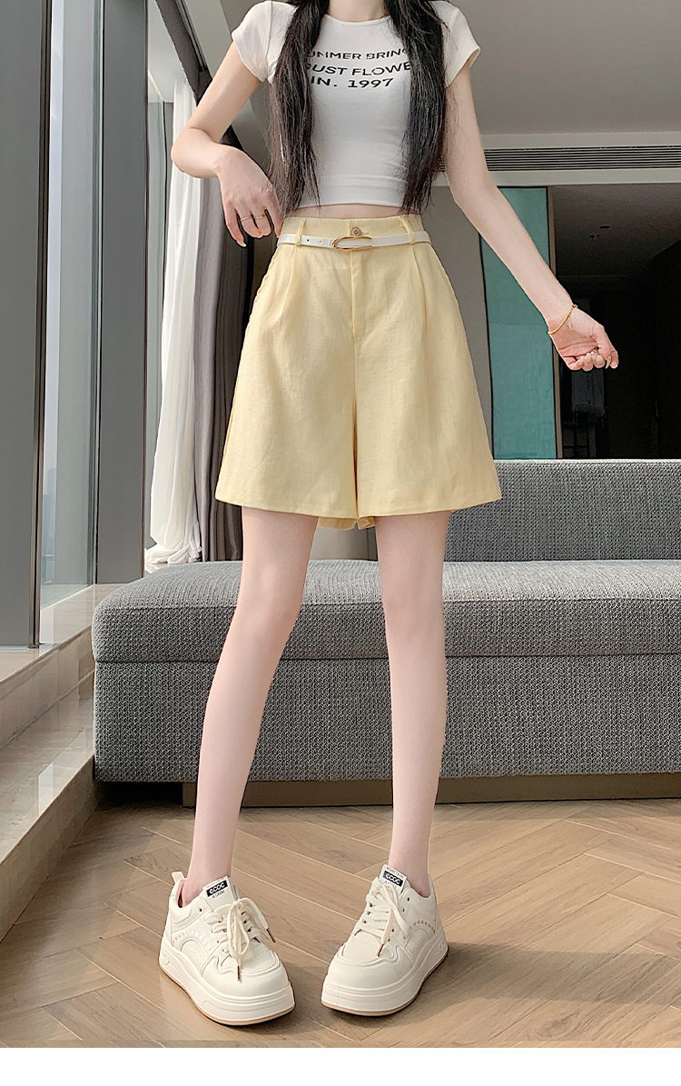 RY4281# 实拍2026新版网红辣妹高级亚麻面料百搭高腰短裤 阔腿裤配送腰带