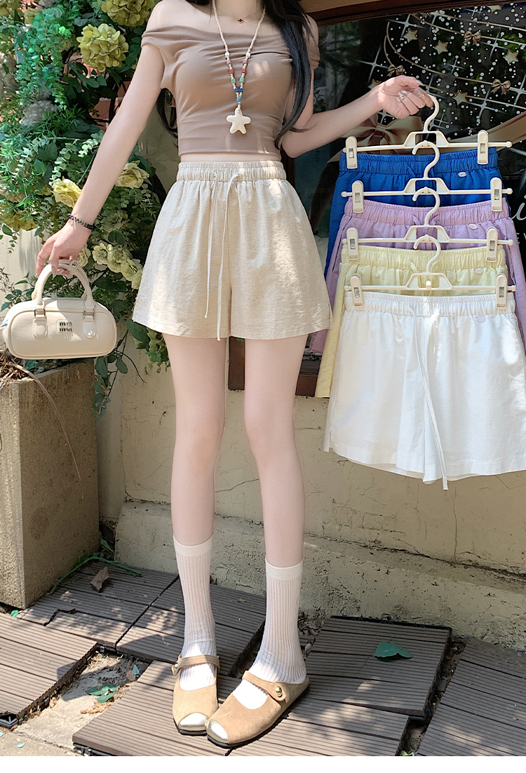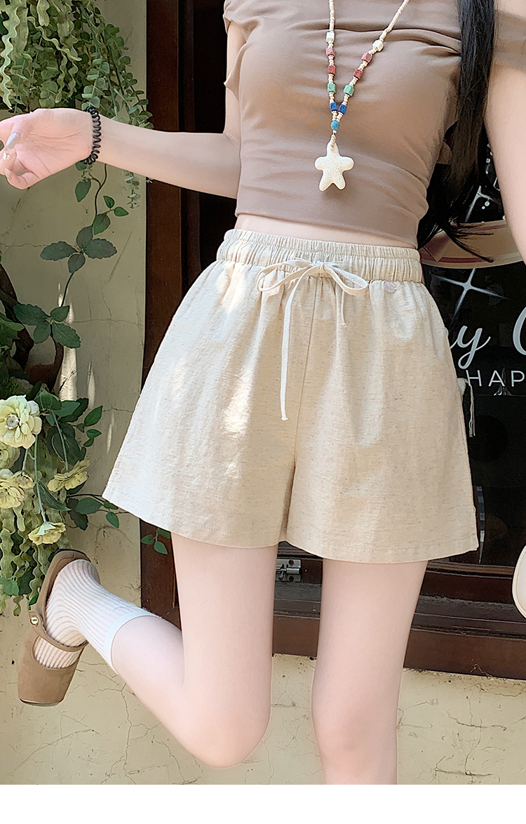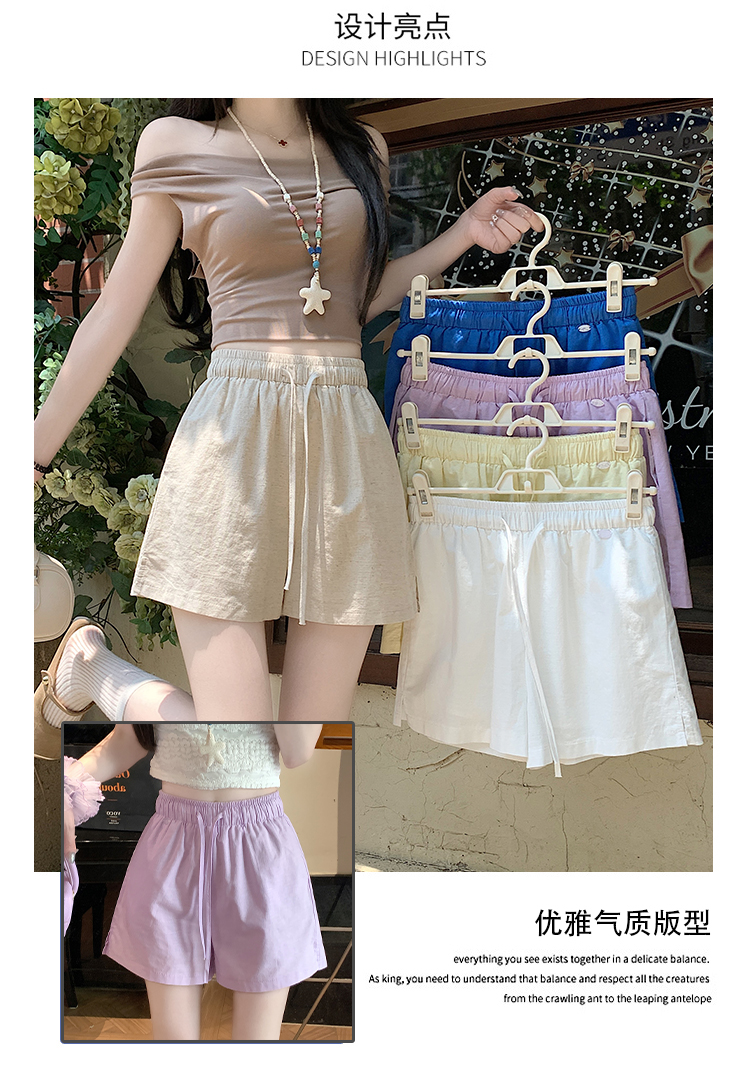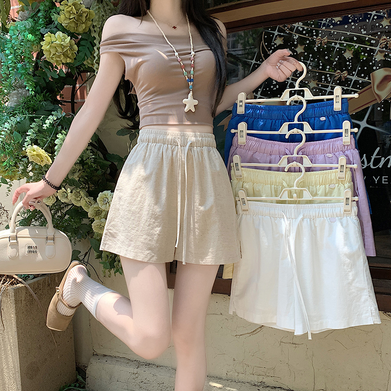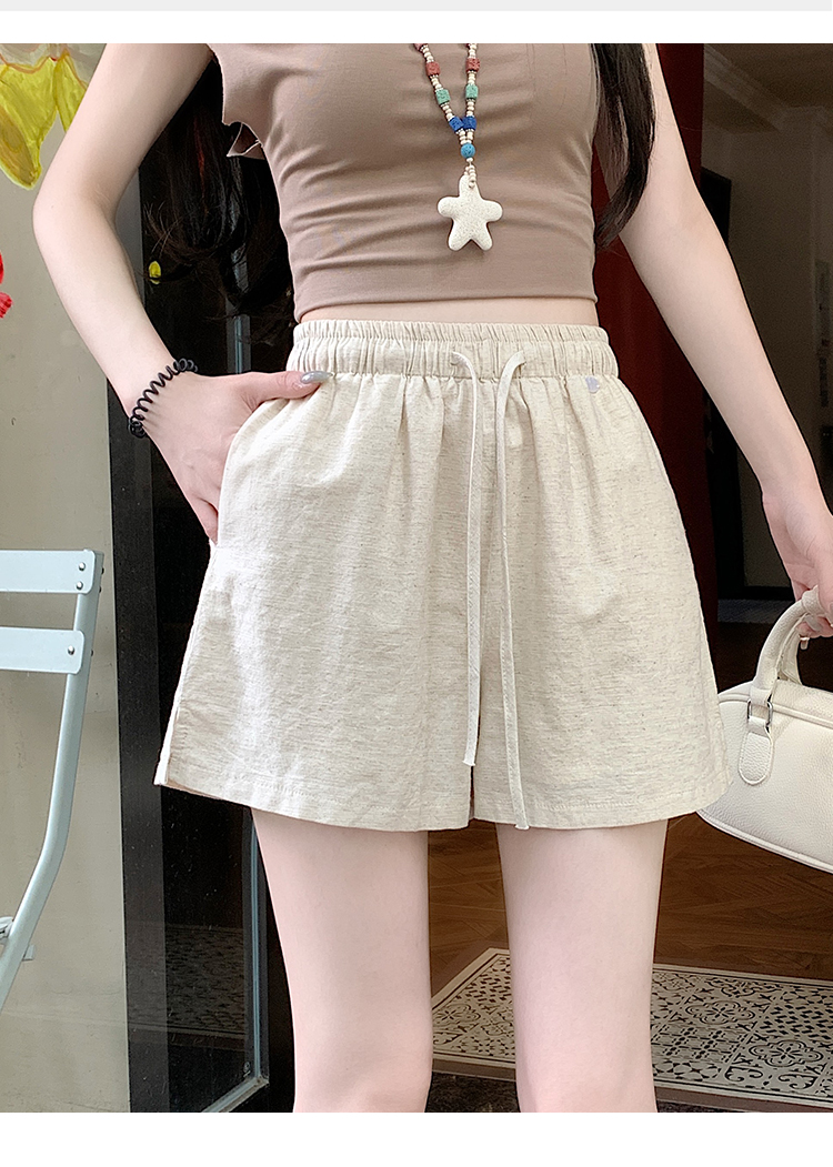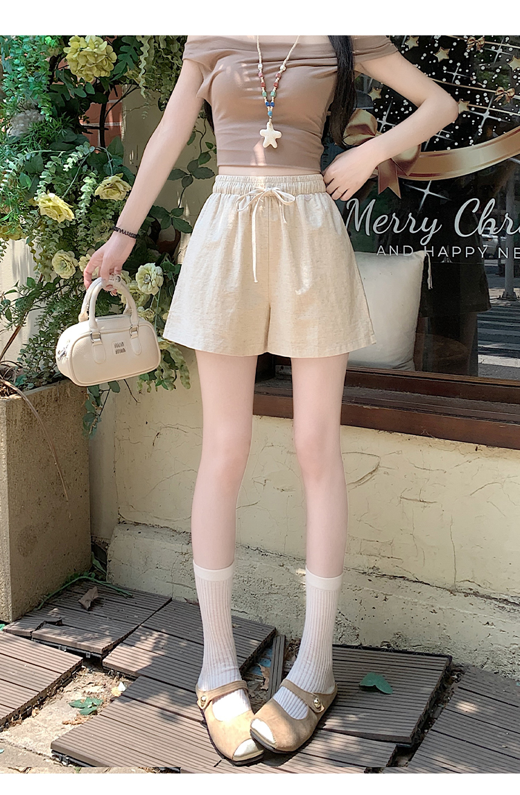 RY4283# 实拍2026新版网红辣妹高级洗水棉麻面料百搭高腰短裤 阔腿裤