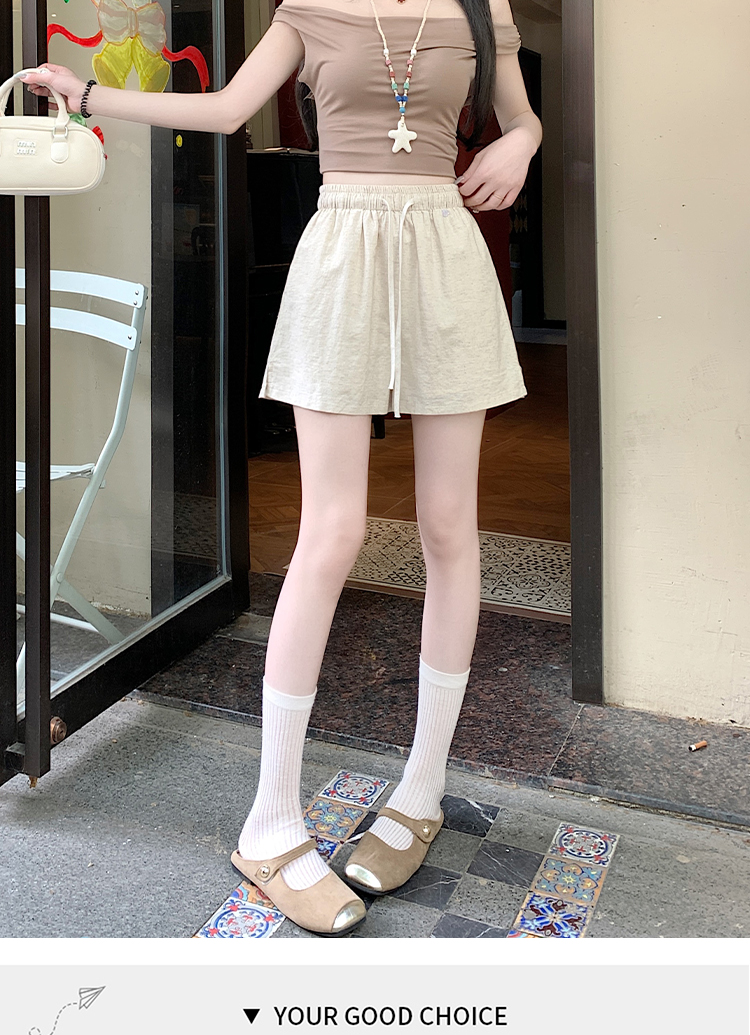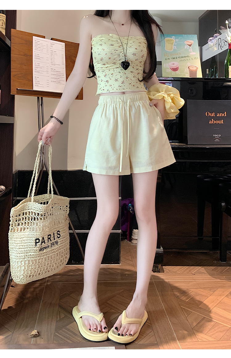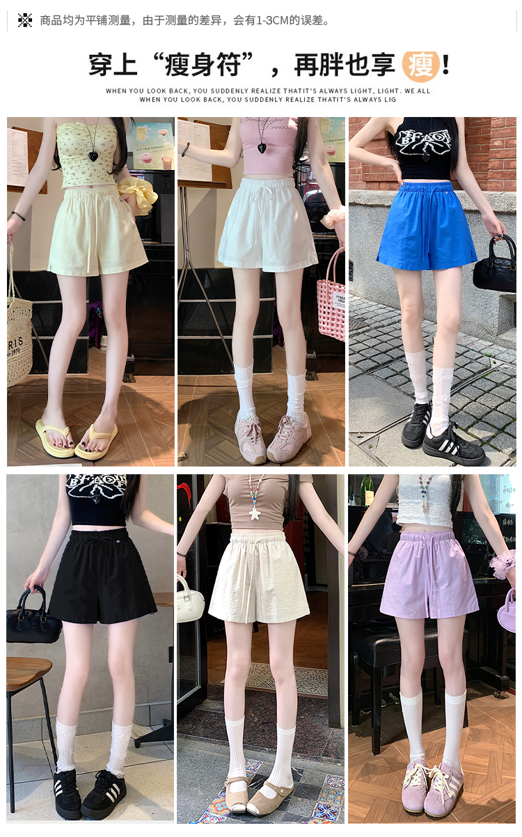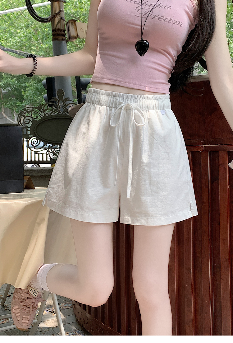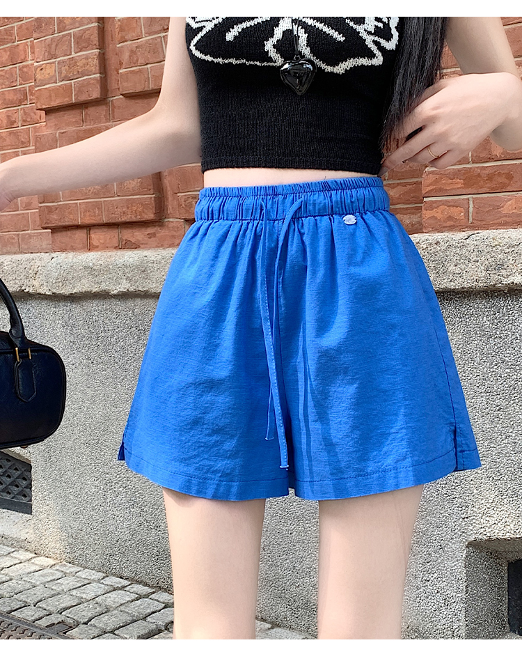 RY4283# 实拍2026新版网红辣妹高级洗水棉麻面料百搭高腰短裤 阔腿裤