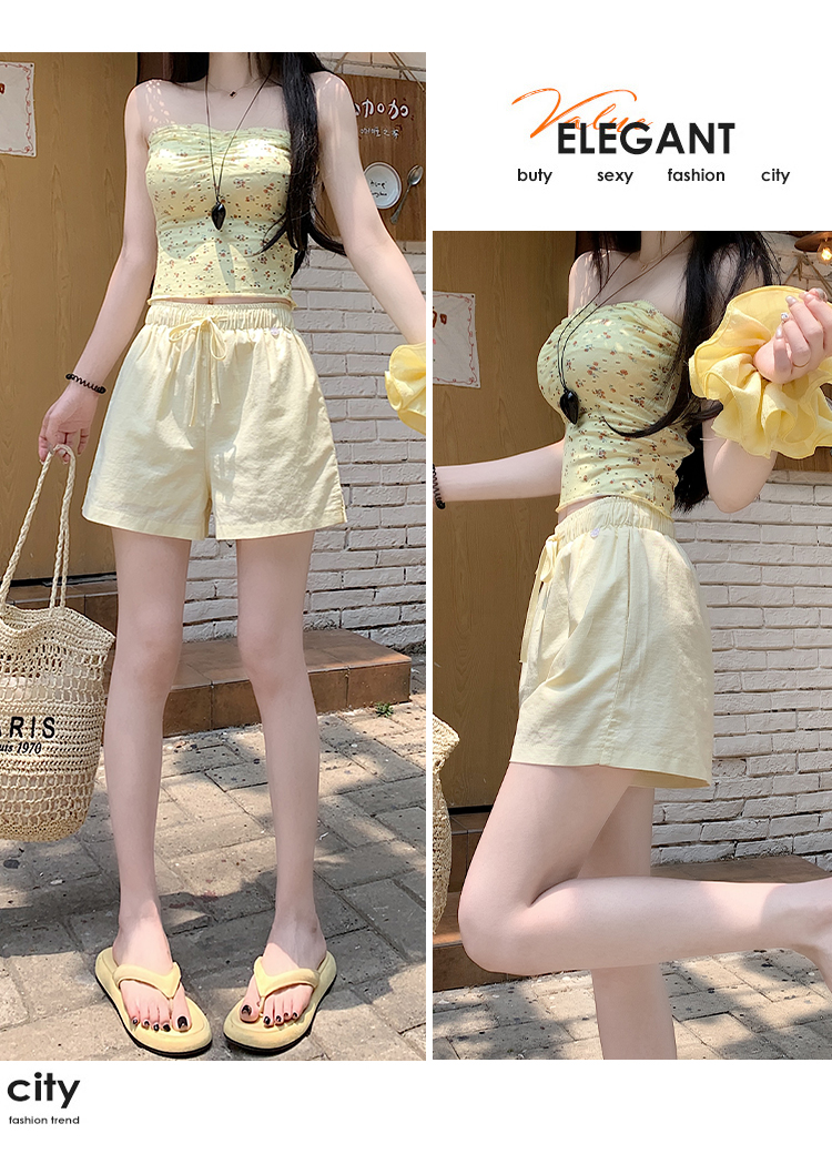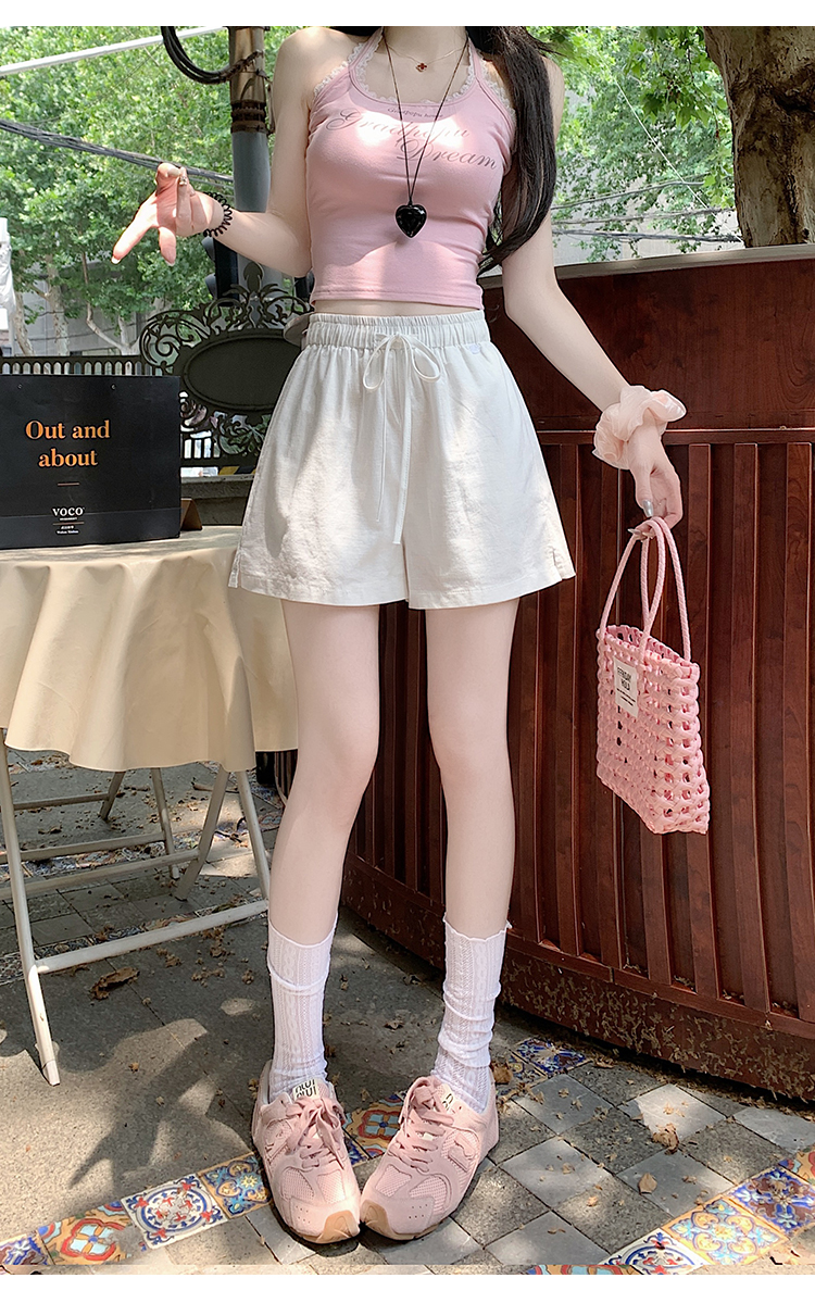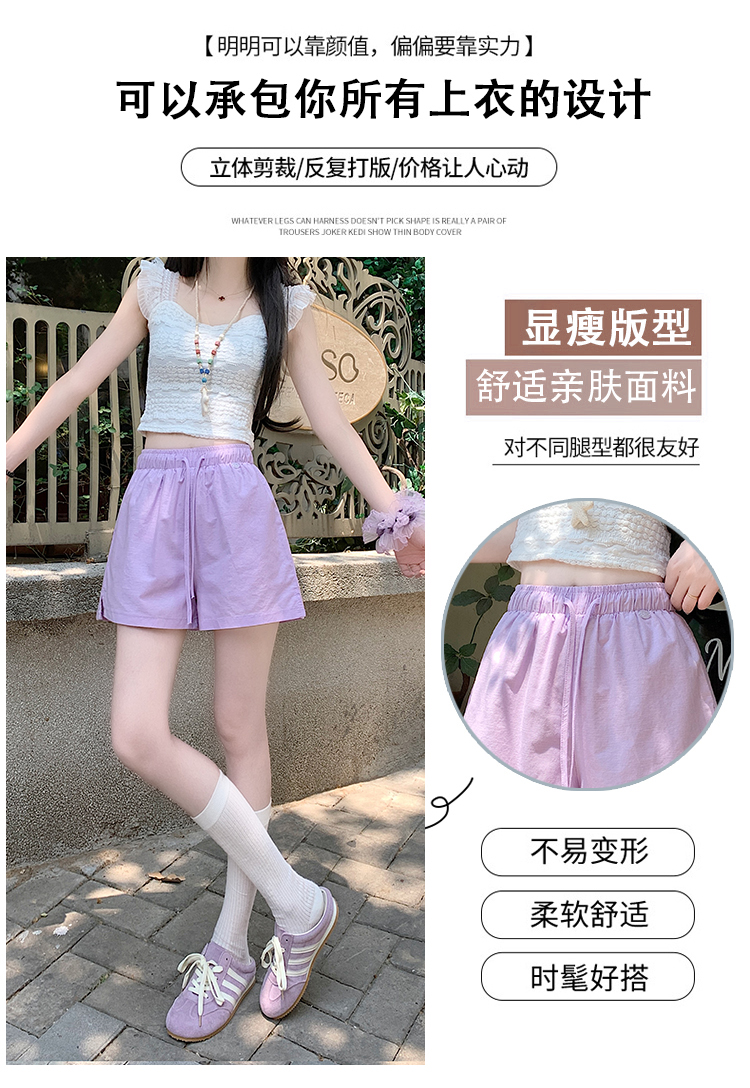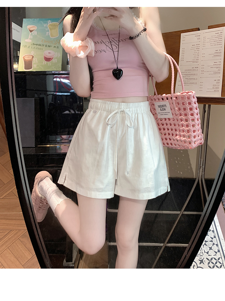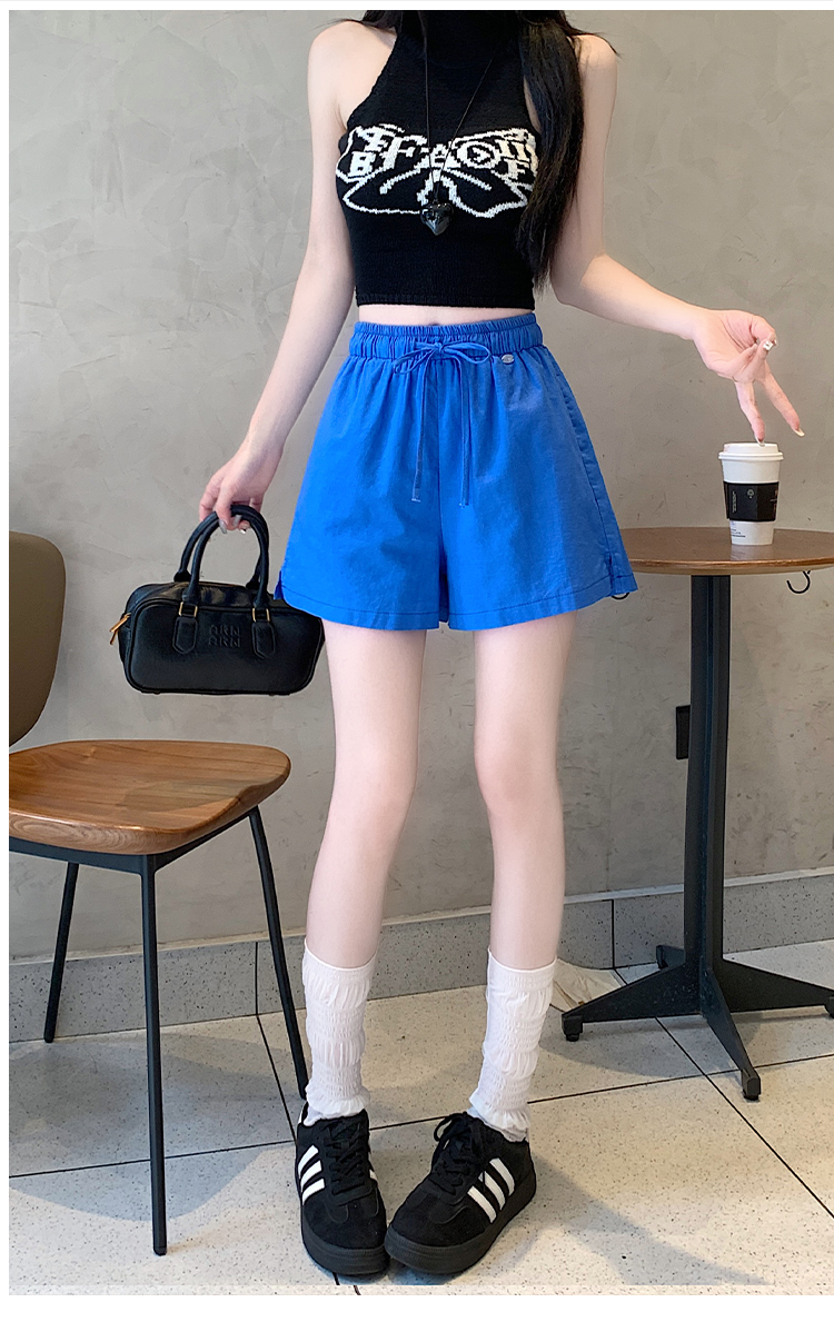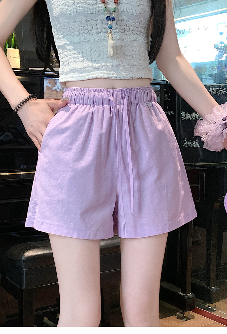 RY4283# 实拍2026新版网红辣妹高级洗水棉麻面料百搭高腰短裤 阔腿裤