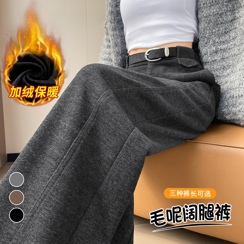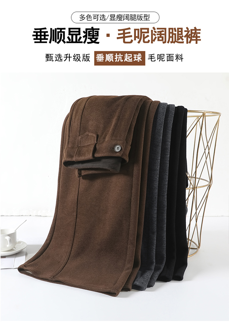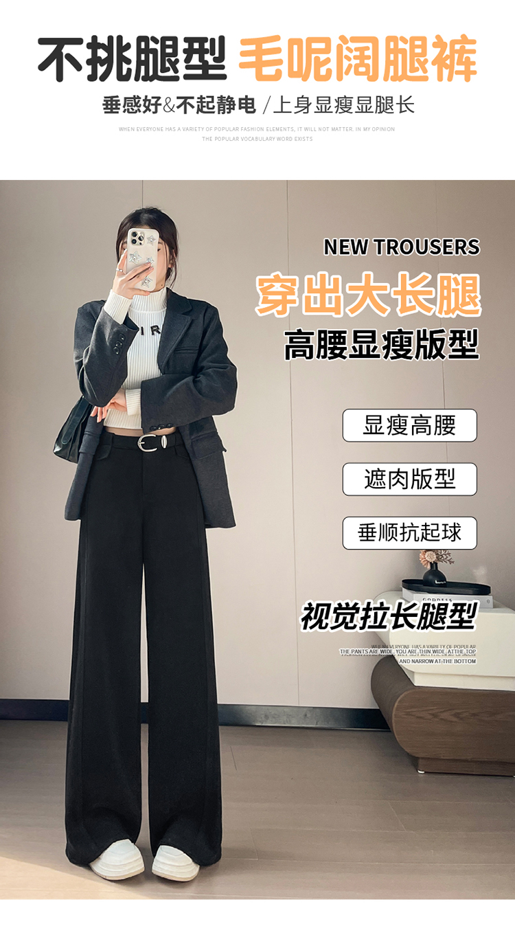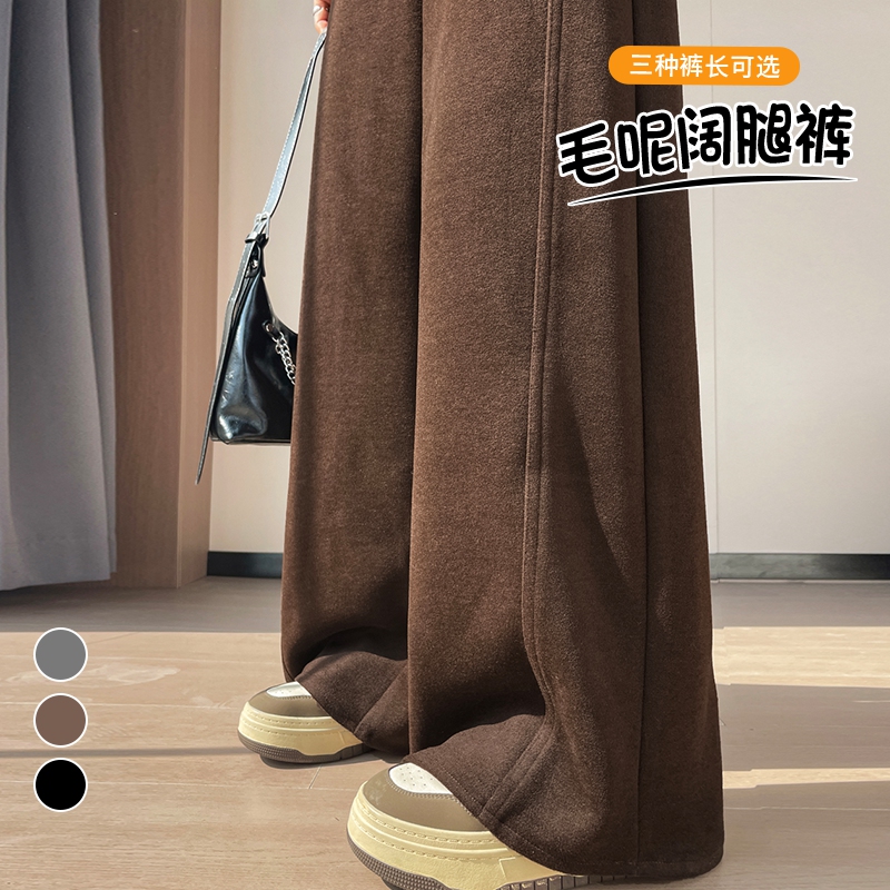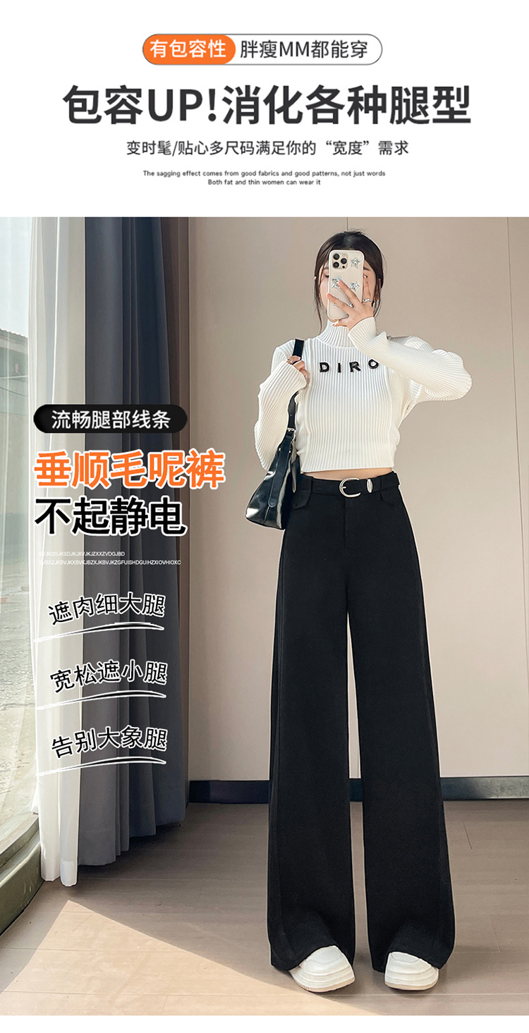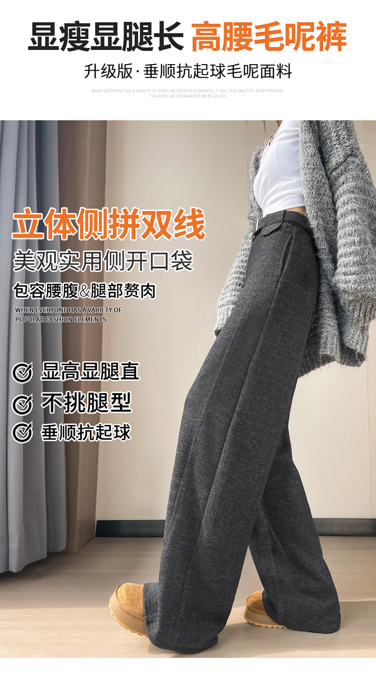 MY14552# 新款加绒毛呢阔腿裤直筒拖地裤高腰窄版休闲裤女女裝貨源服裝批發