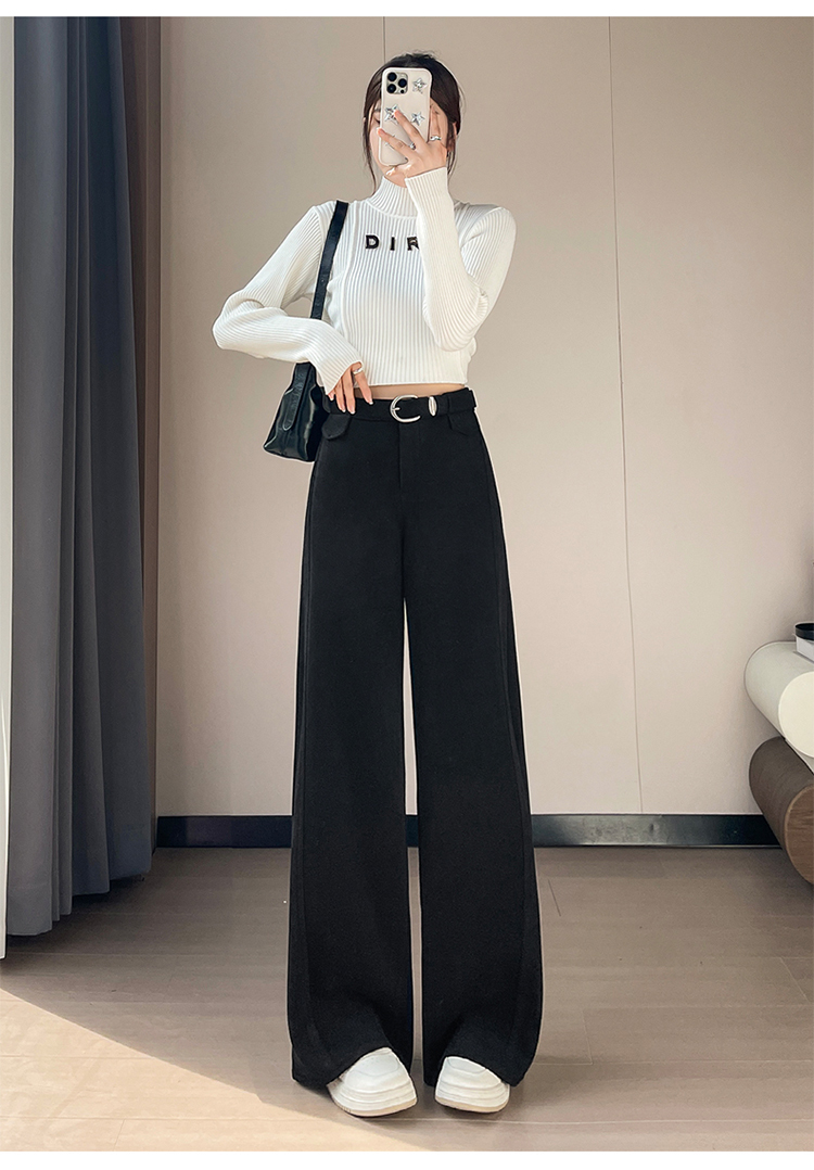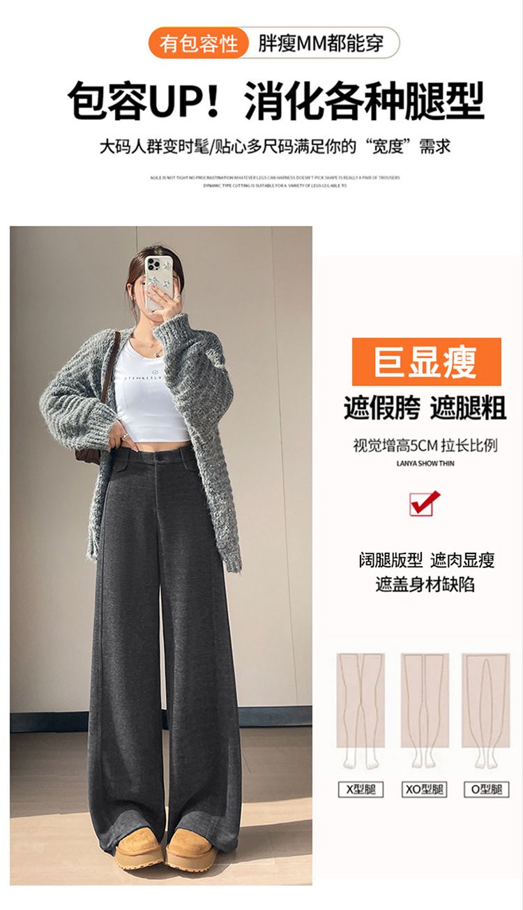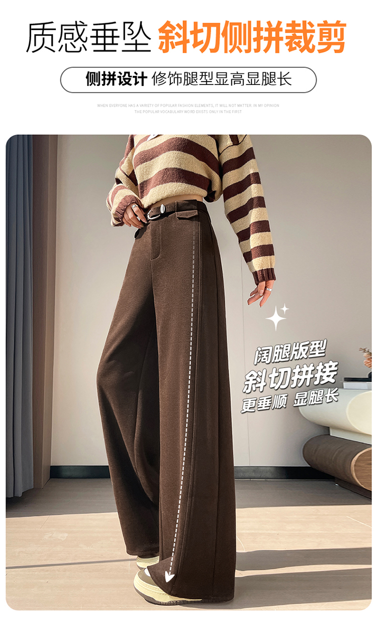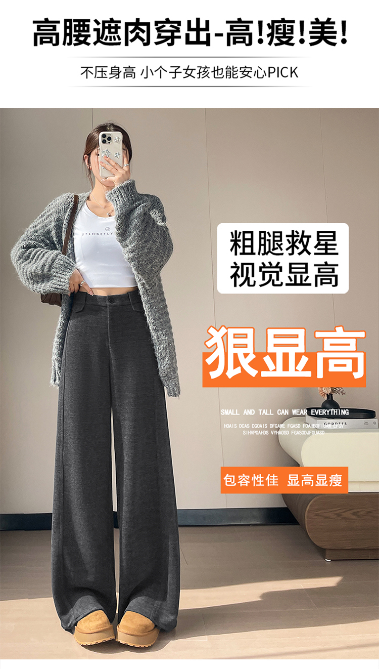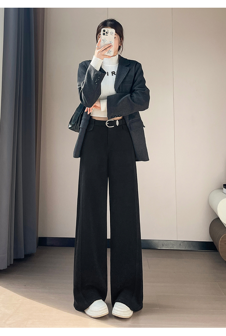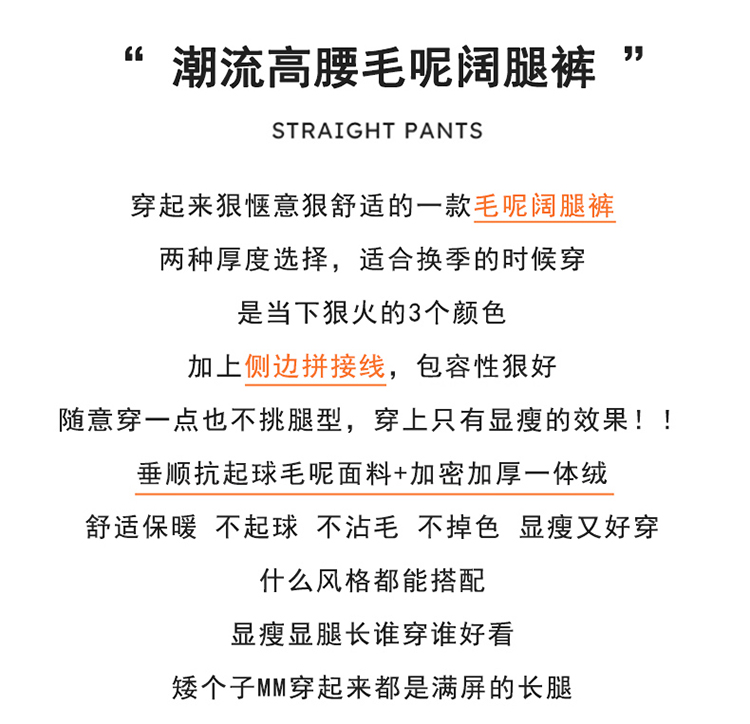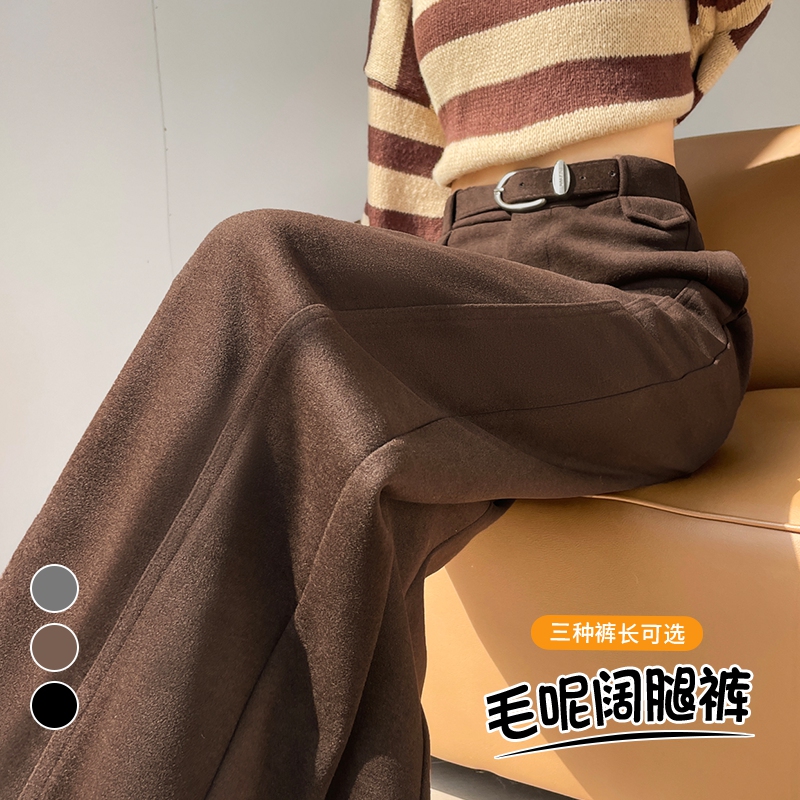 MY14552# 新款加绒毛呢阔腿裤直筒拖地裤高腰窄版休闲裤女女裝貨源服裝批發