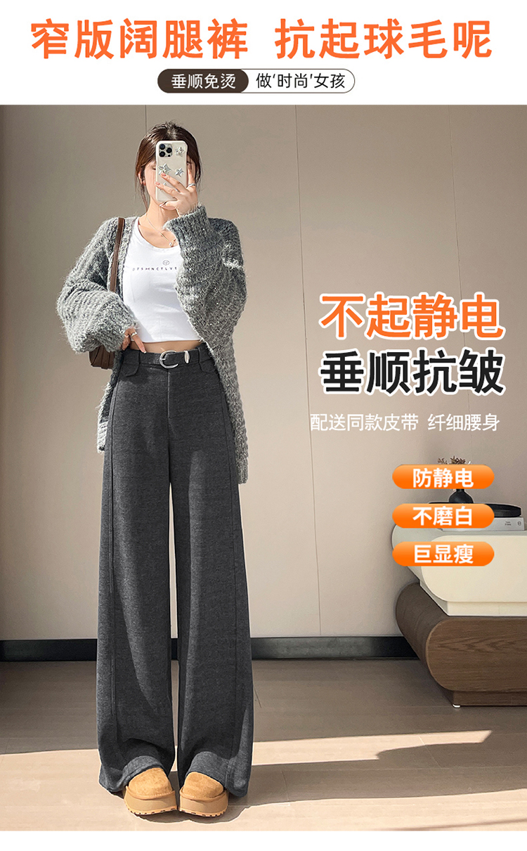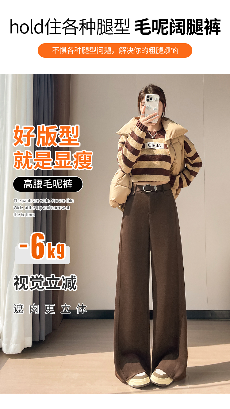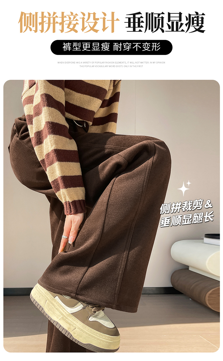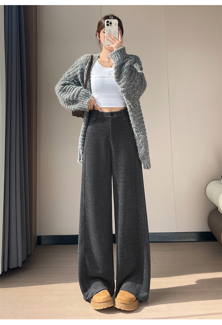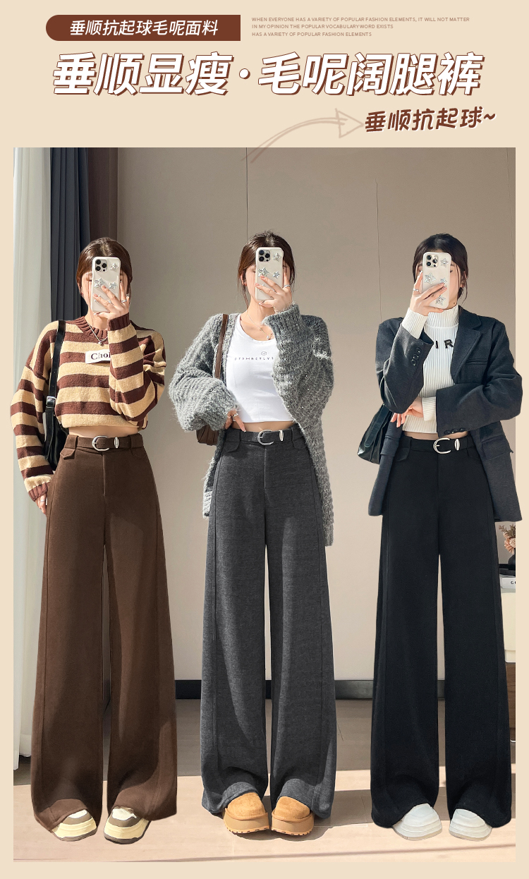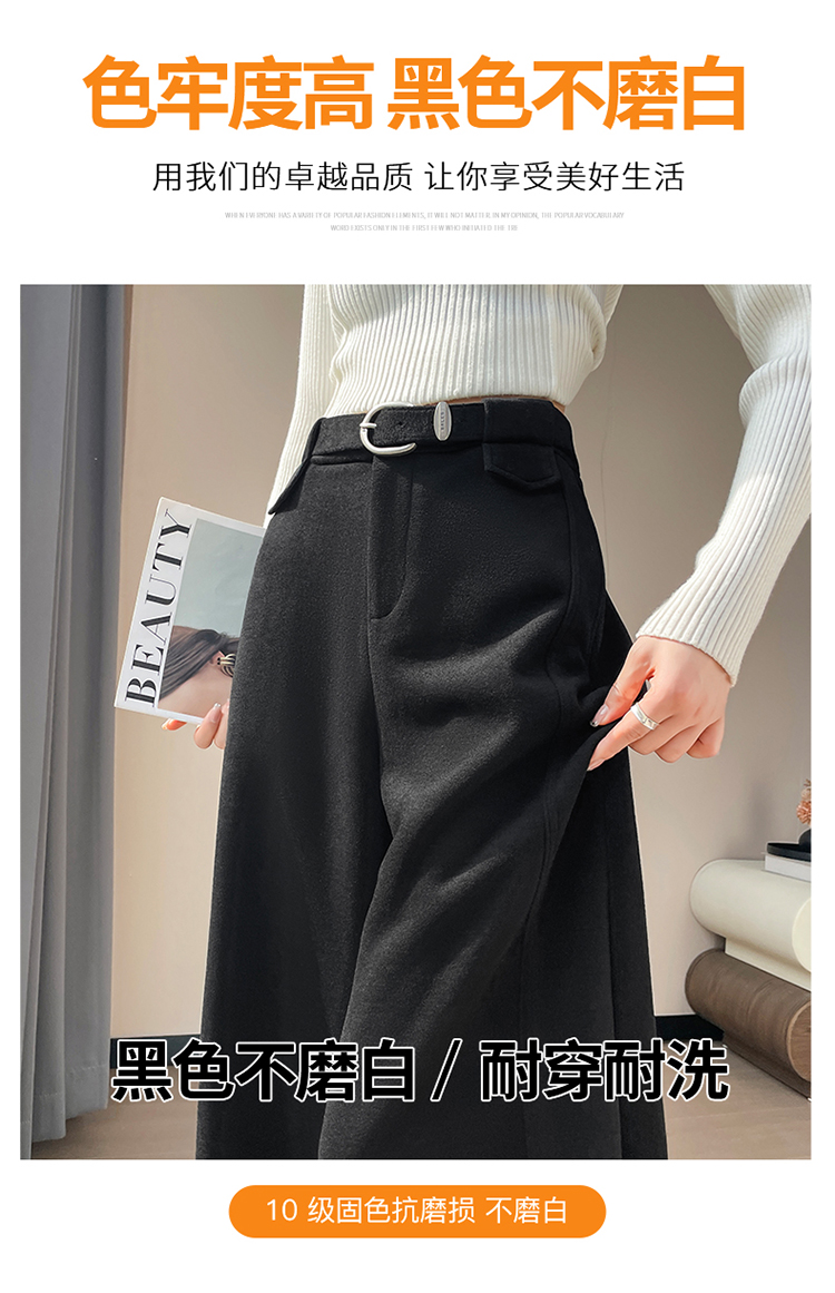 MY14552# 新款加绒毛呢阔腿裤直筒拖地裤高腰窄版休闲裤女女裝貨源服裝批發