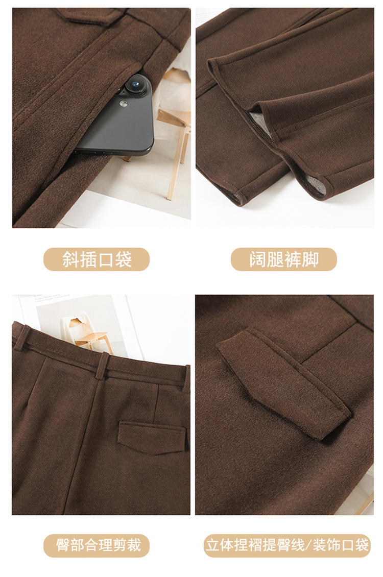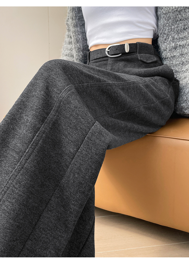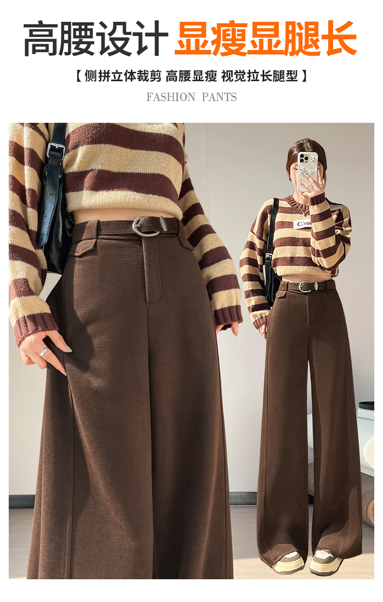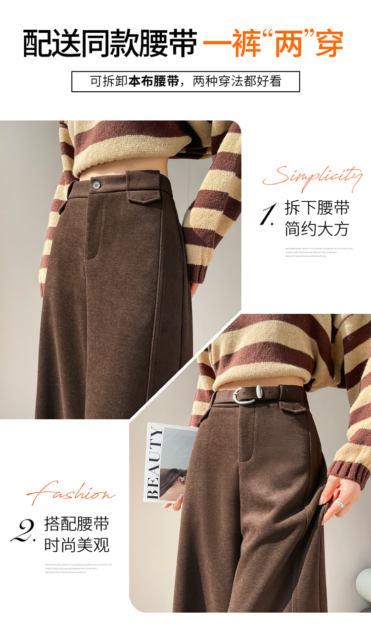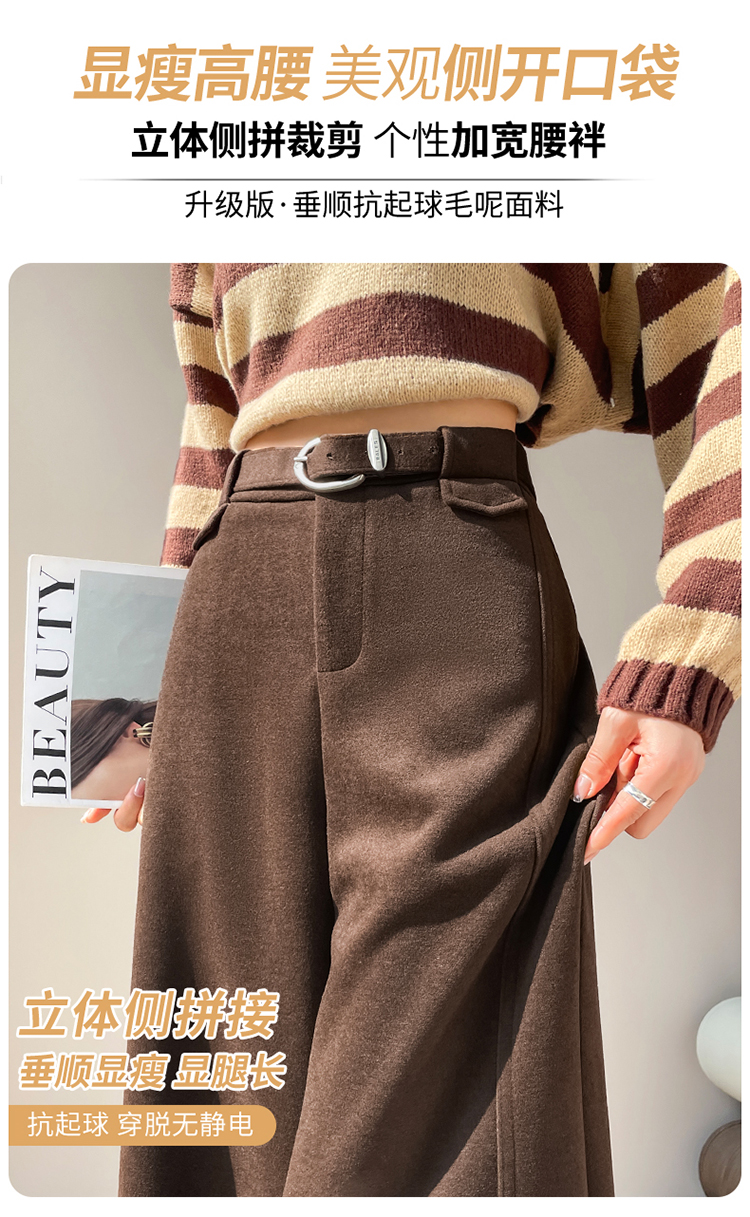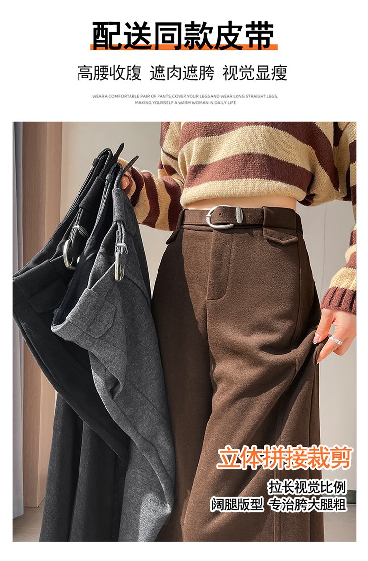 MY14552# 新款加绒毛呢阔腿裤直筒拖地裤高腰窄版休闲裤女女裝貨源服裝批發