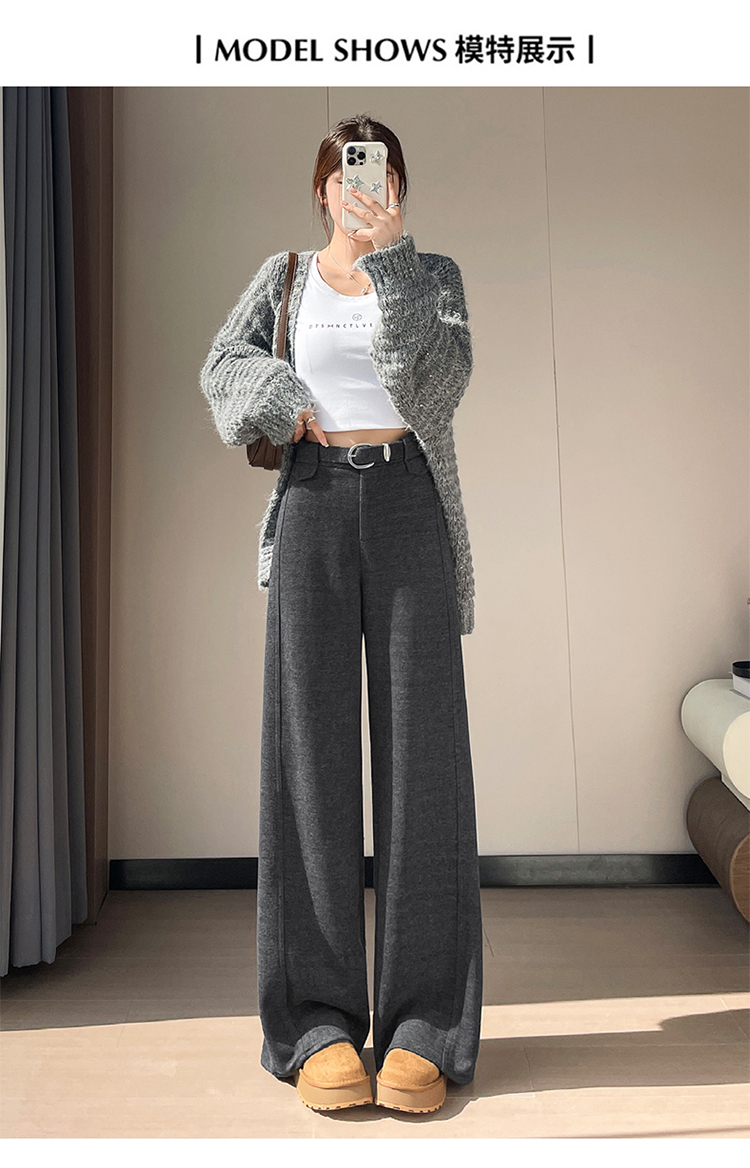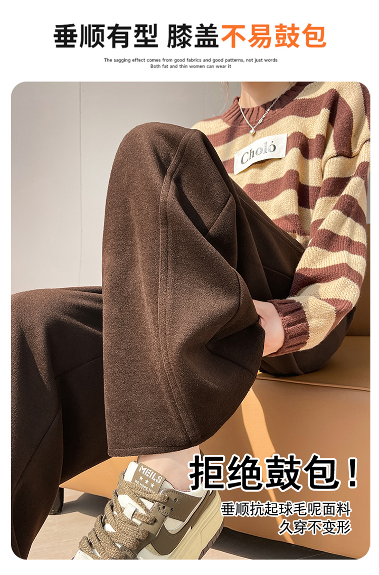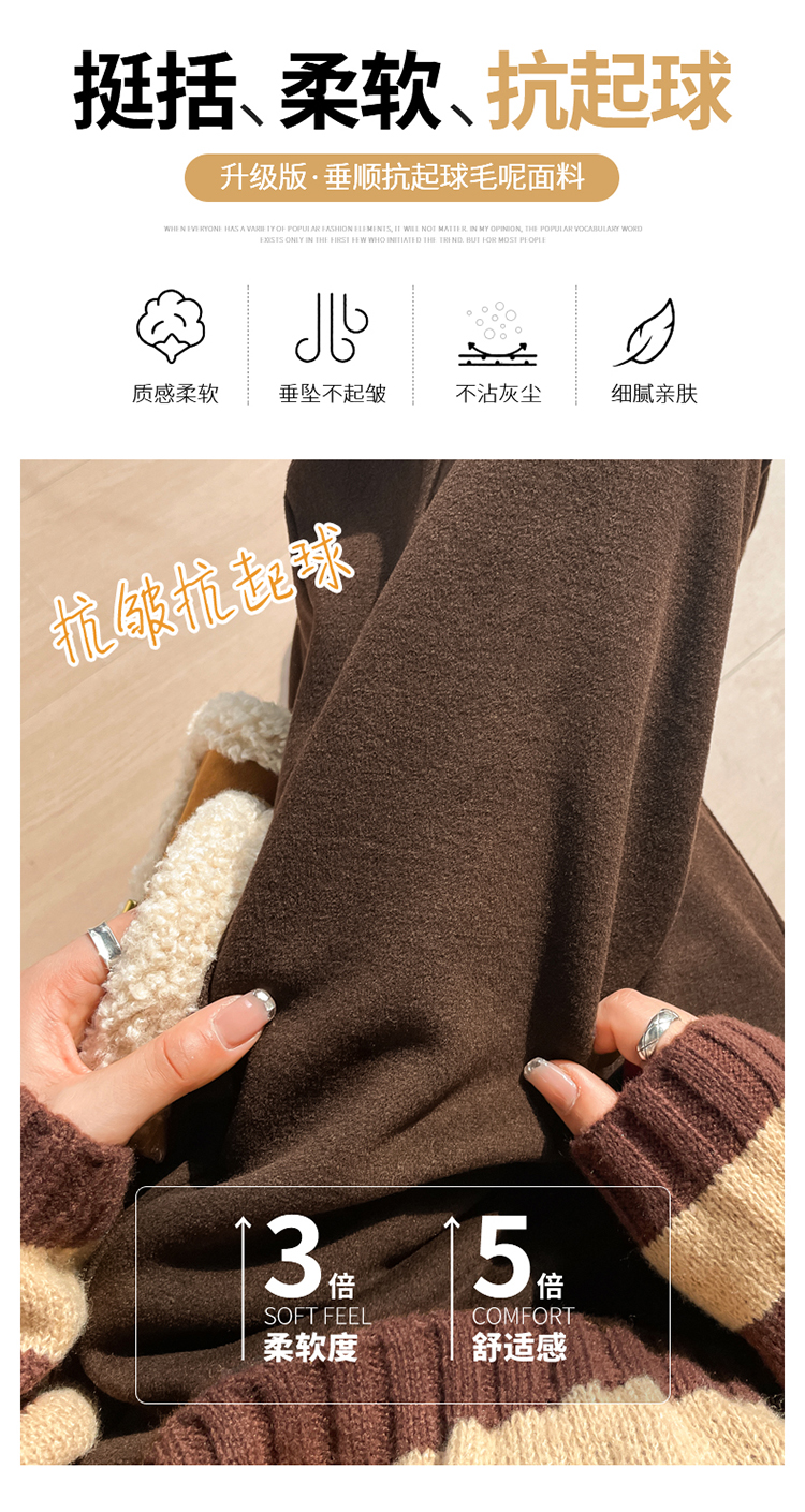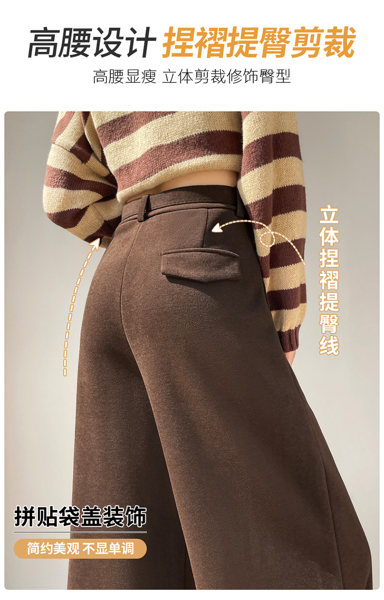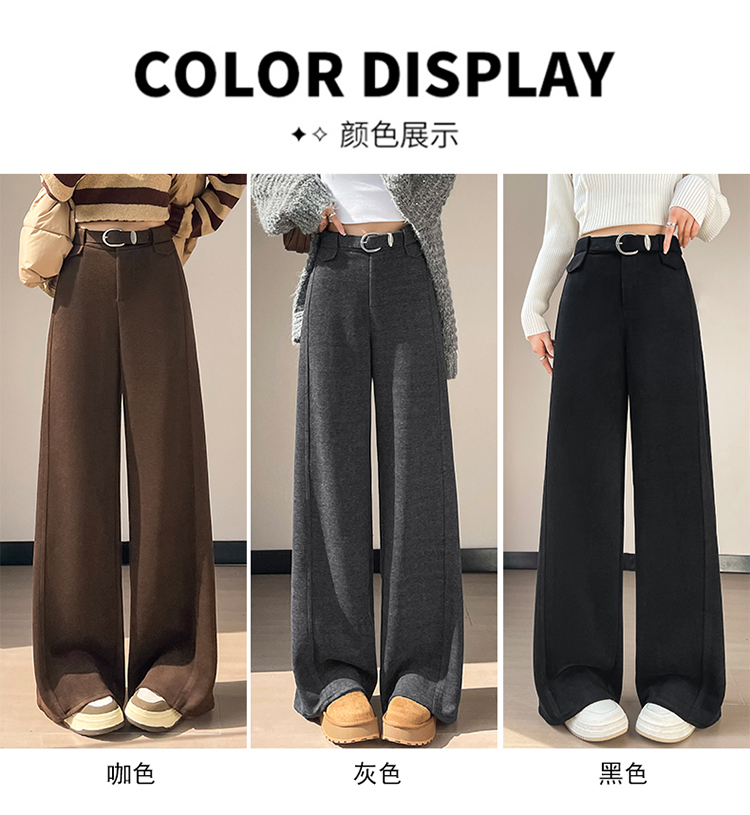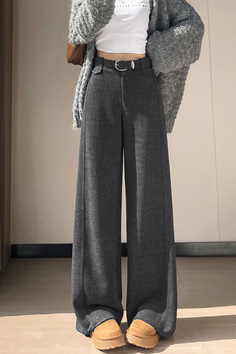MY14552# 新款加绒毛呢阔腿裤直筒拖地裤高腰窄版休闲裤女女裝貨源服裝批發