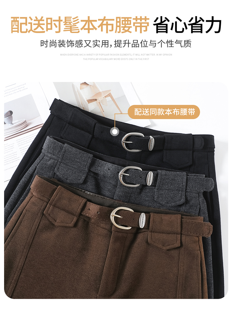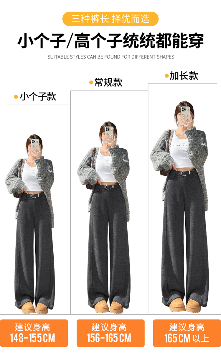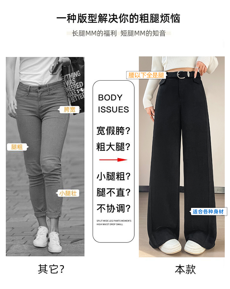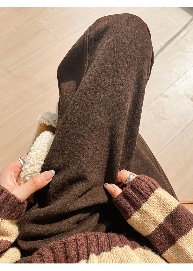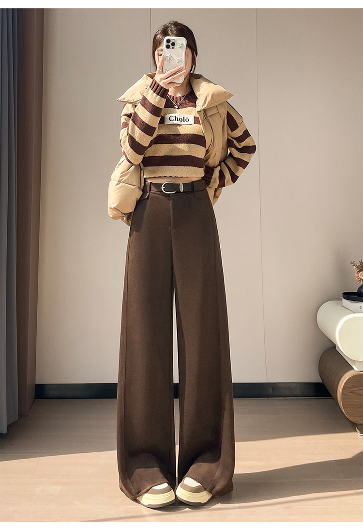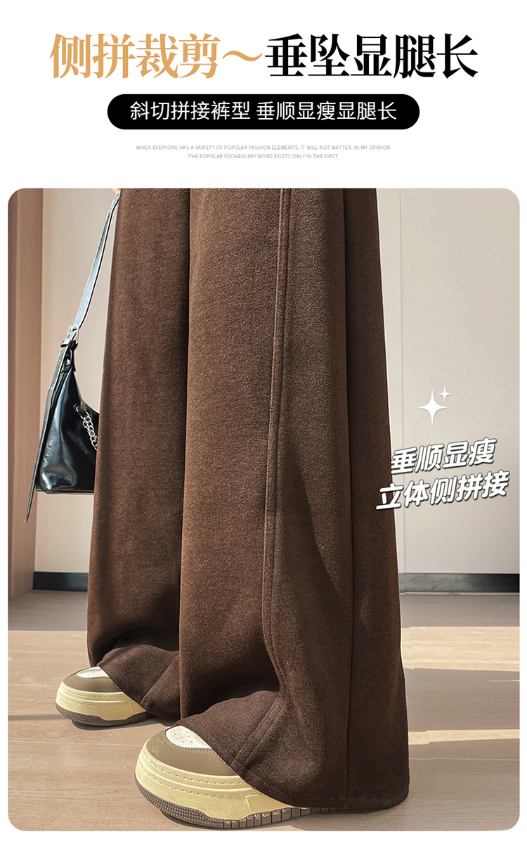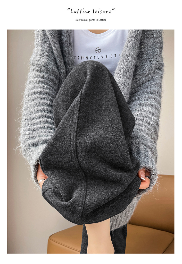 MY14552# 新款加绒毛呢阔腿裤直筒拖地裤高腰窄版休闲裤女女裝貨源服裝批發