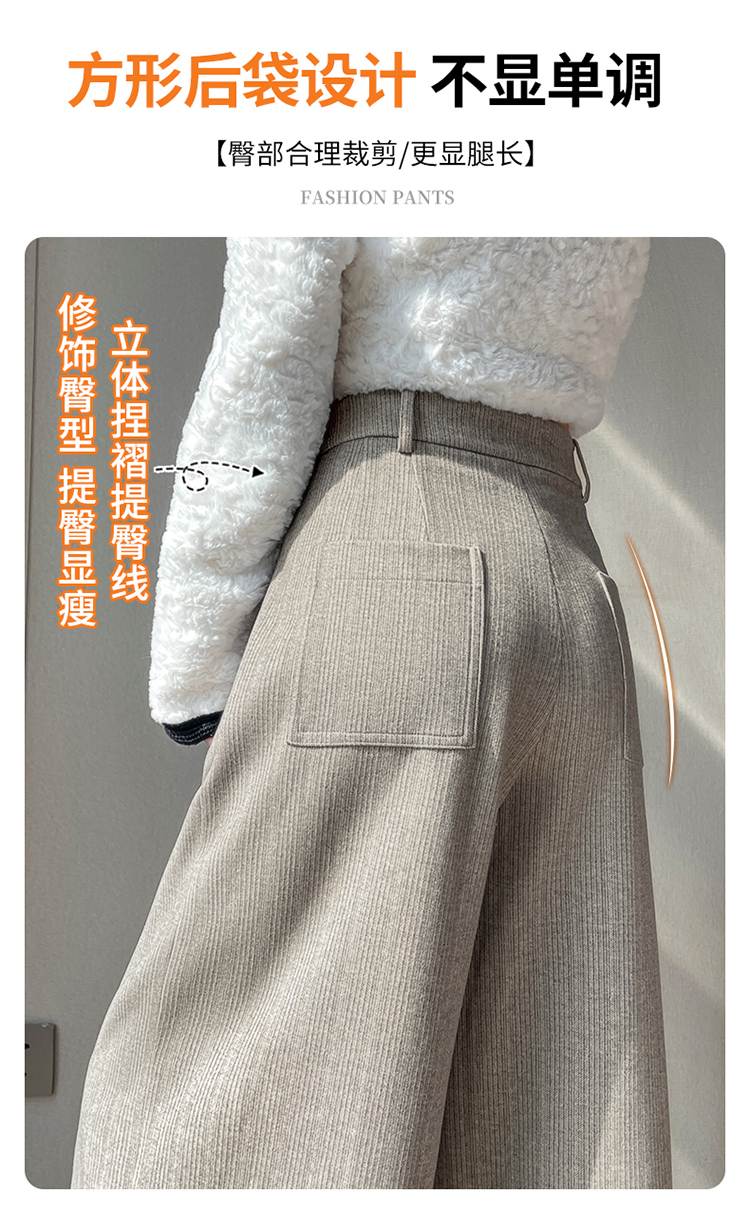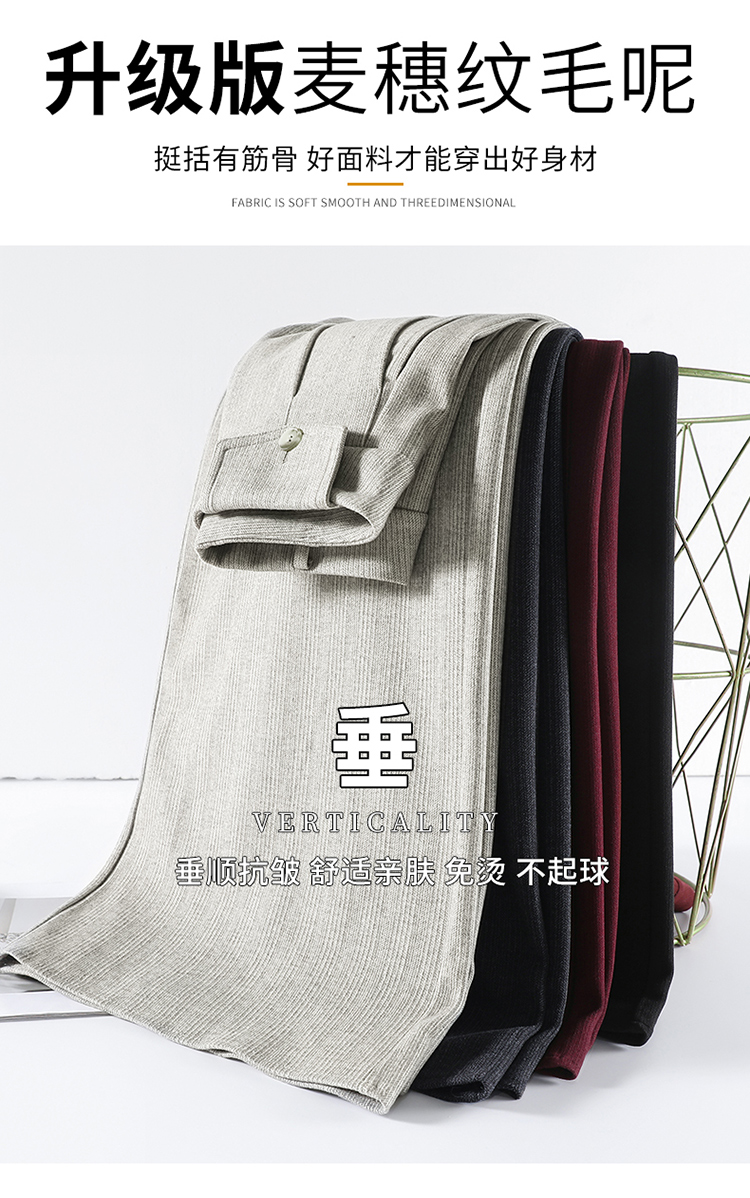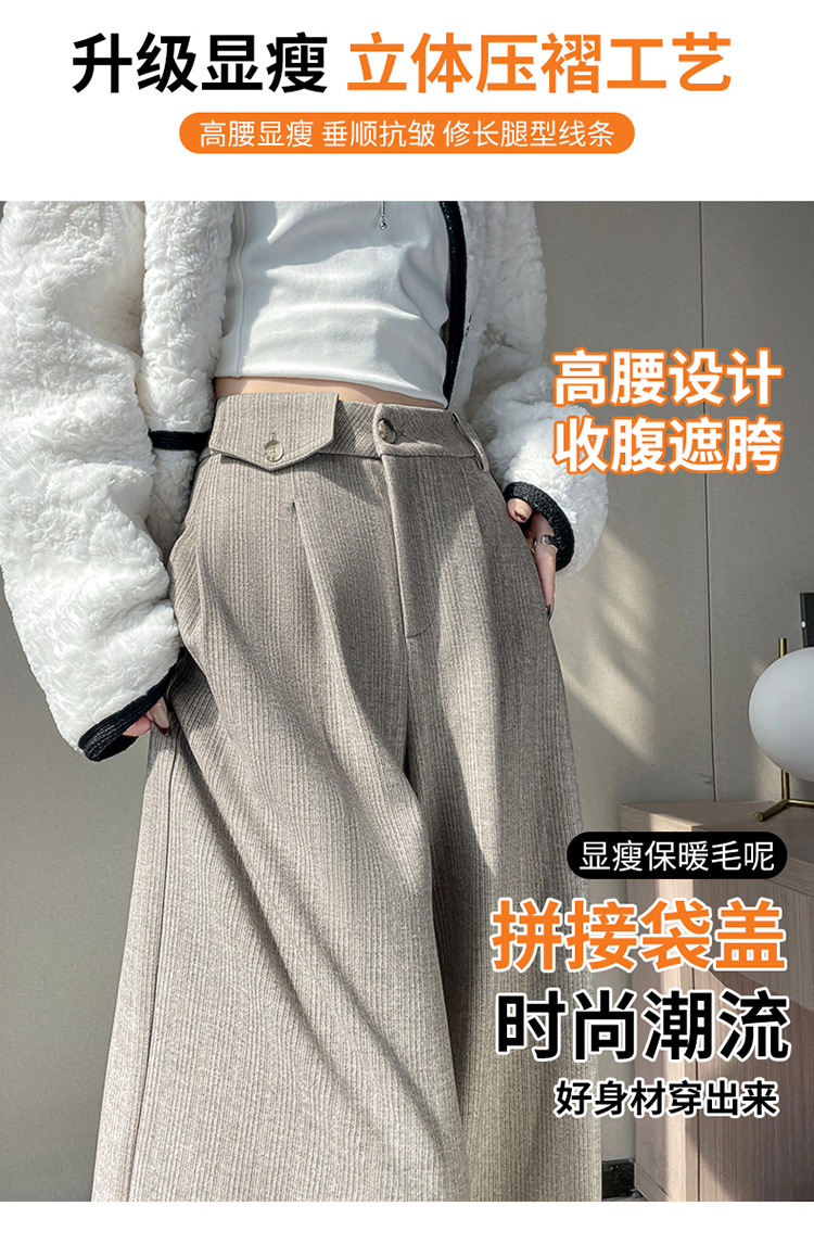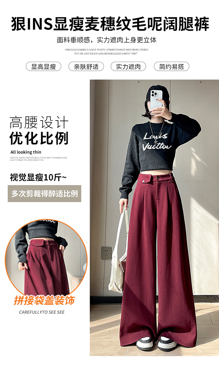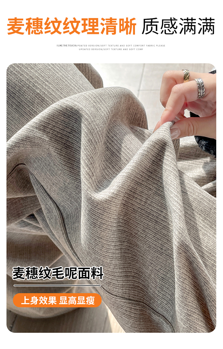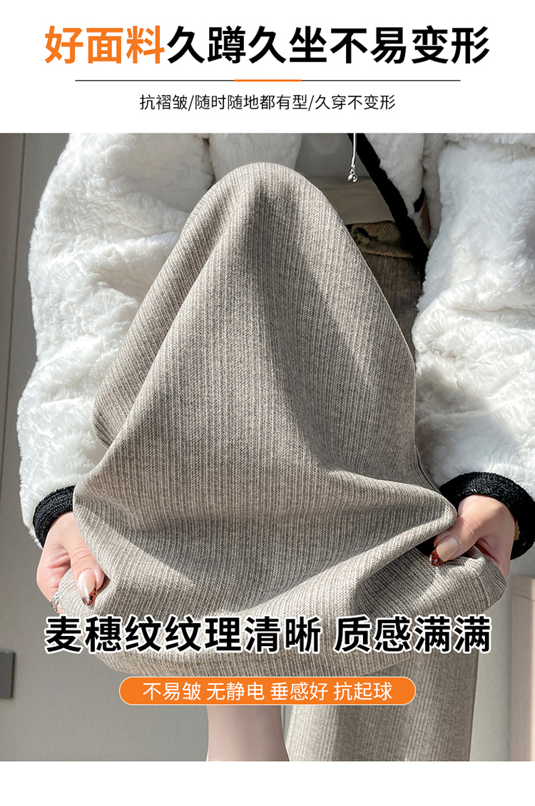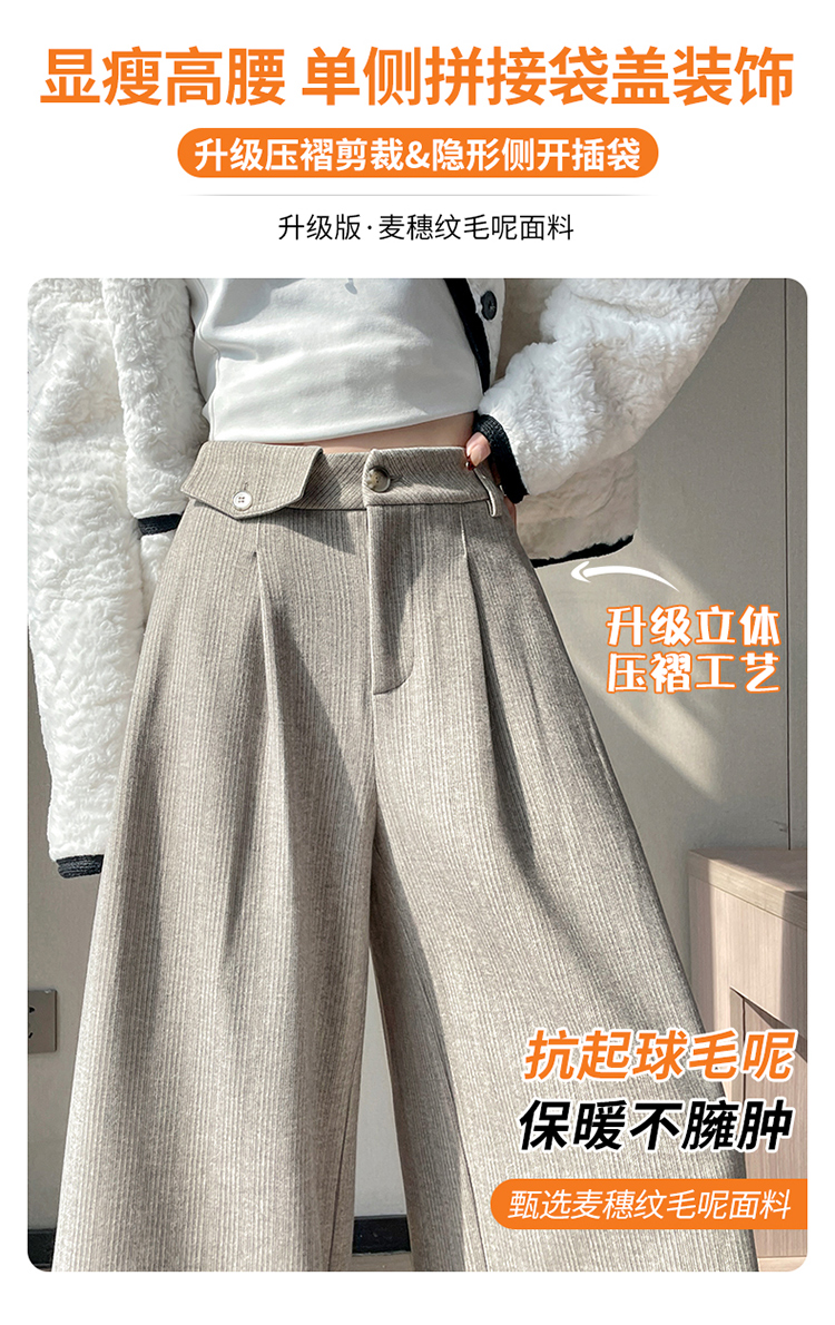 MY14554# 新款加绒麦穗纹毛呢裤直筒阔腿裤高腰拖地休闲裤女女裝貨源服裝批發