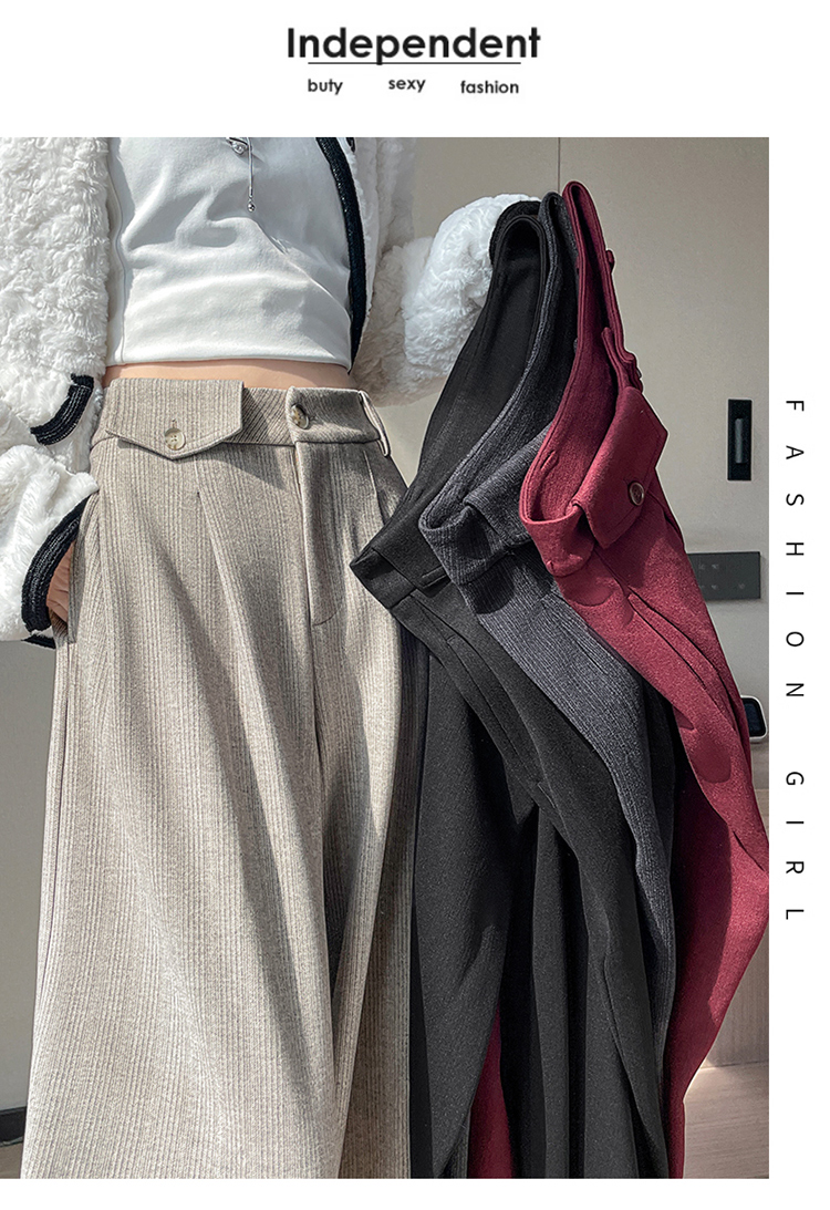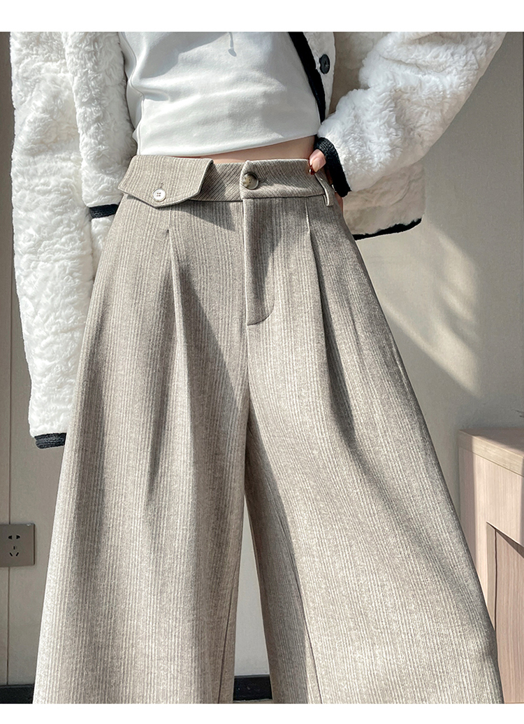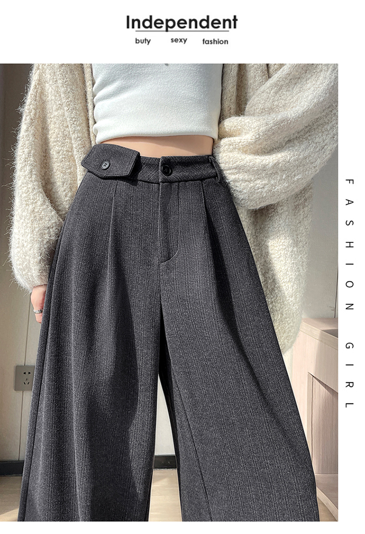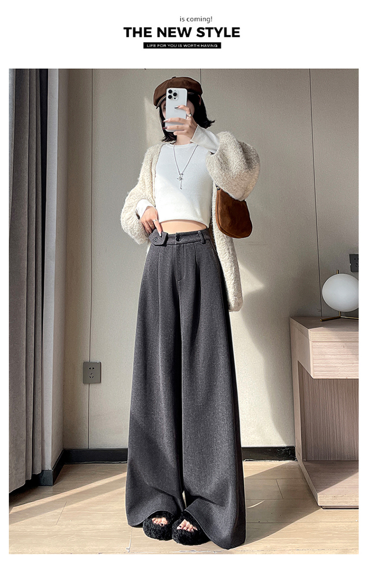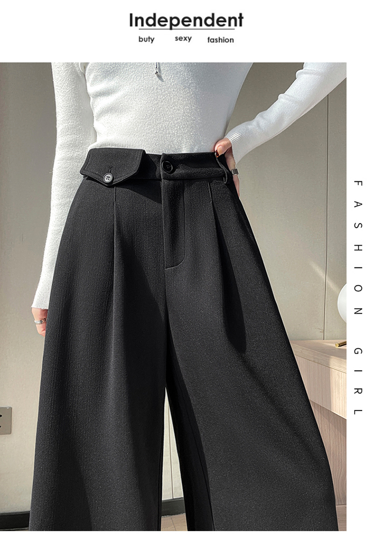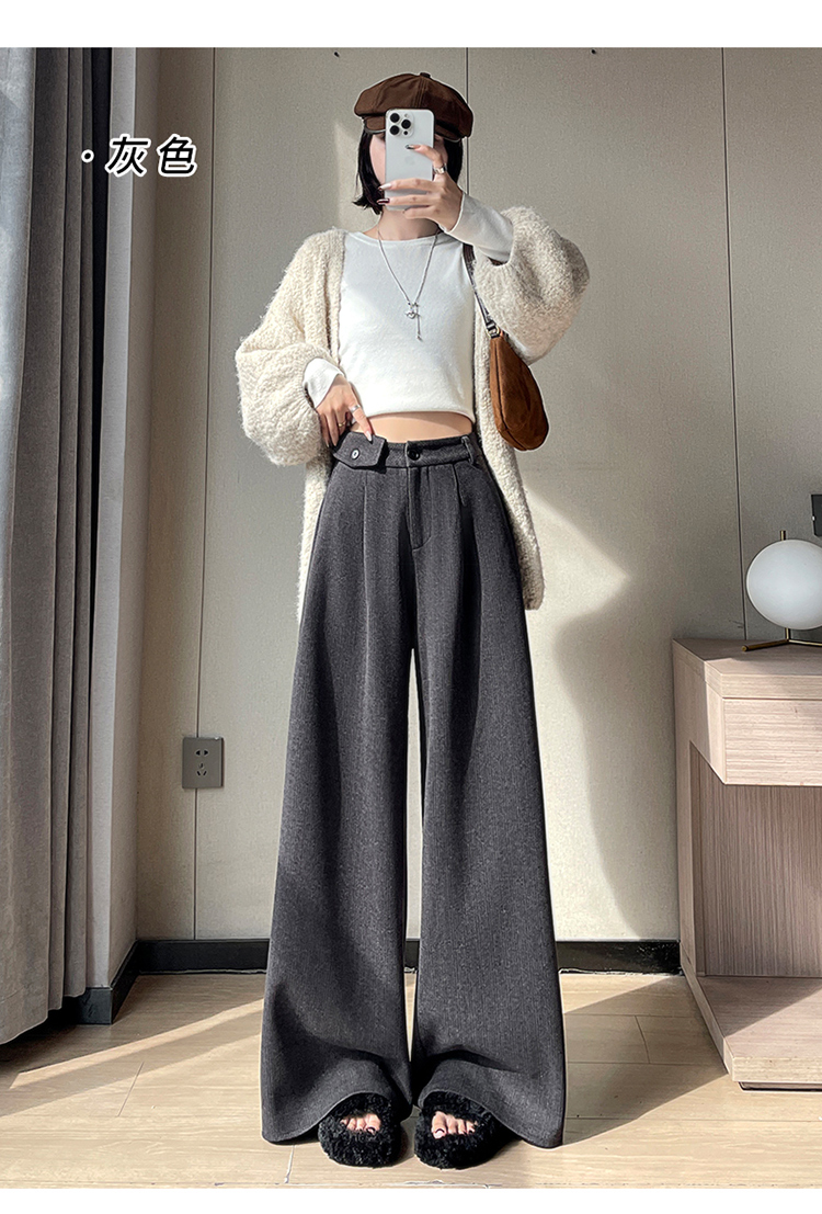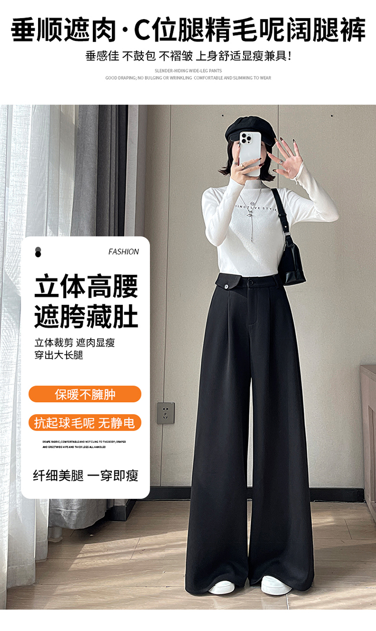 MY14554# 新款加绒麦穗纹毛呢裤直筒阔腿裤高腰拖地休闲裤女女裝貨源服裝批發