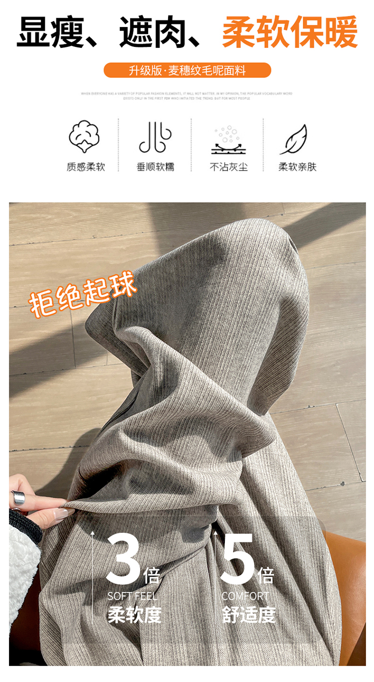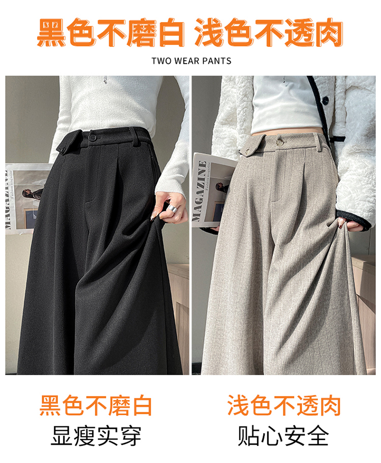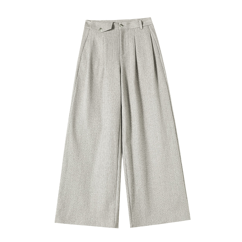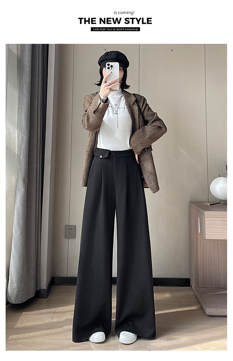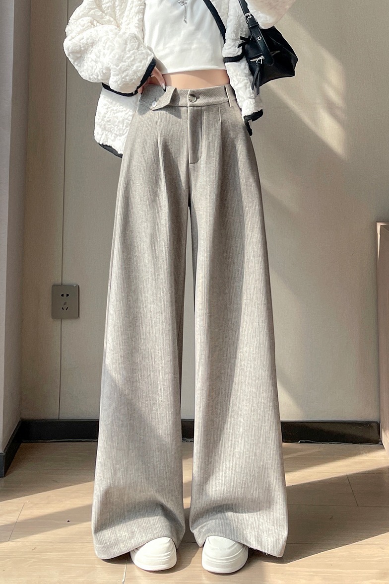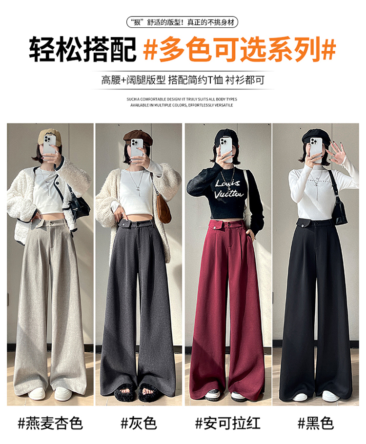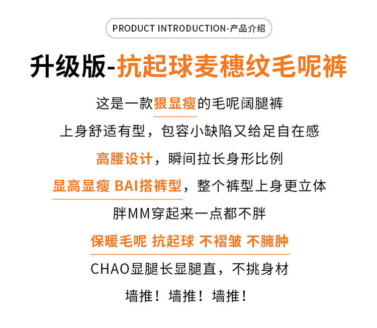 MY14554# 新款加绒麦穗纹毛呢裤直筒阔腿裤高腰拖地休闲裤女女裝貨源服裝批發