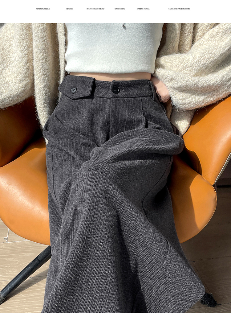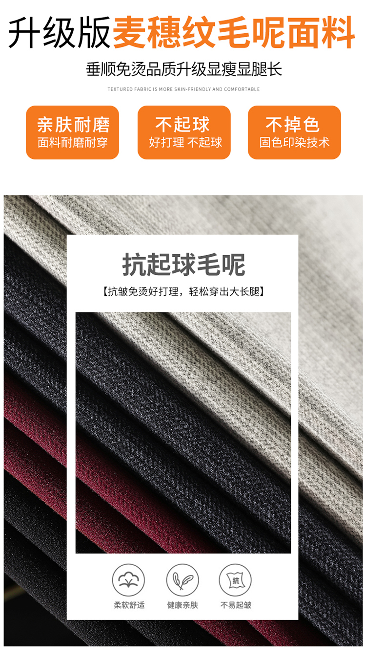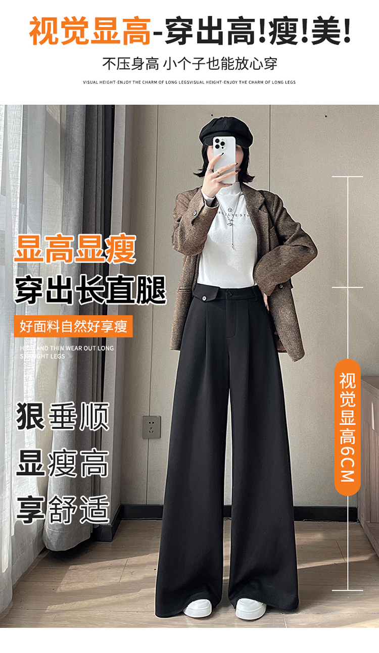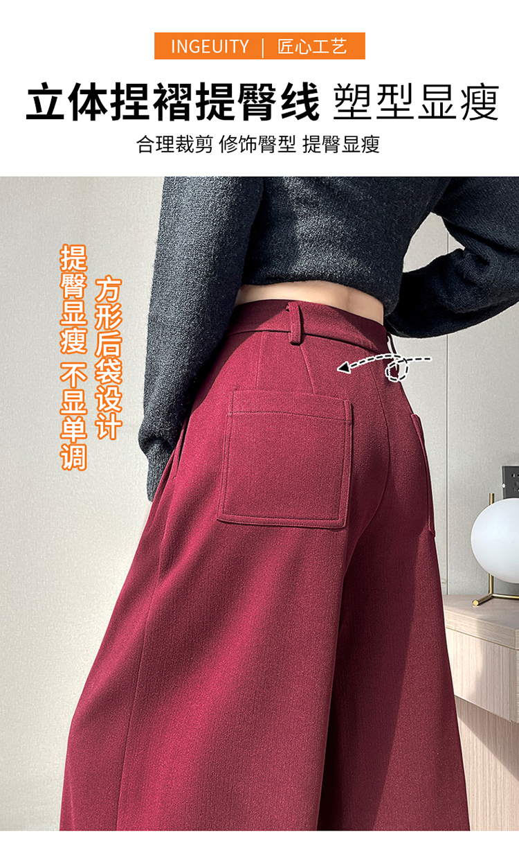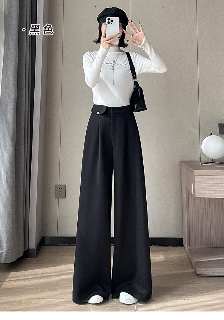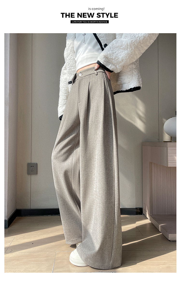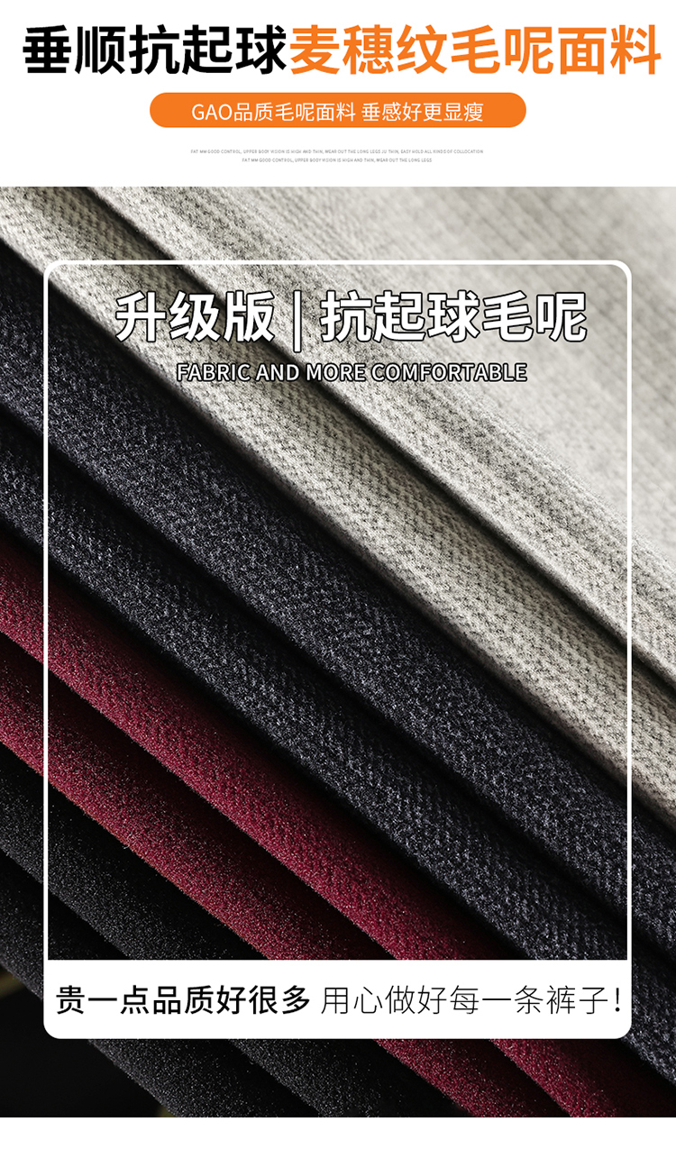 MY14554# 新款加绒麦穗纹毛呢裤直筒阔腿裤高腰拖地休闲裤女女裝貨源服裝批發