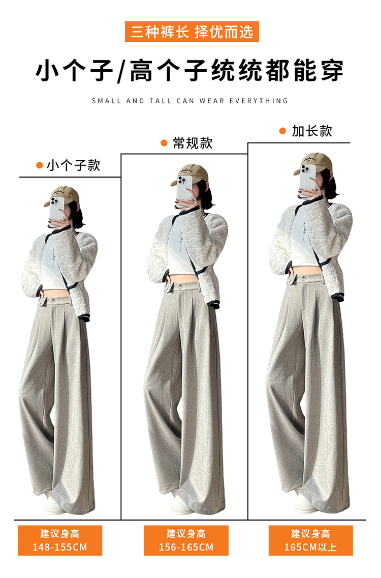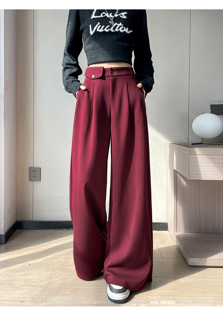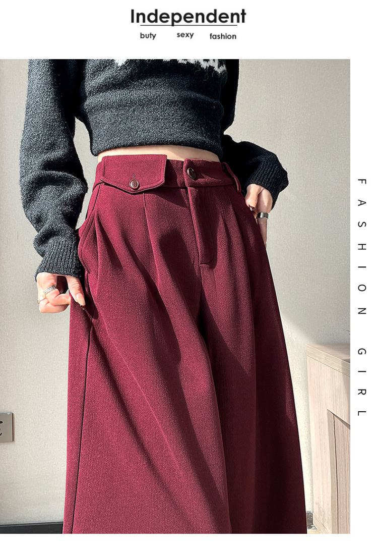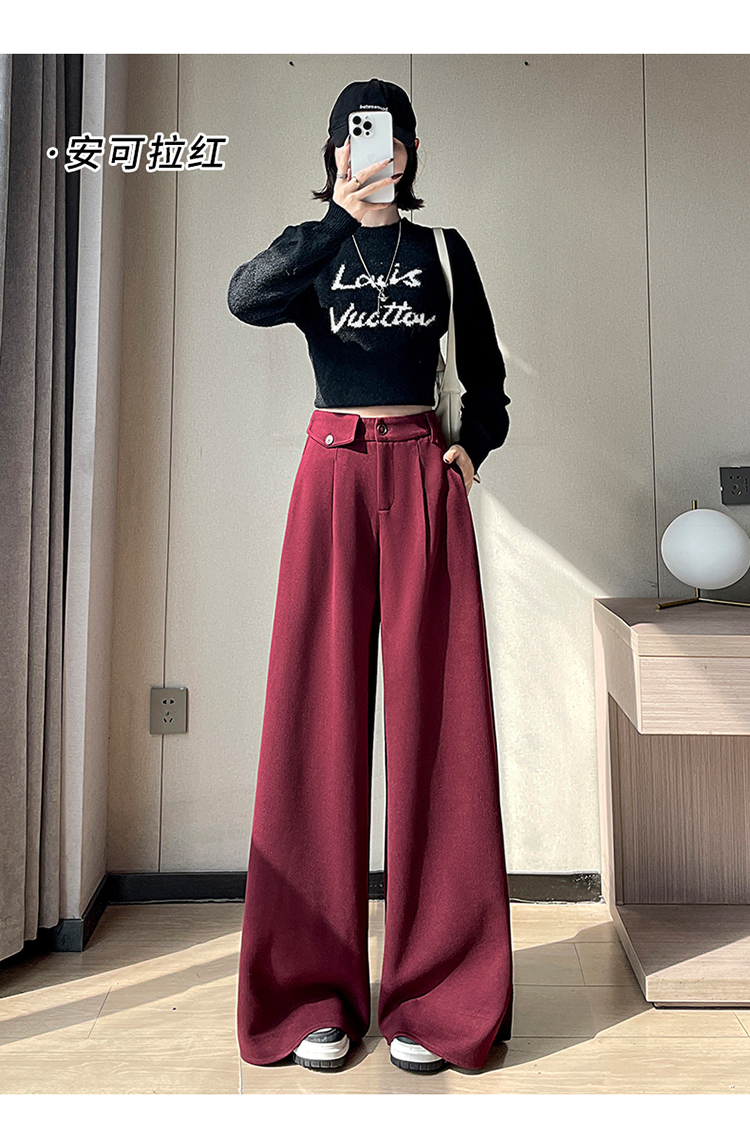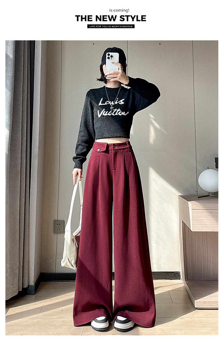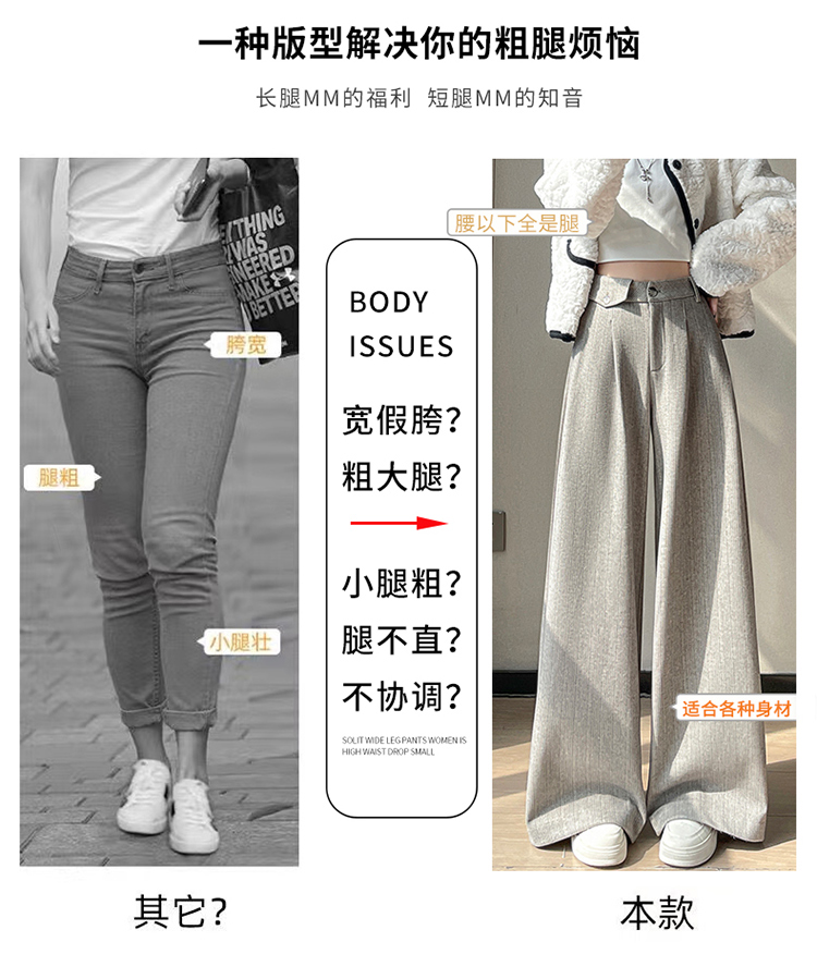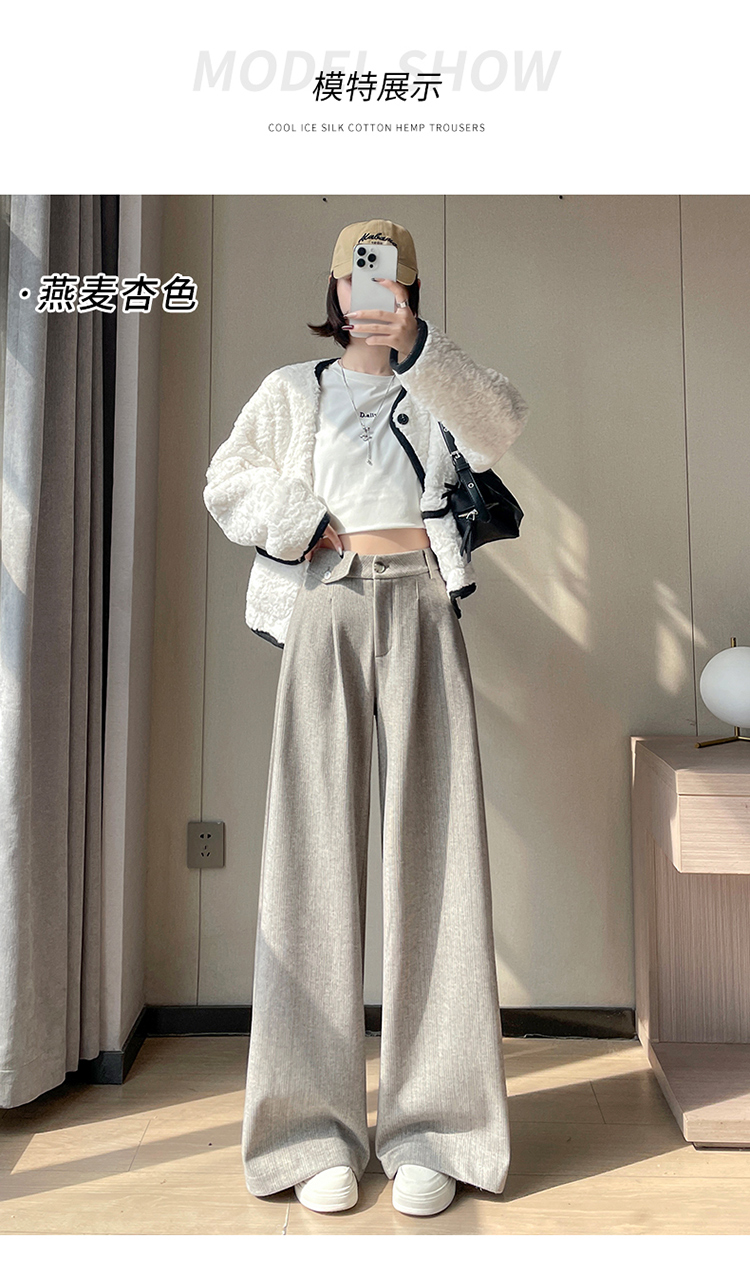MY14554# 新款加绒麦穗纹毛呢裤直筒阔腿裤高腰拖地休闲裤女女裝貨源服裝批發
