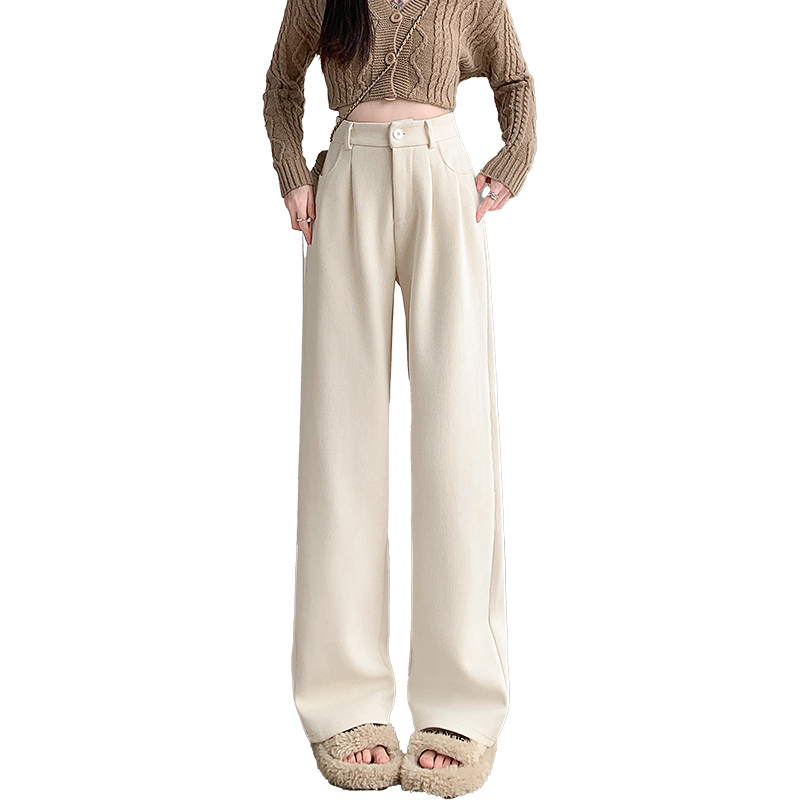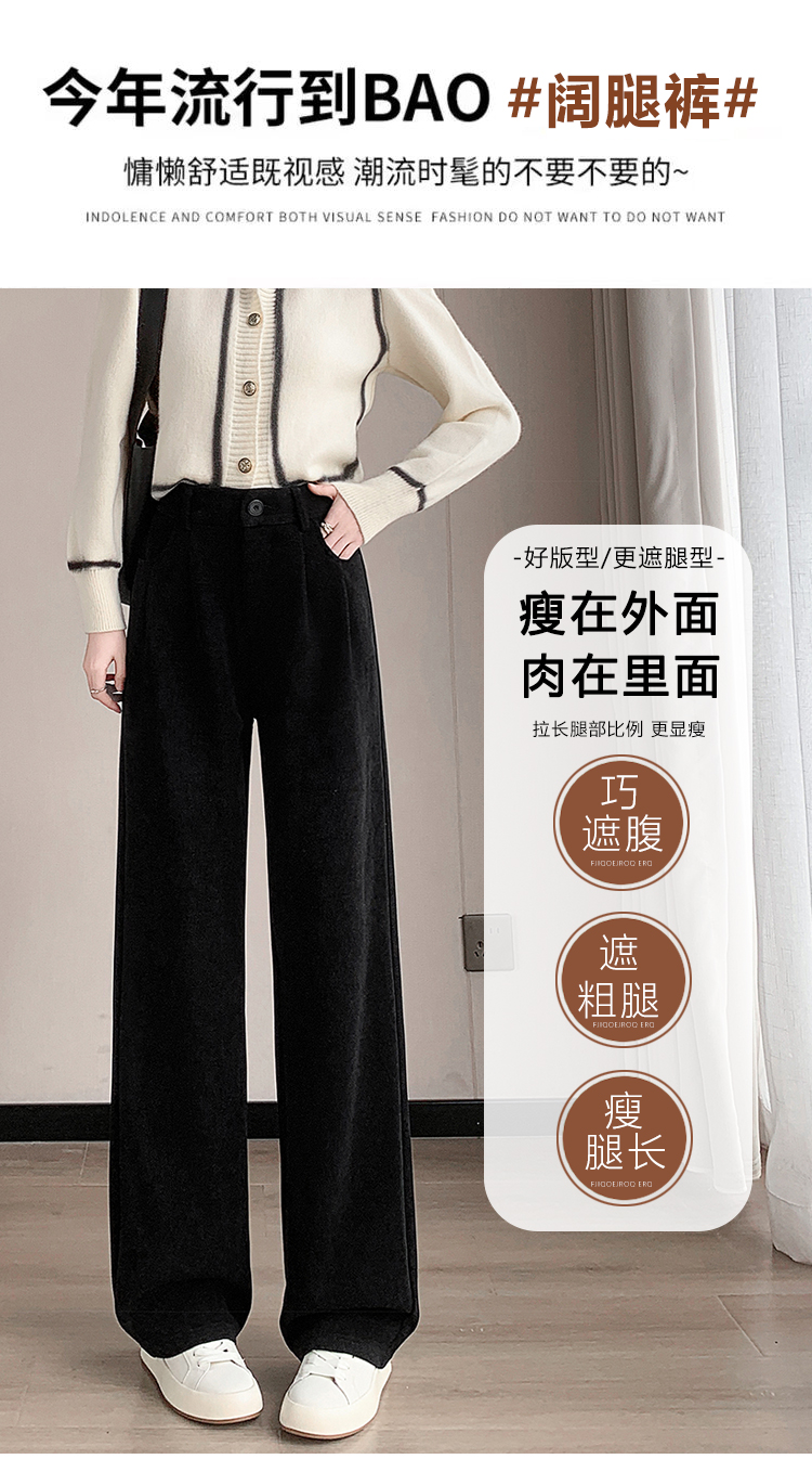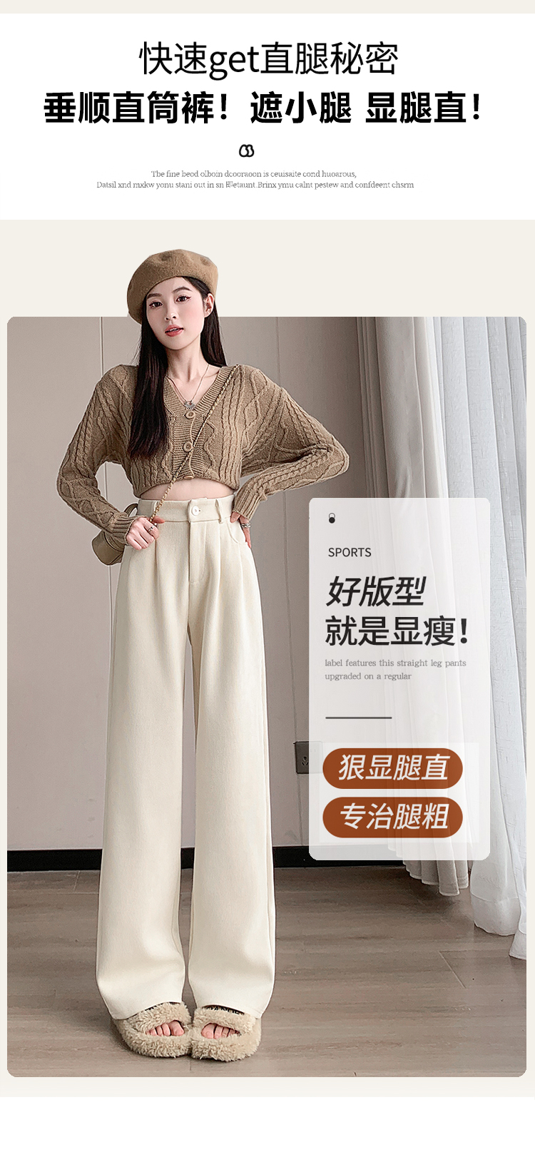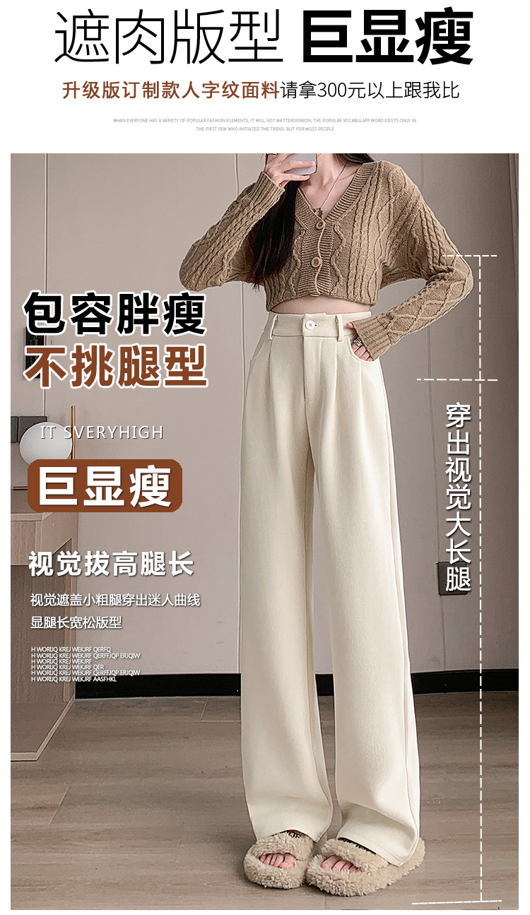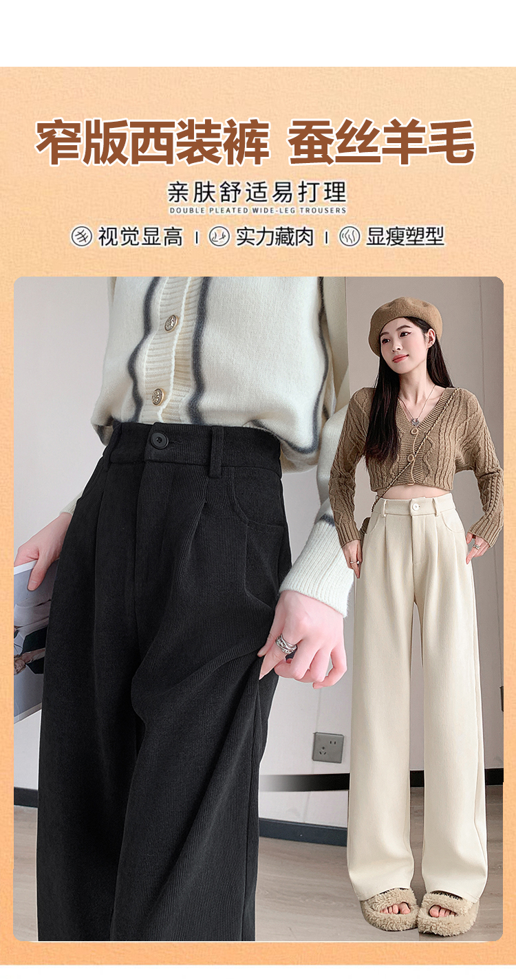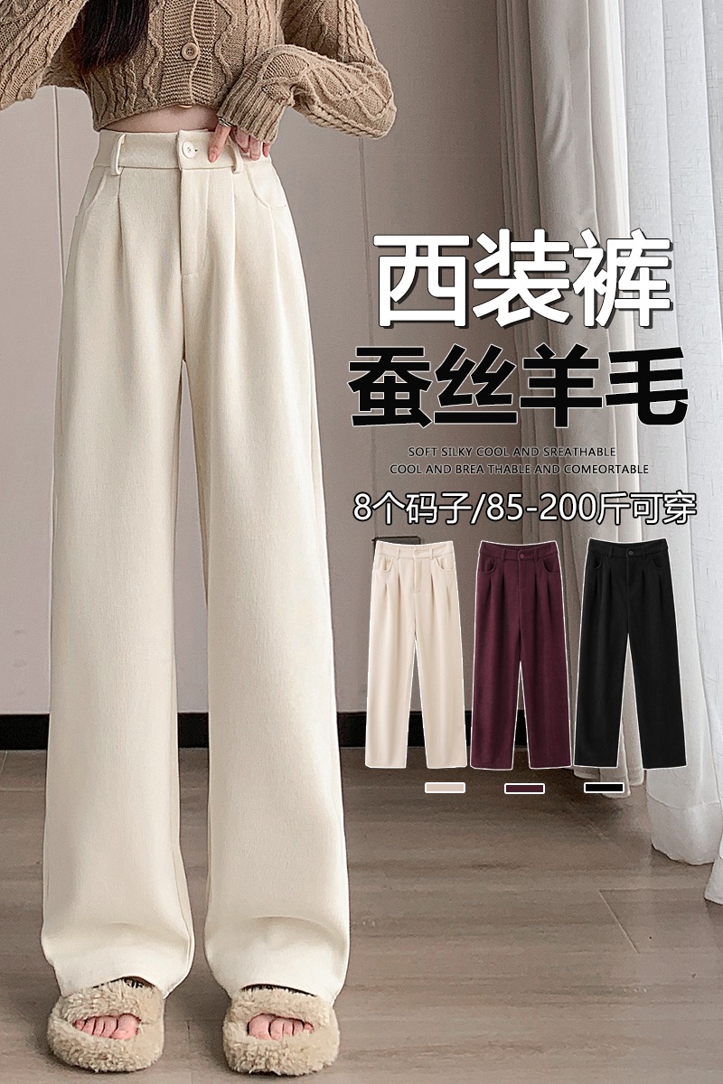 MY14558# 新款蚕线羊毛西装裤女秋冬高腰垂感加厚直筒阔腿裤糯米裤女裝貨源服裝批發