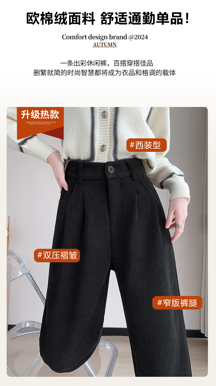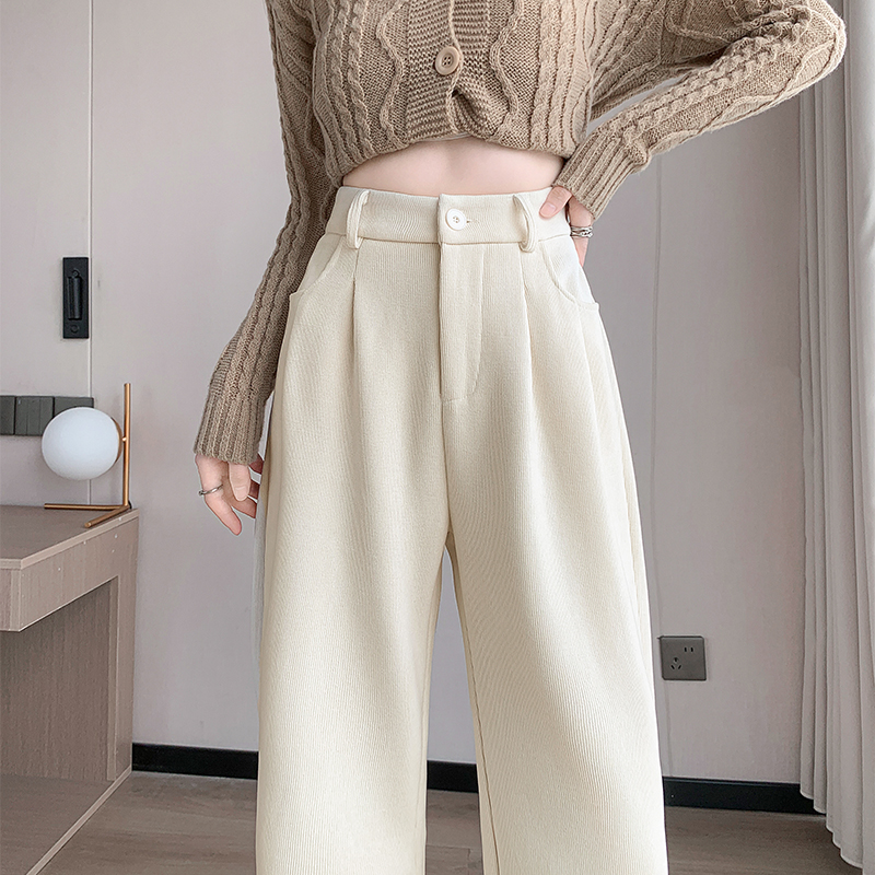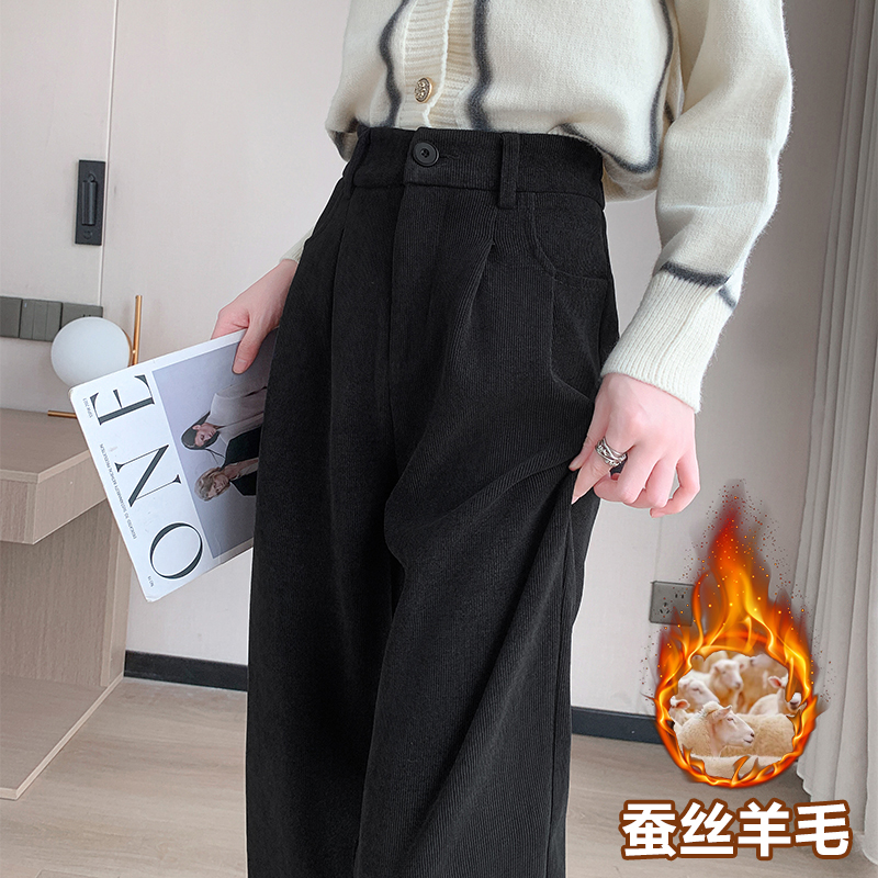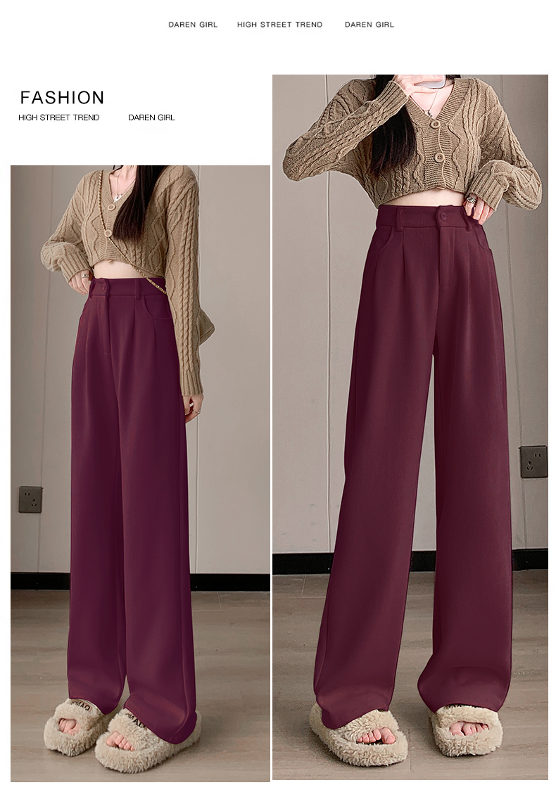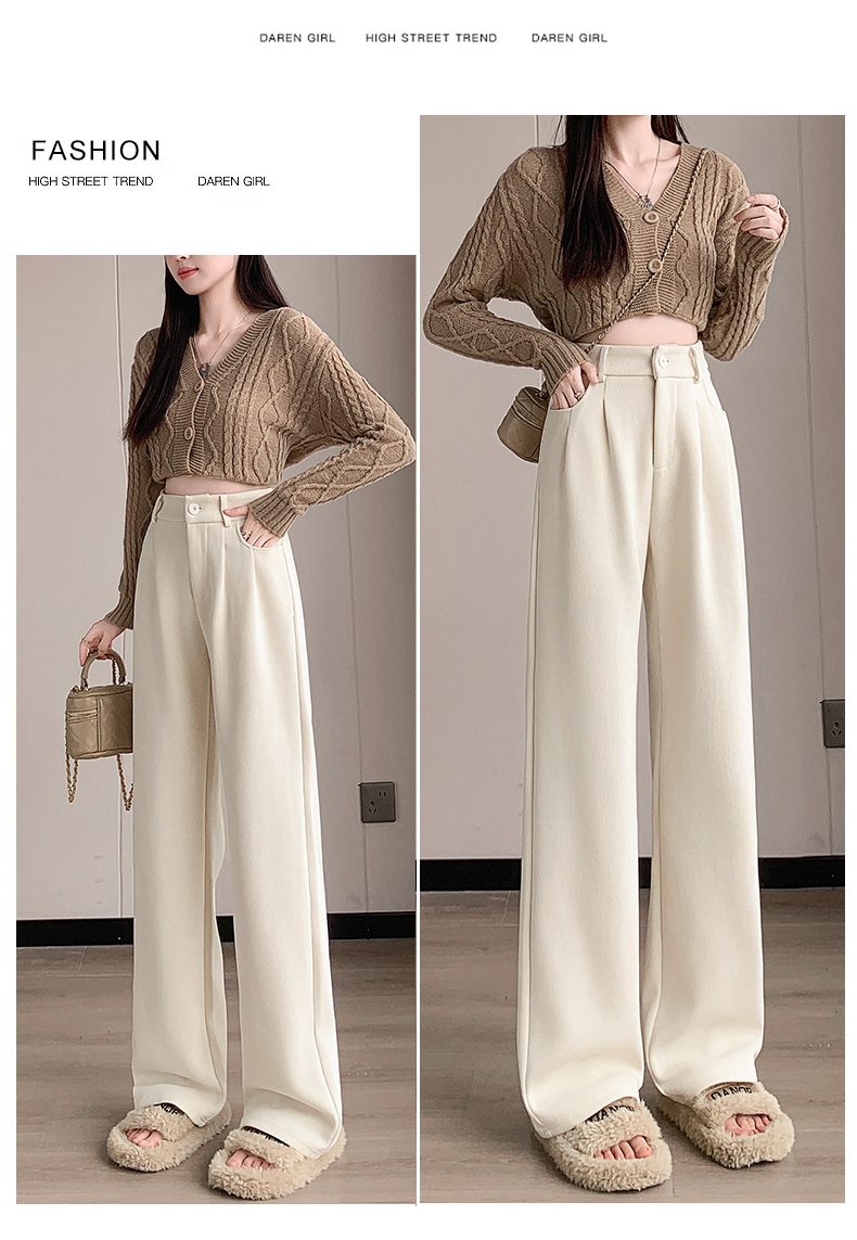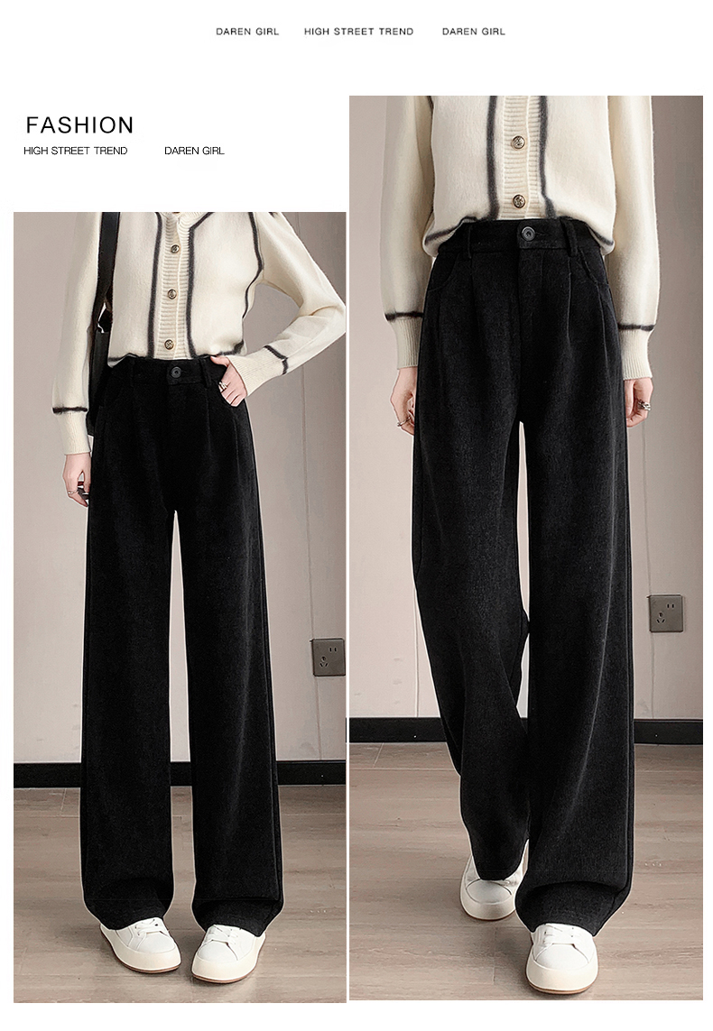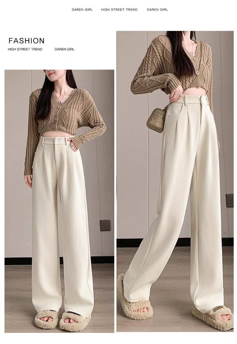 MY14558# 新款蚕线羊毛西装裤女秋冬高腰垂感加厚直筒阔腿裤糯米裤女裝貨源服裝批發