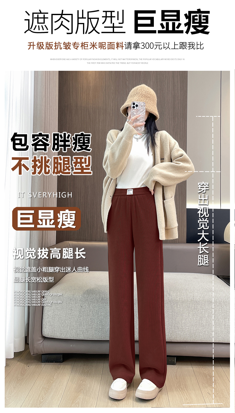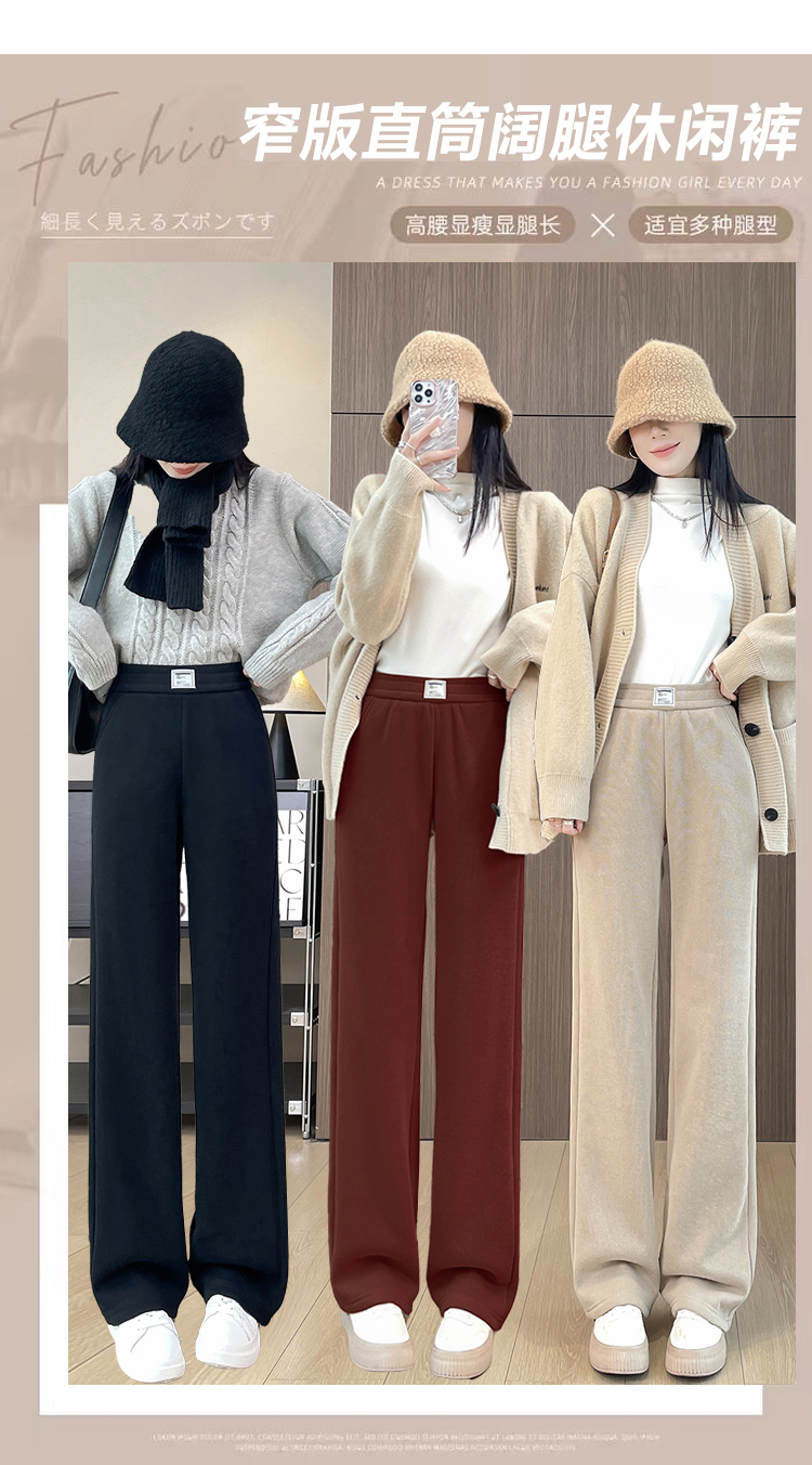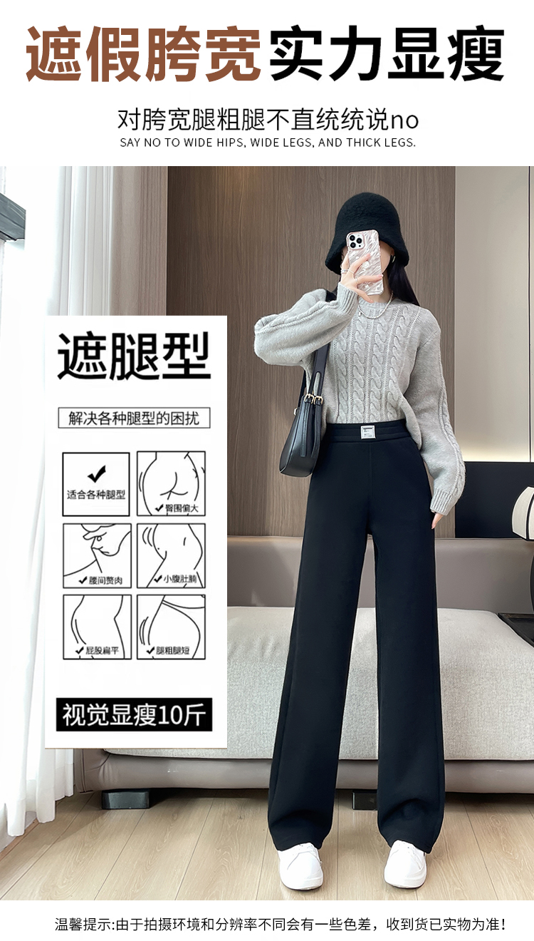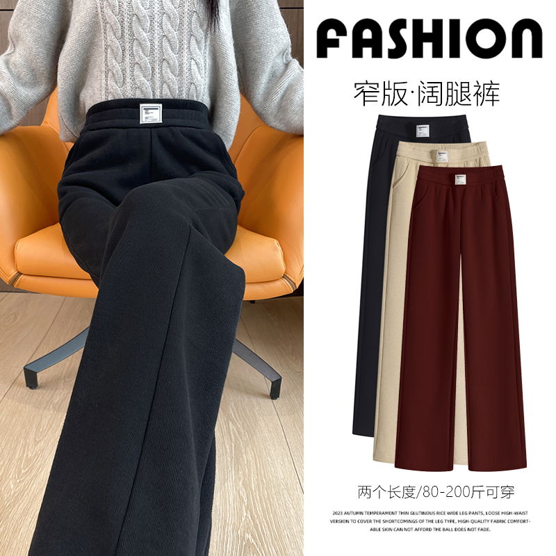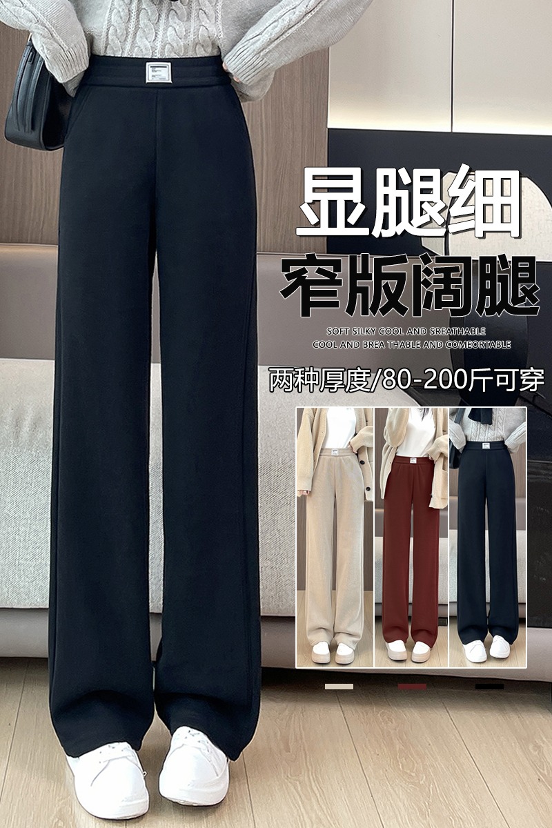 MY14560# 虎珀流光风阔腿裤女垂感新款秋冬季高腰窄版加绒直筒阔腿裤女裝貨源服裝批發