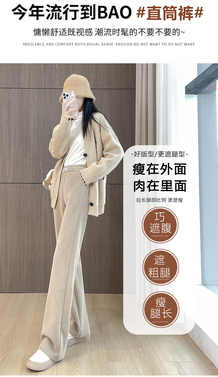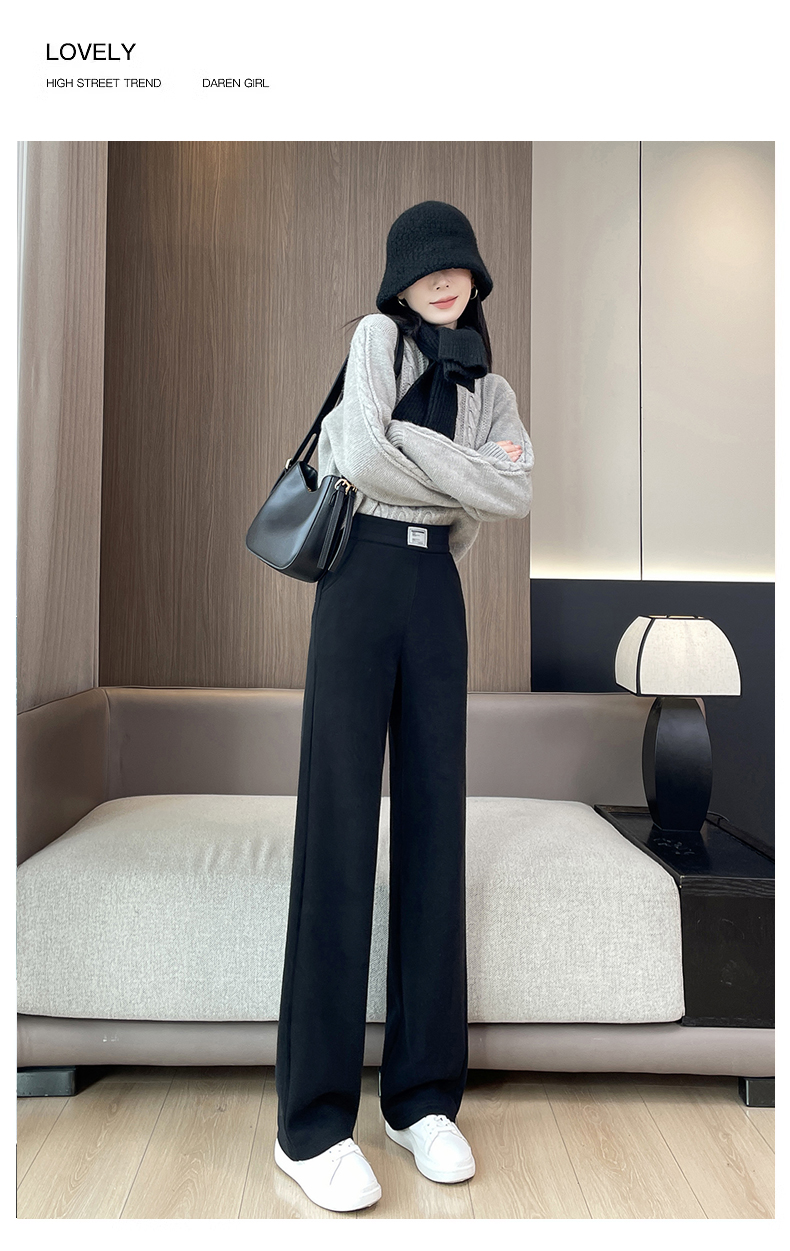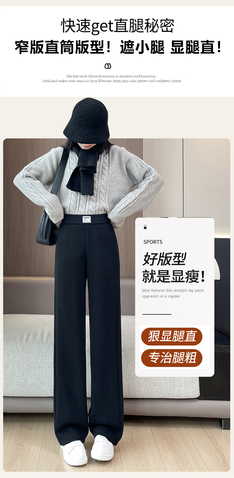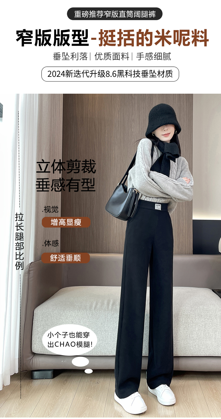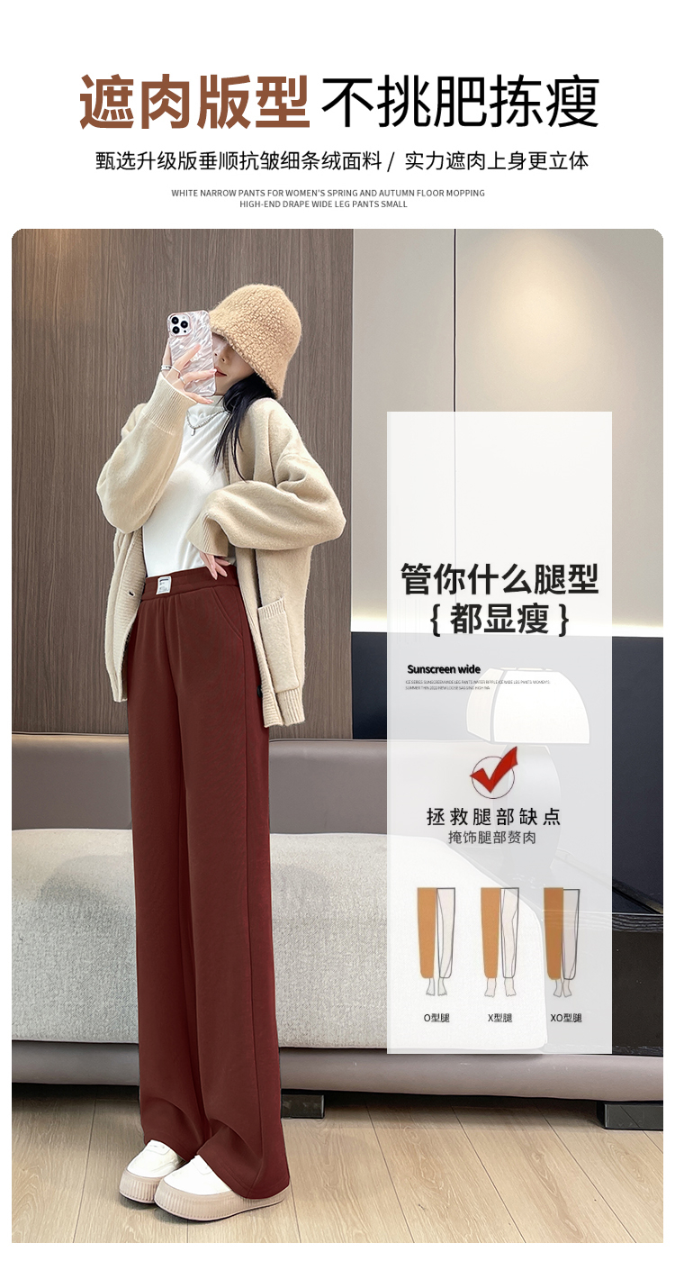 MY14560# 虎珀流光风阔腿裤女垂感新款秋冬季高腰窄版加绒直筒阔腿裤女裝貨源服裝批發