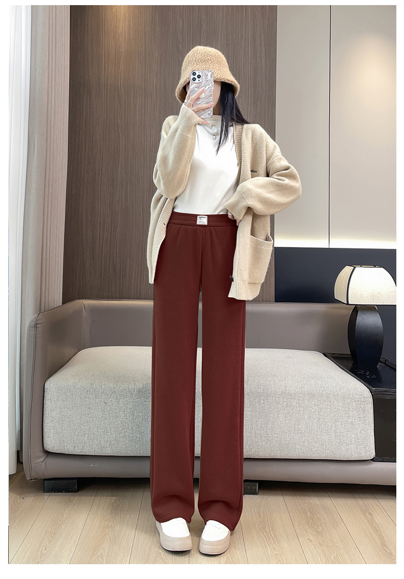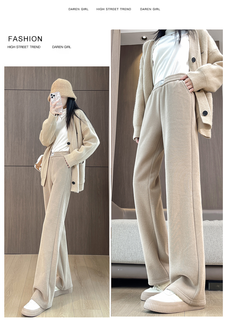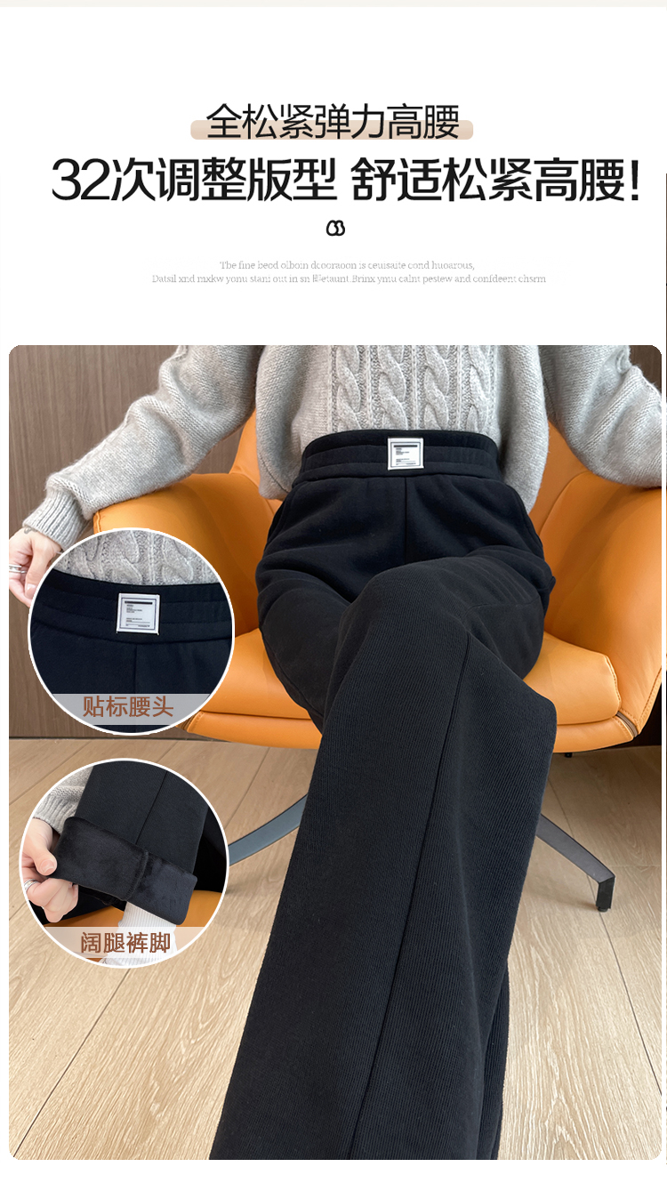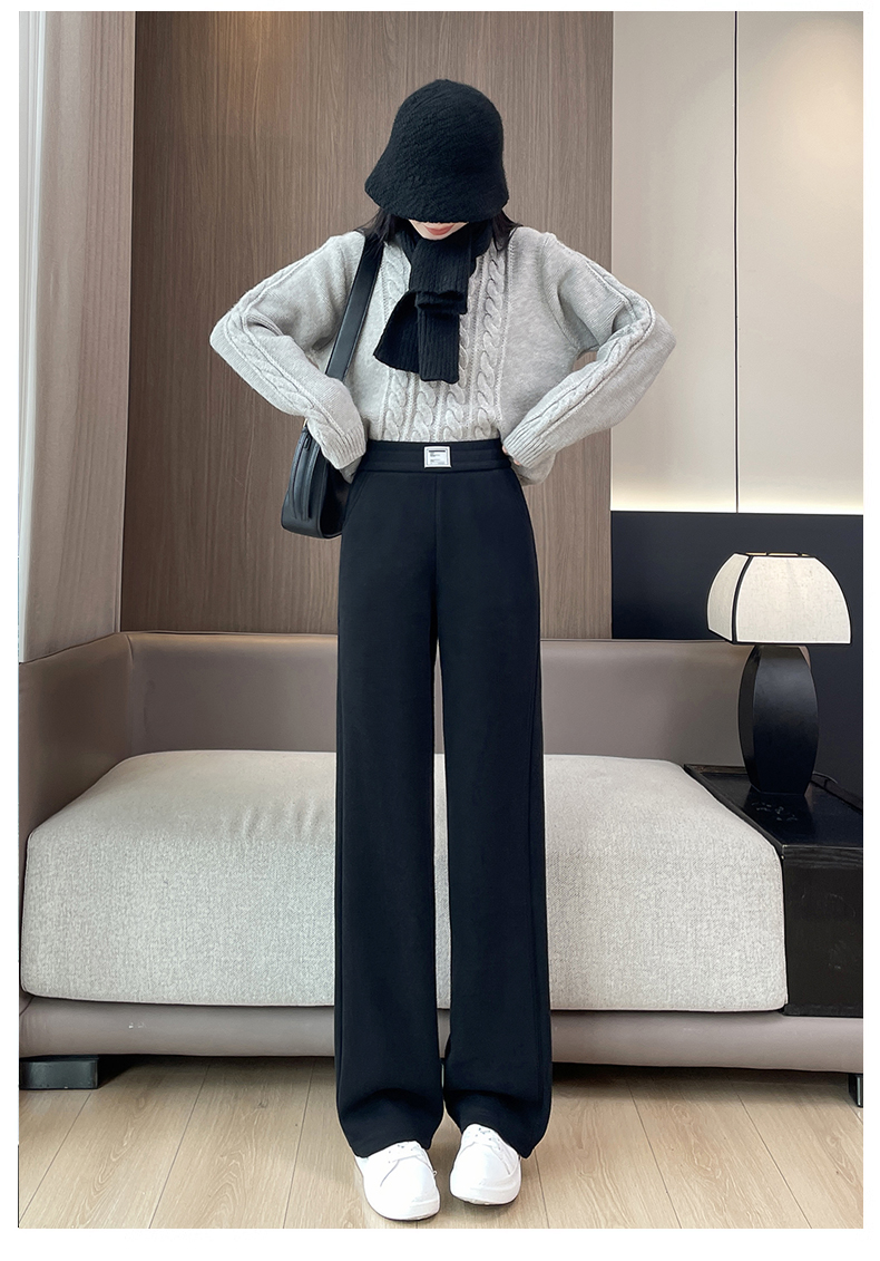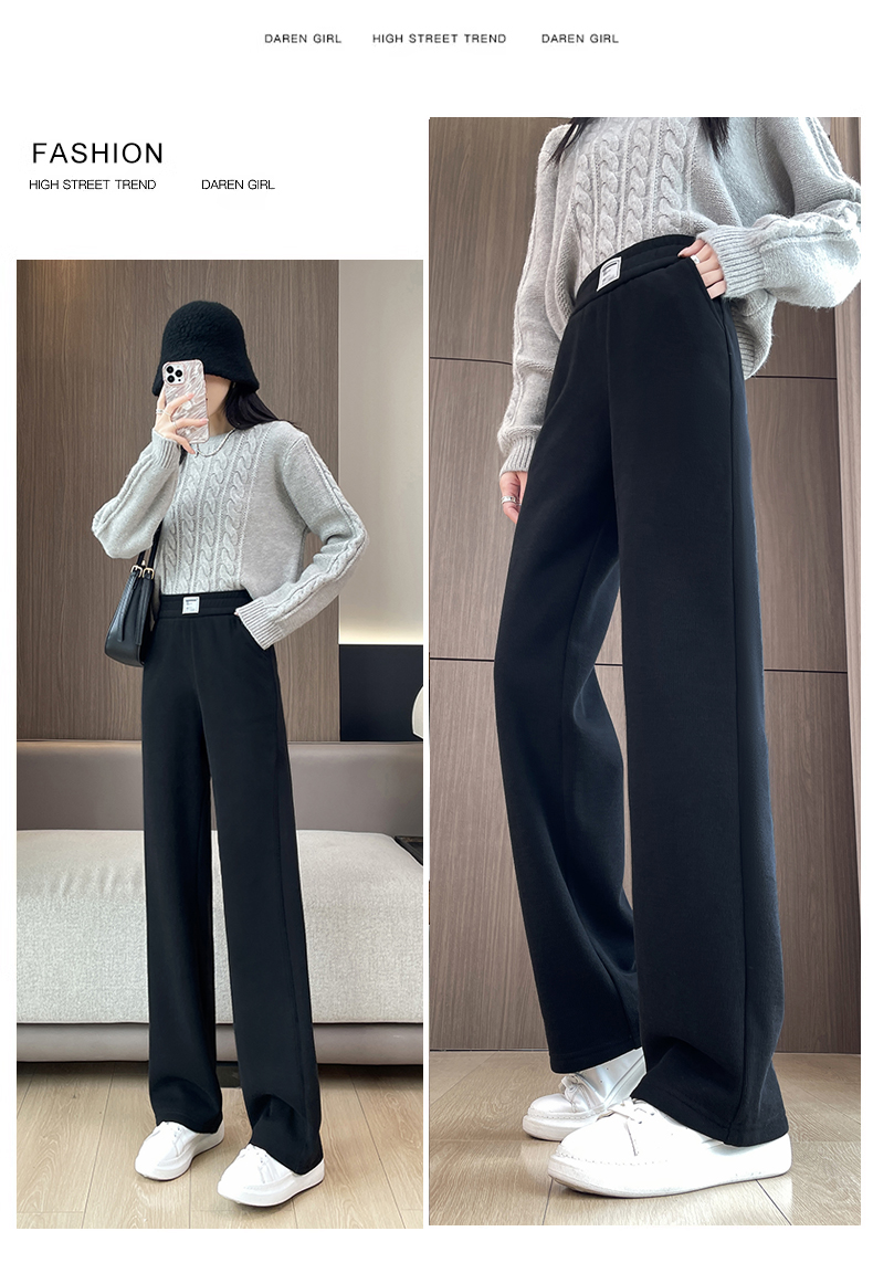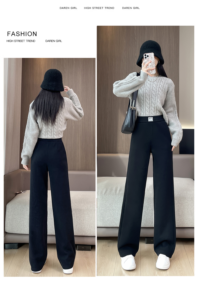 MY14560# 虎珀流光风阔腿裤女垂感新款秋冬季高腰窄版加绒直筒阔腿裤女裝貨源服裝批發