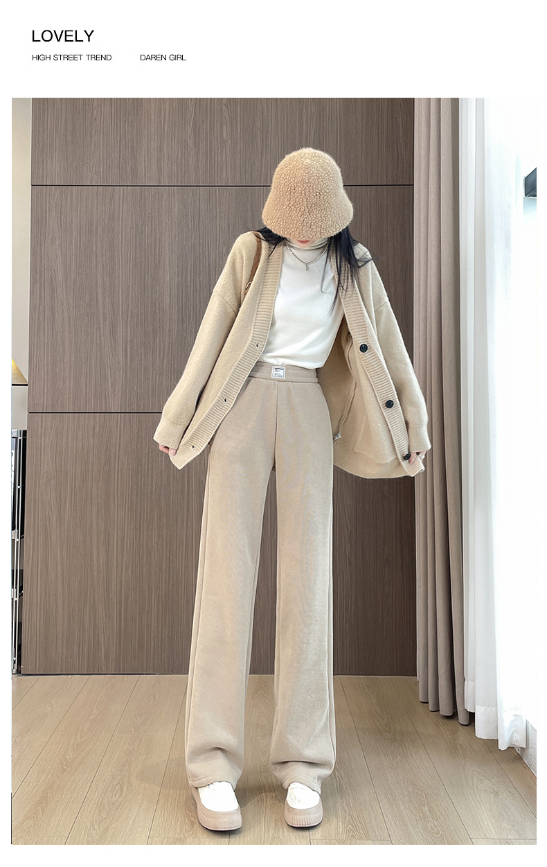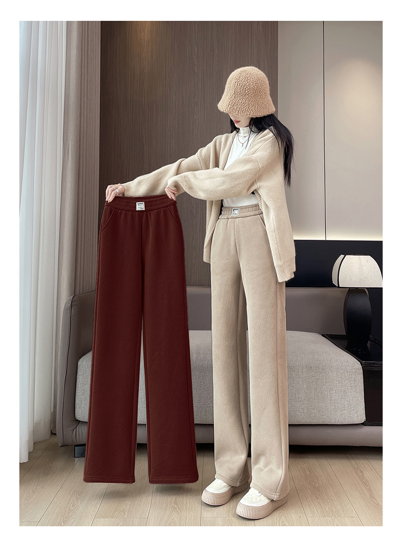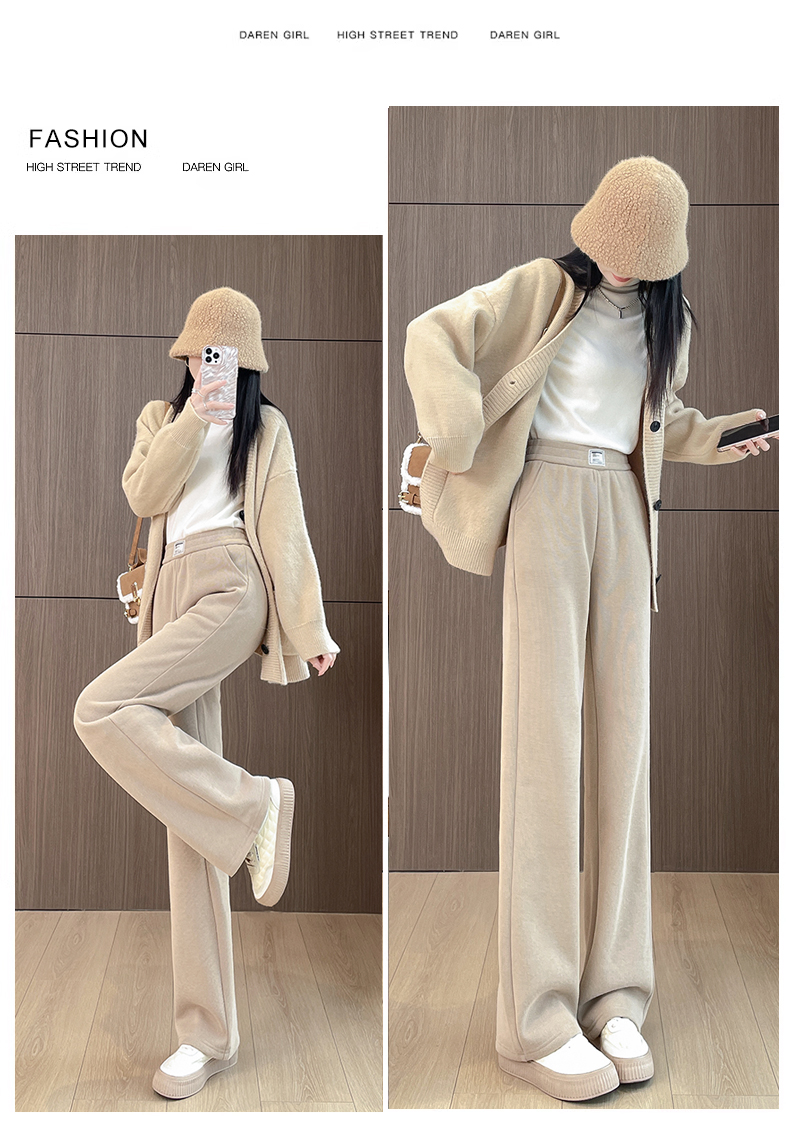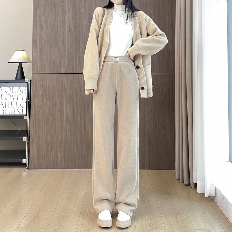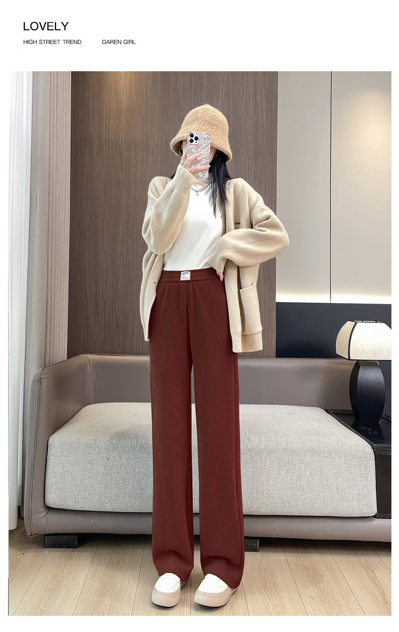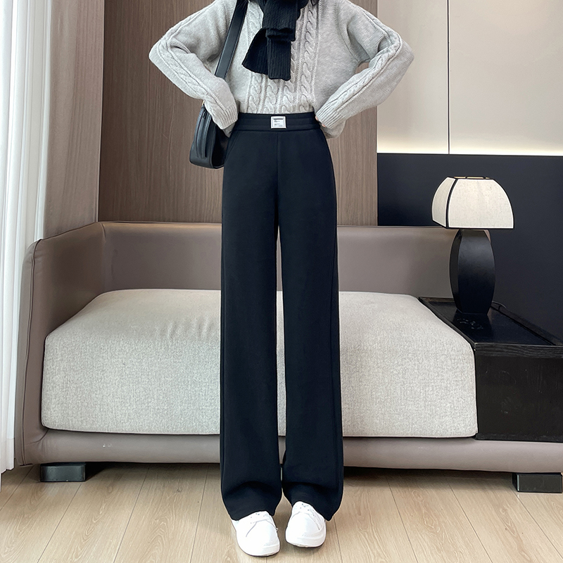 MY14560# 虎珀流光风阔腿裤女垂感新款秋冬季高腰窄版加绒直筒阔腿裤女裝貨源服裝批發