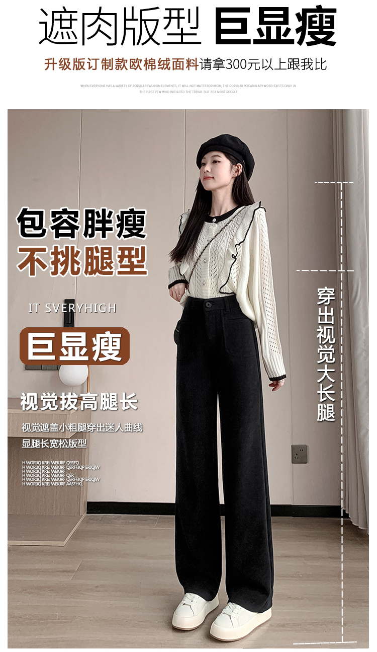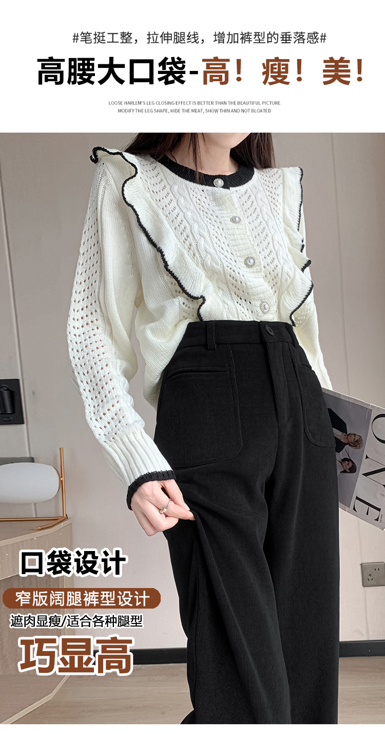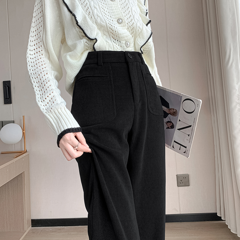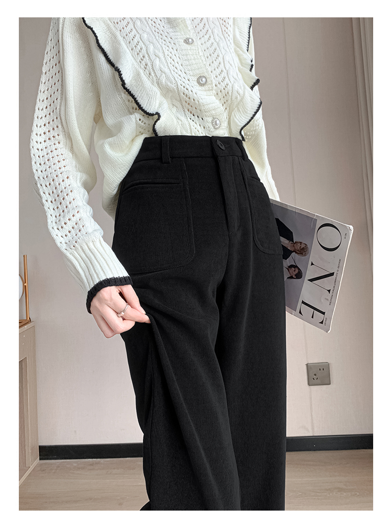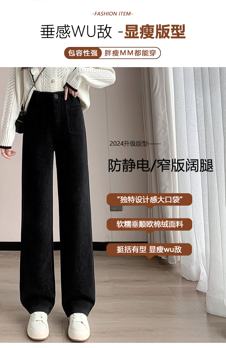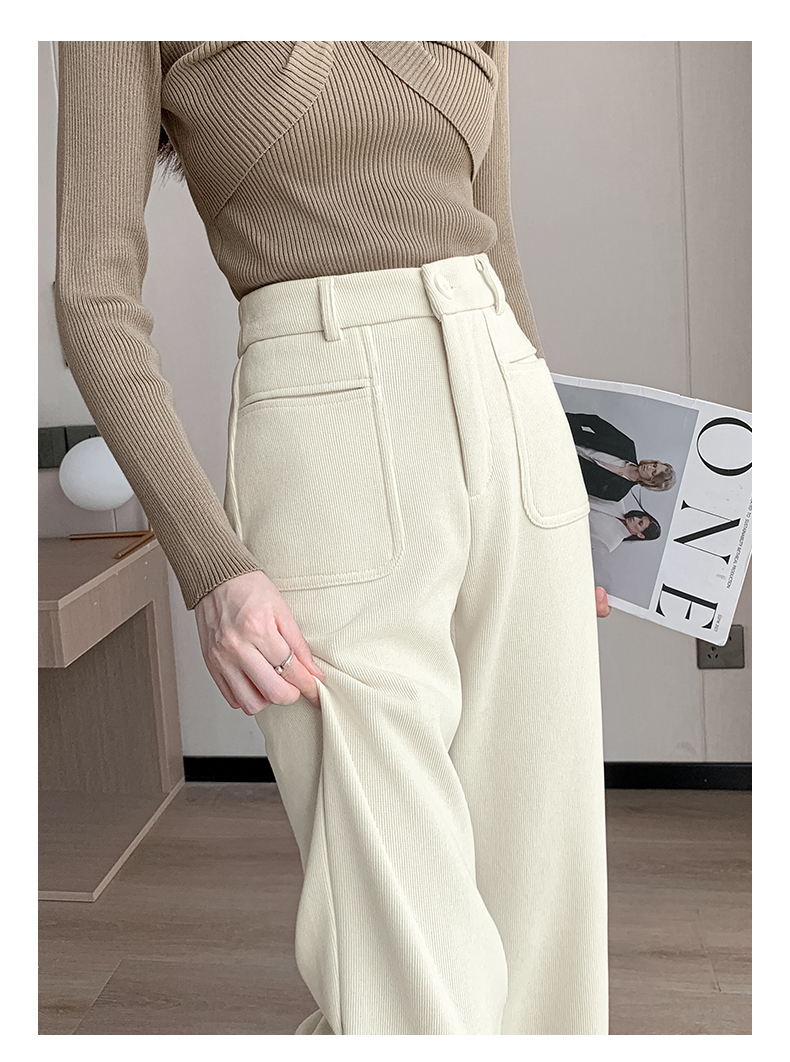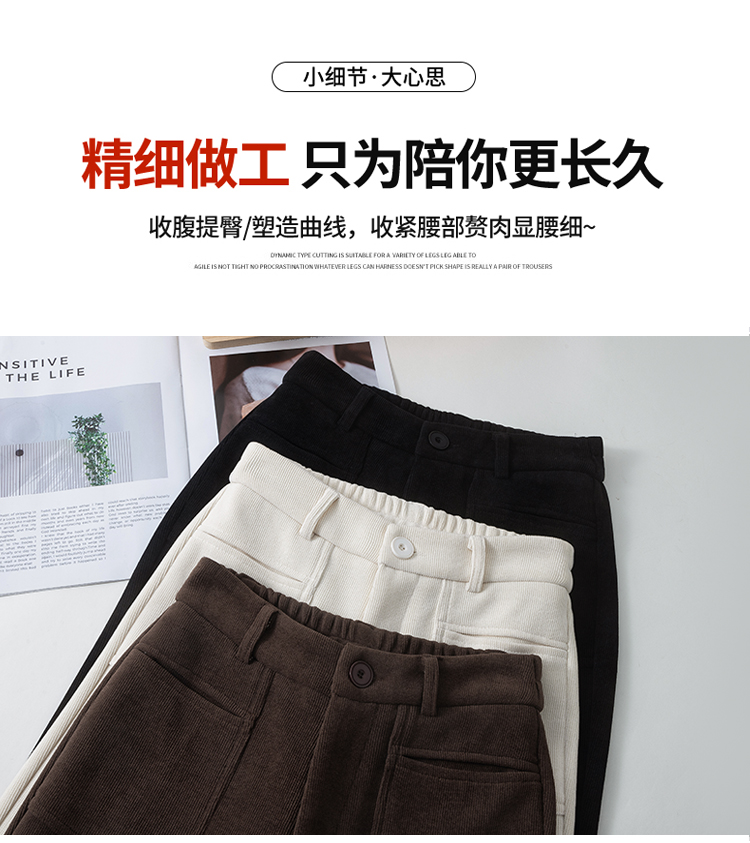MY14561# 雪尼尔窄版阔腿裤秋冬高腰西装裤加绒灯芯绒直筒裤女裝貨源服裝批發