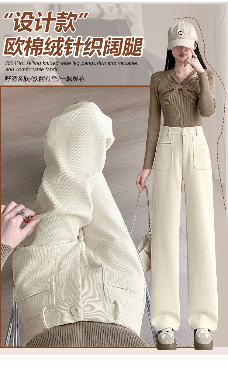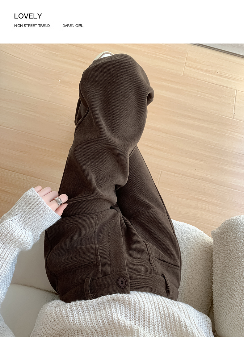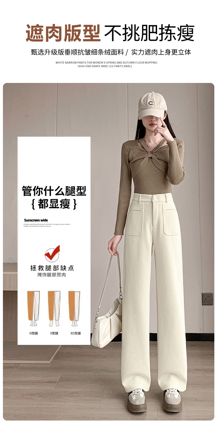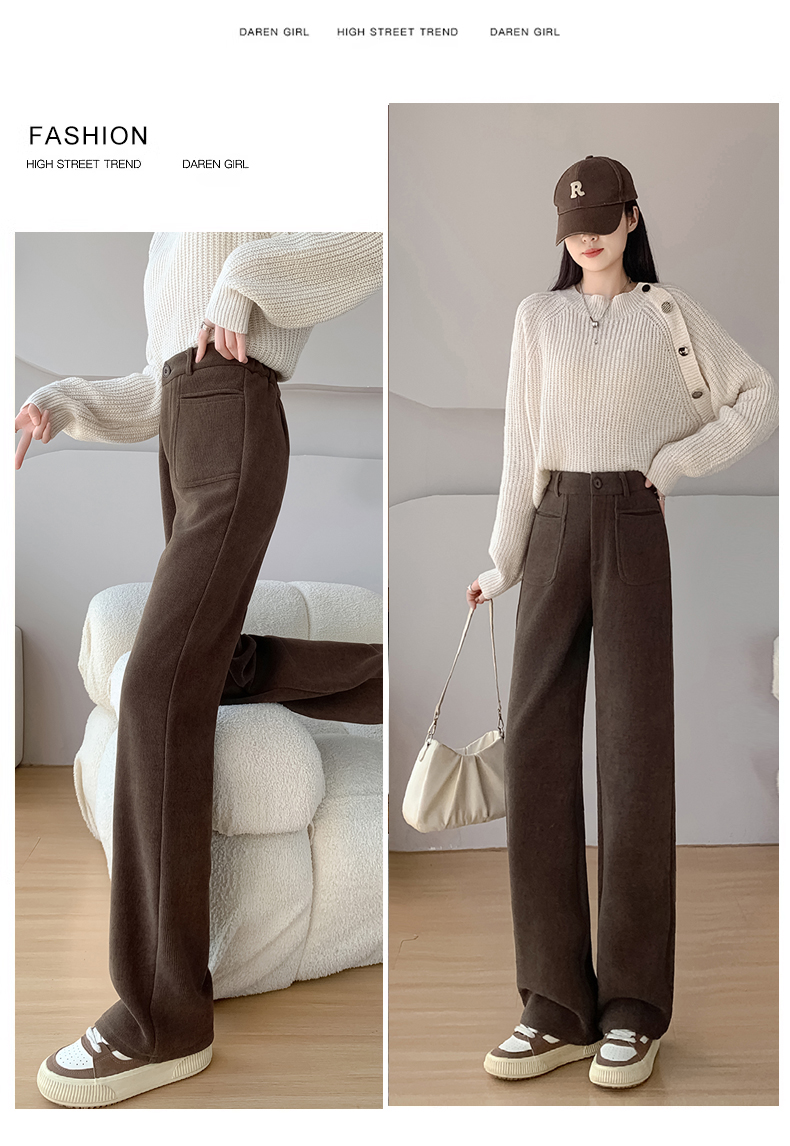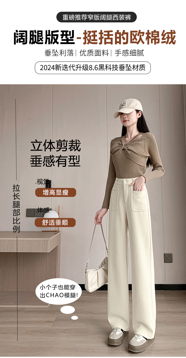MY14561# 雪尼尔窄版阔腿裤秋冬高腰西装裤加绒灯芯绒直筒裤女裝貨源服裝批發