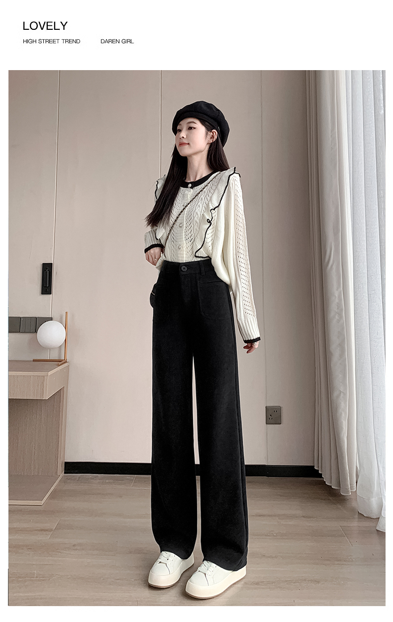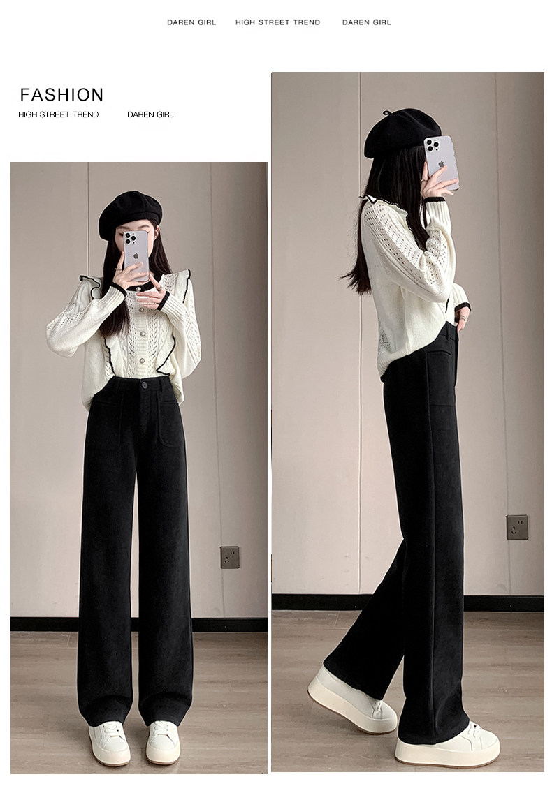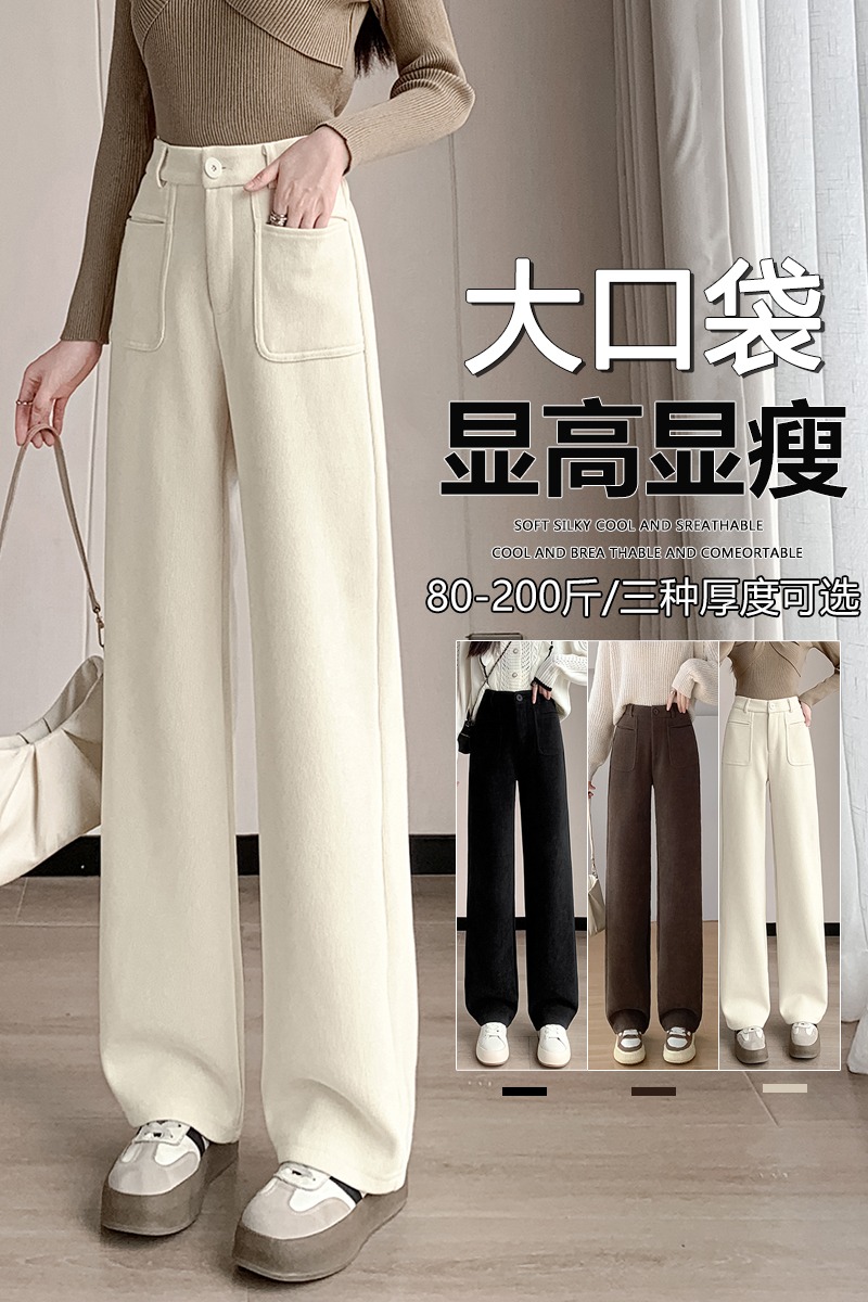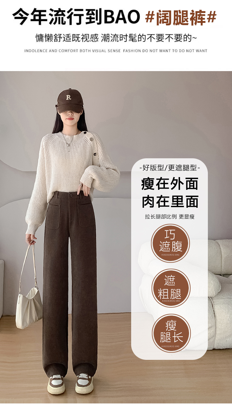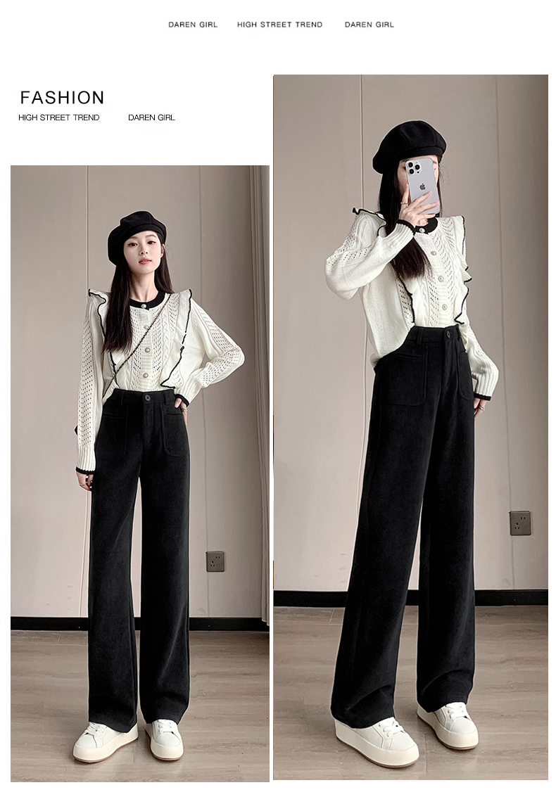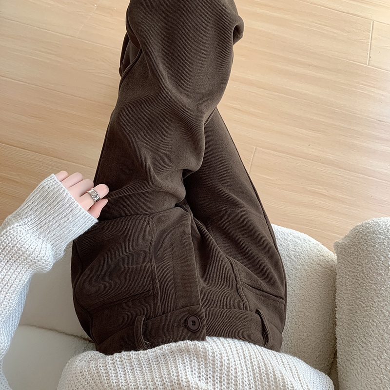 MY14561# 雪尼尔窄版阔腿裤秋冬高腰西装裤加绒灯芯绒直筒裤女裝貨源服裝批發