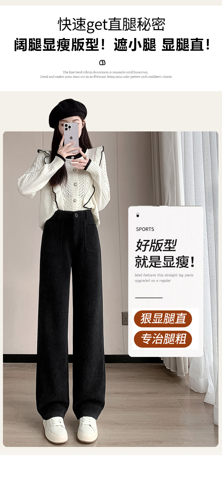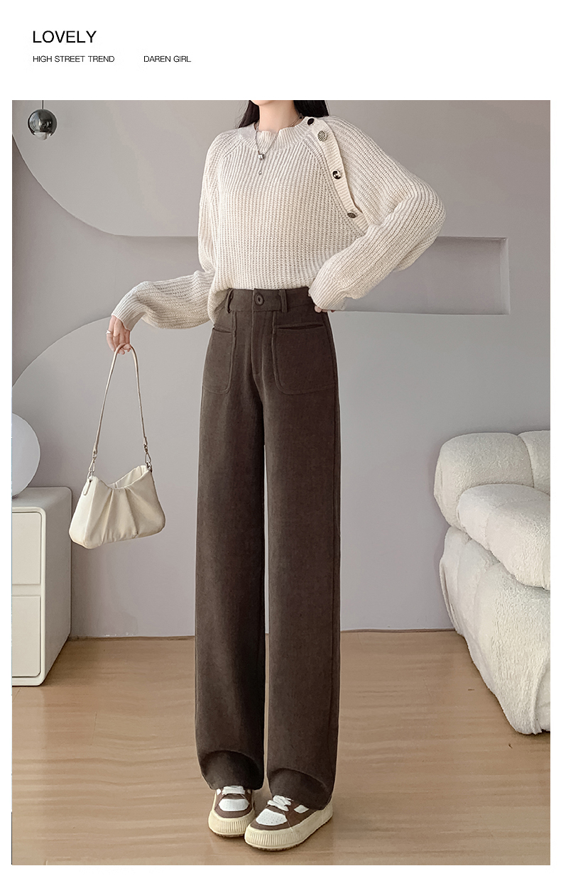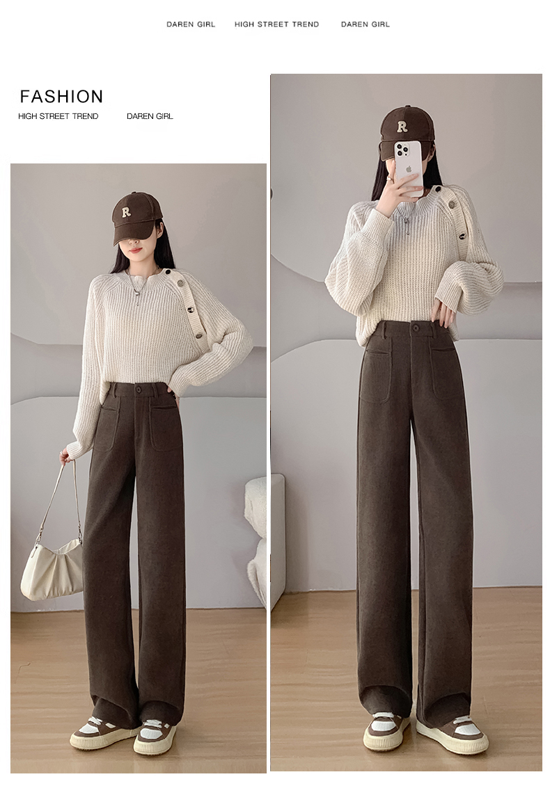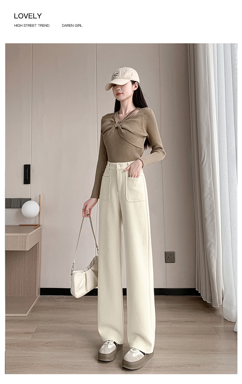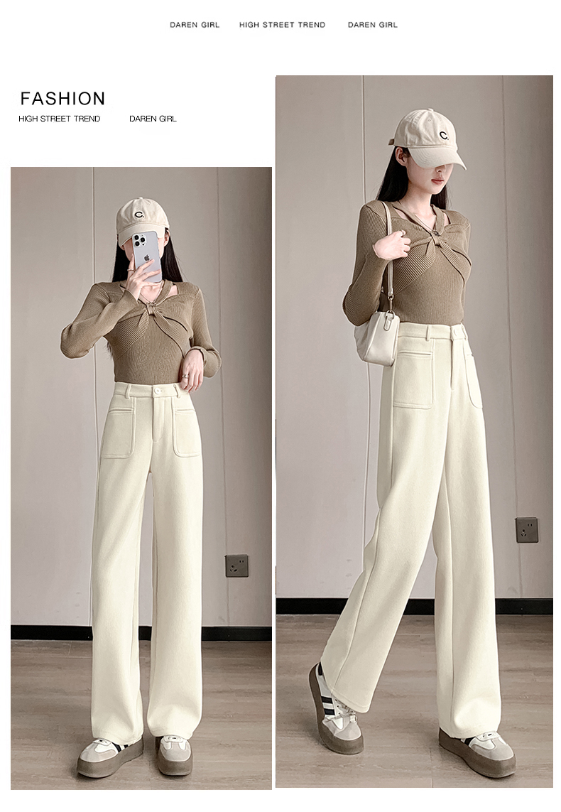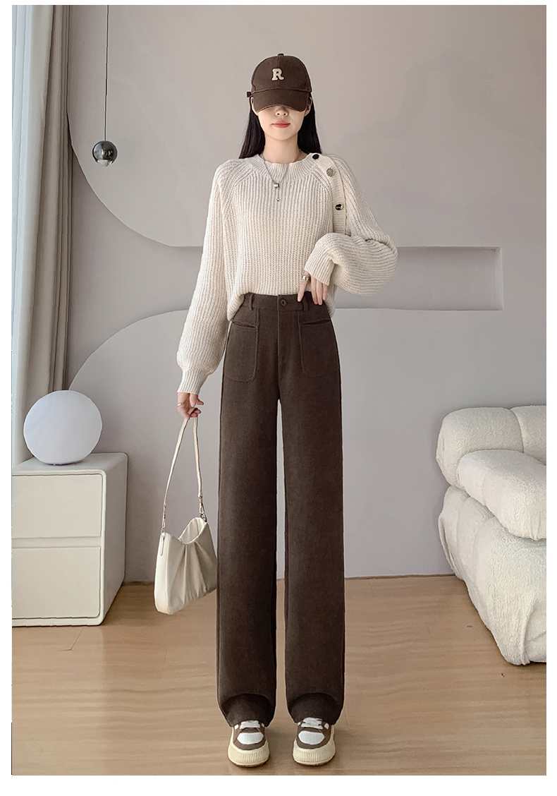 MY14561# 雪尼尔窄版阔腿裤秋冬高腰西装裤加绒灯芯绒直筒裤女裝貨源服裝批發
