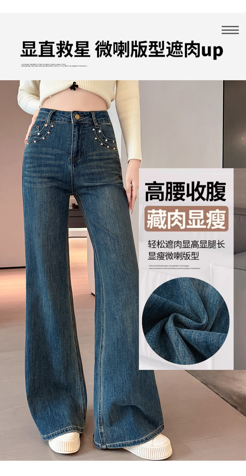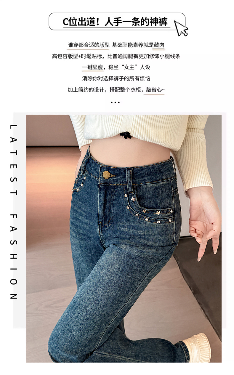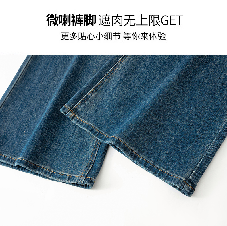 MY14566# 复古蓝加绒微喇叭牛仔裤新款今年流行爆款高腰喇叭裤子女裝貨源服裝批發