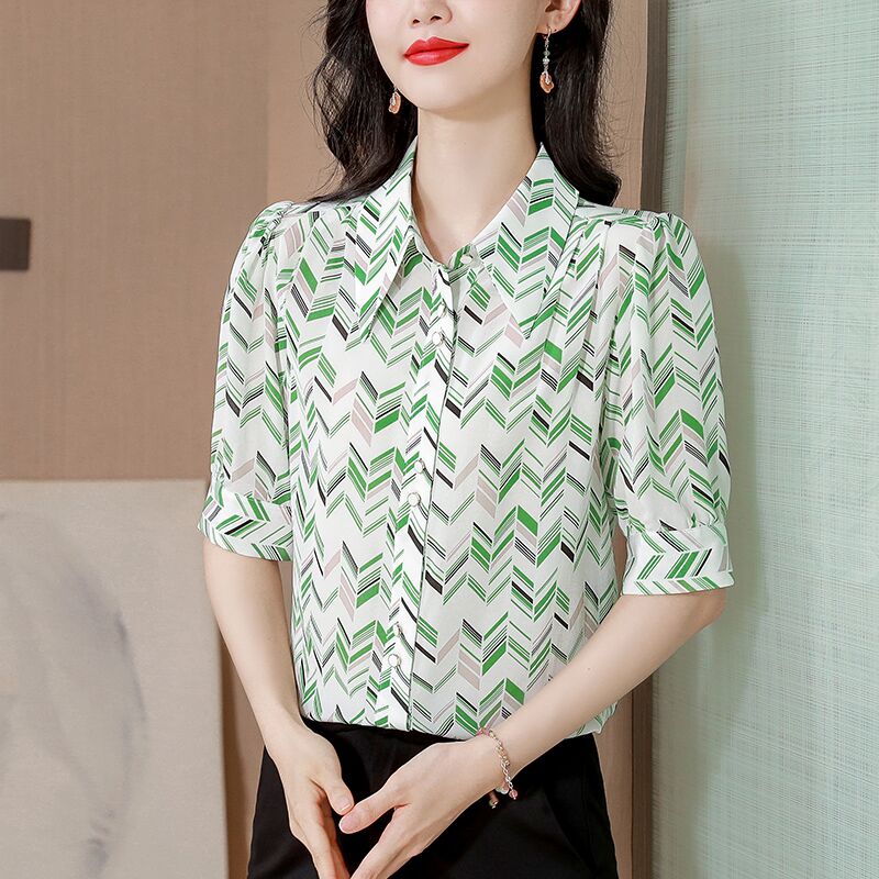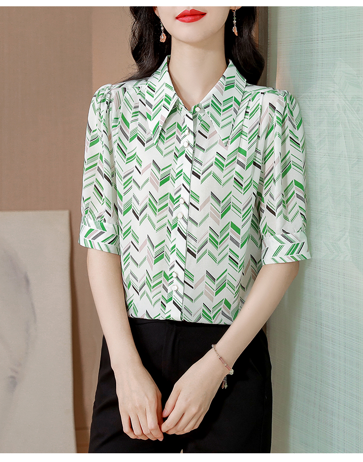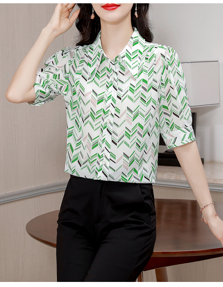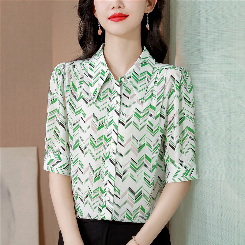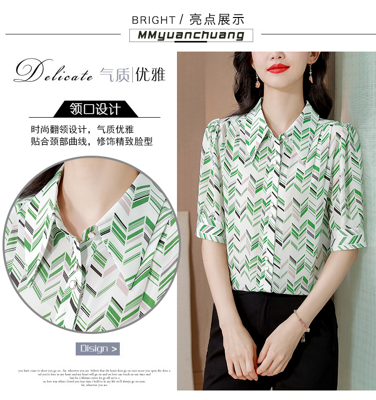MY14576# 真丝衬衫女士短袖上衣碎花色100%桑蚕丝衬衣夏季气质减龄显瘦女裝貨源服裝批發