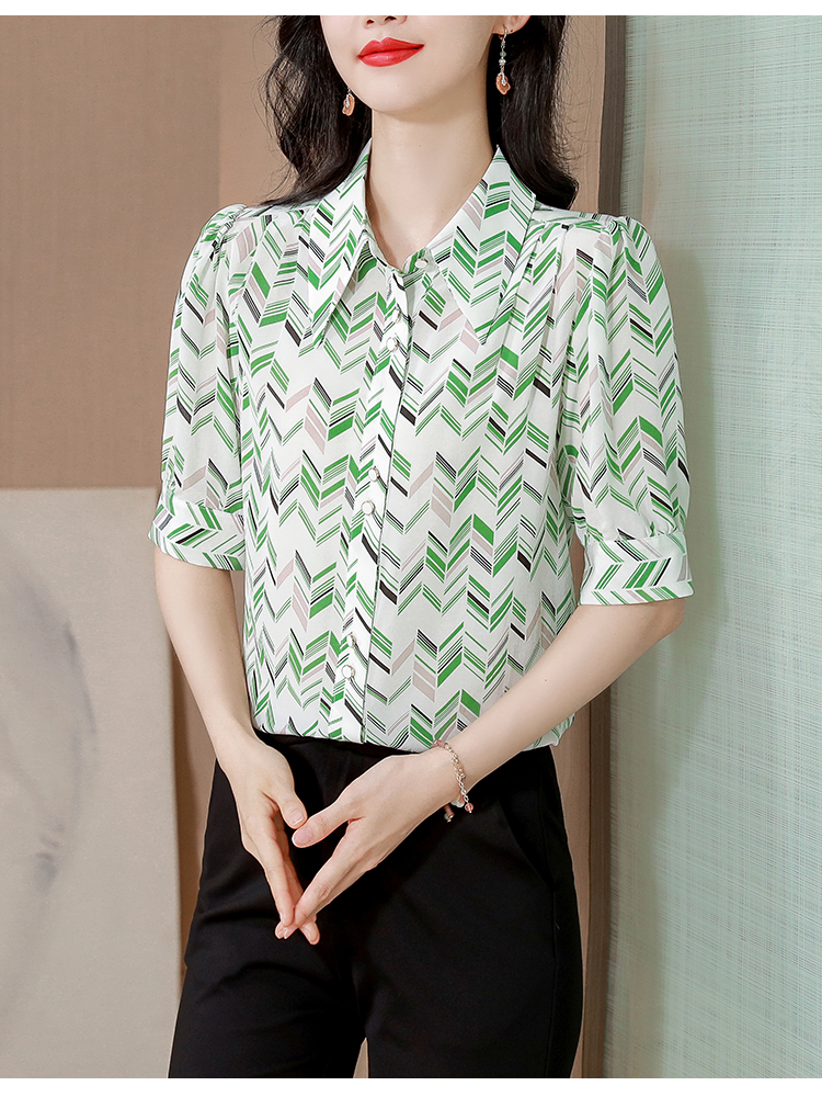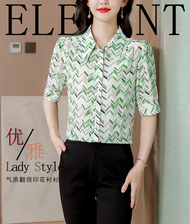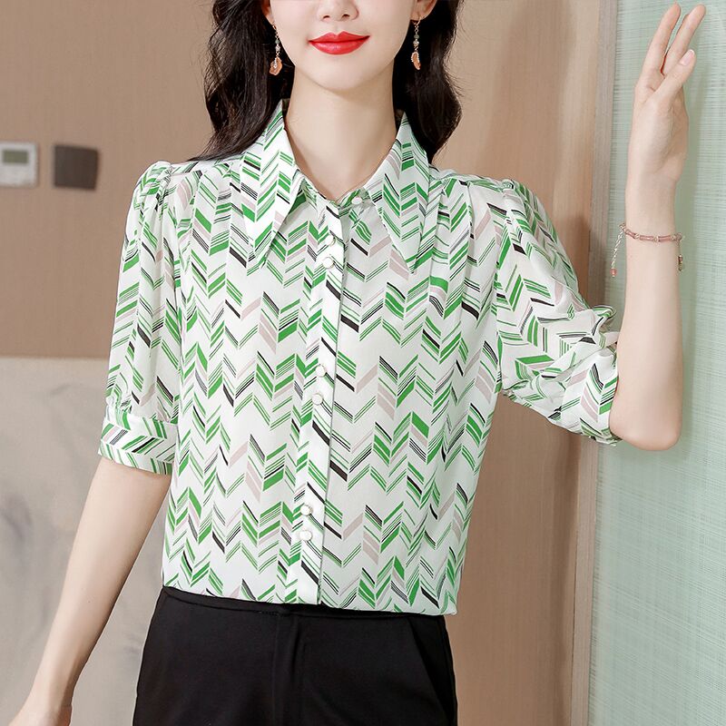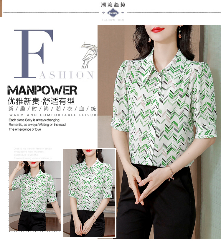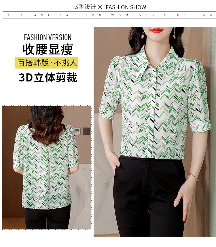 MY14576# 真丝衬衫女士短袖上衣碎花色100%桑蚕丝衬衣夏季气质减龄显瘦女裝貨源服裝批發