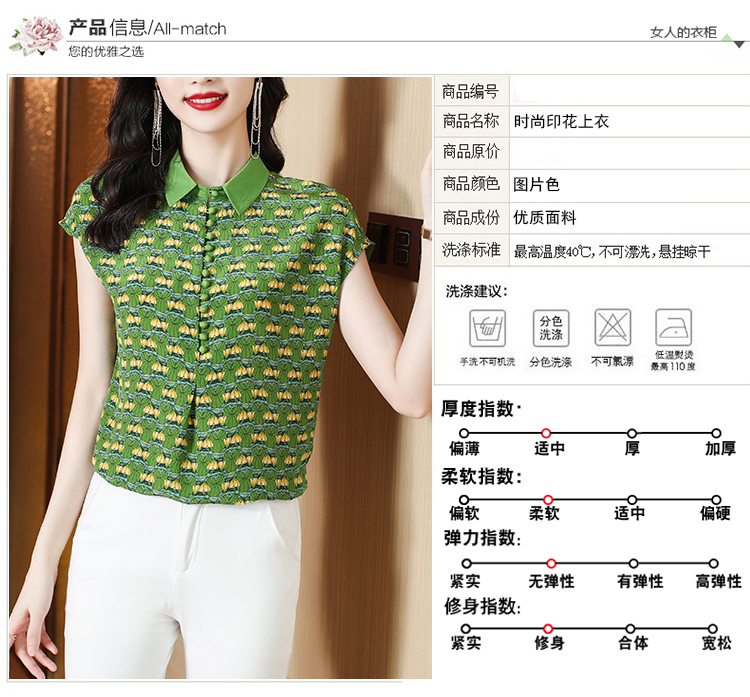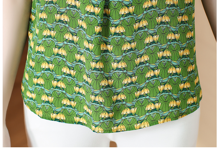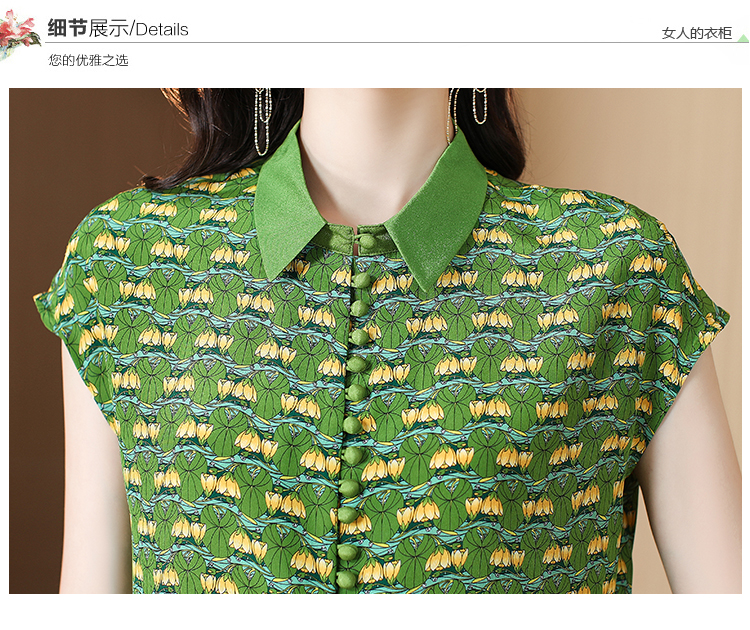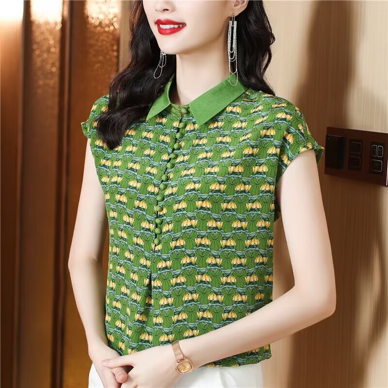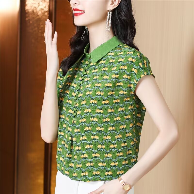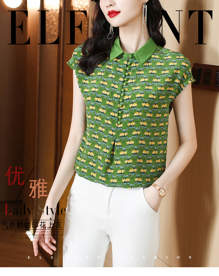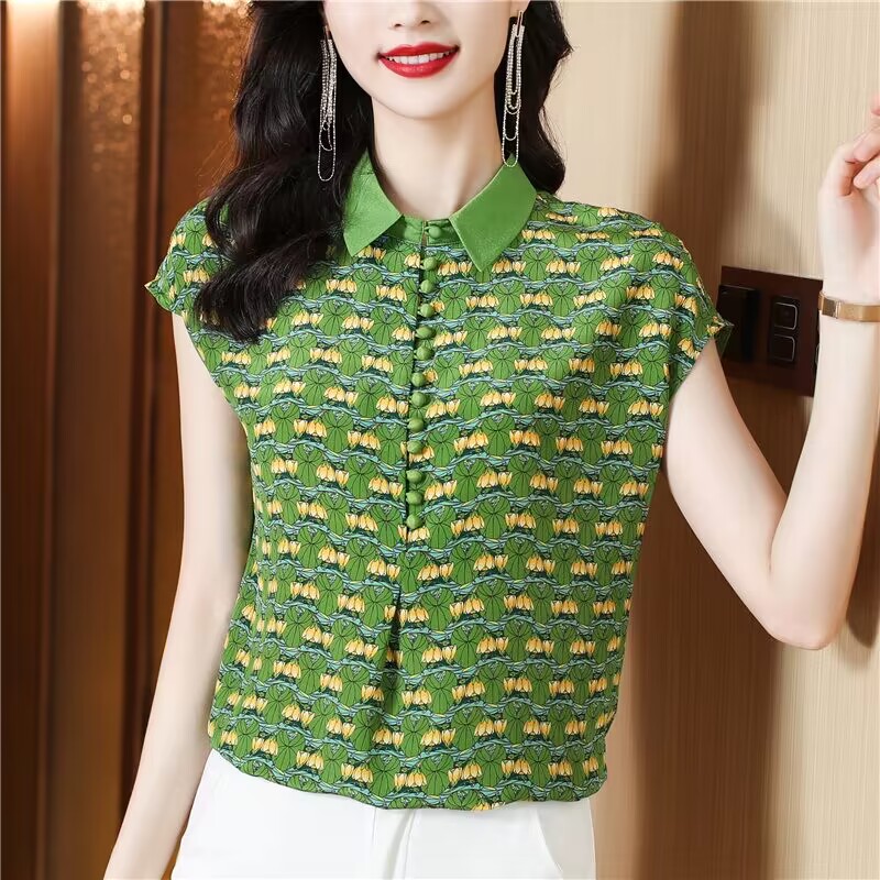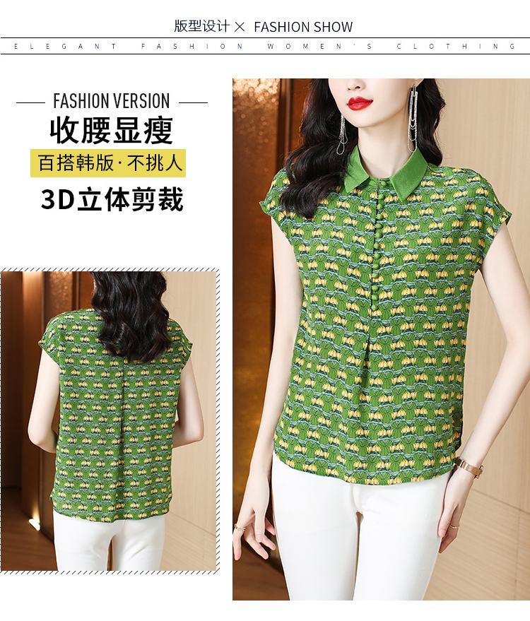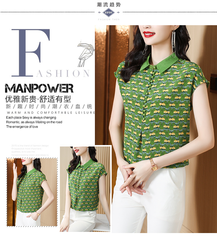 MY14581# 杭州桑蚕丝真丝衬衫女短袖印花夏季上衣时尚显瘦法式女裝貨源服裝批發