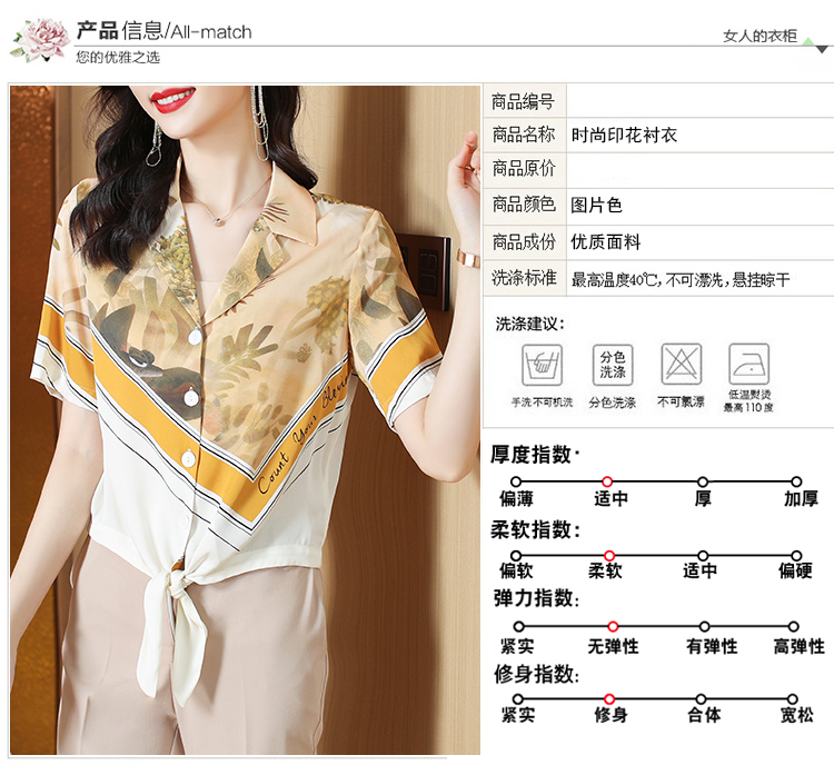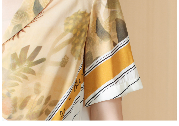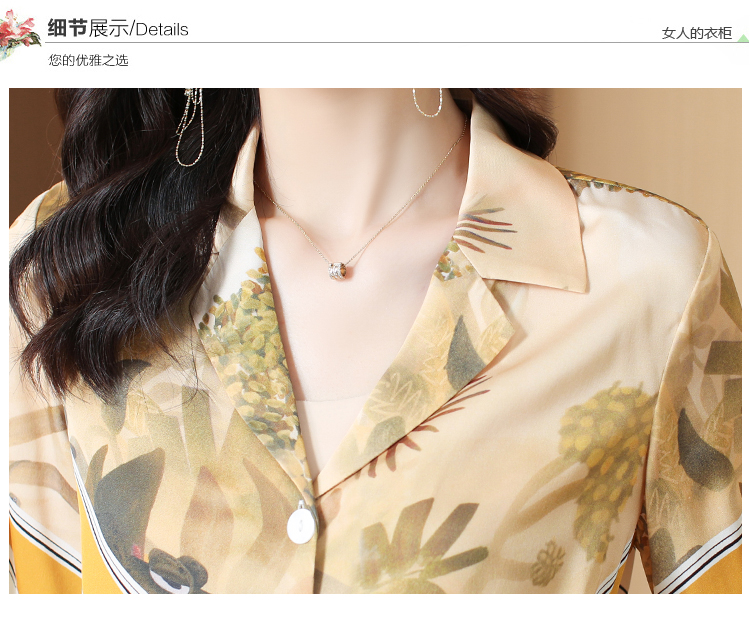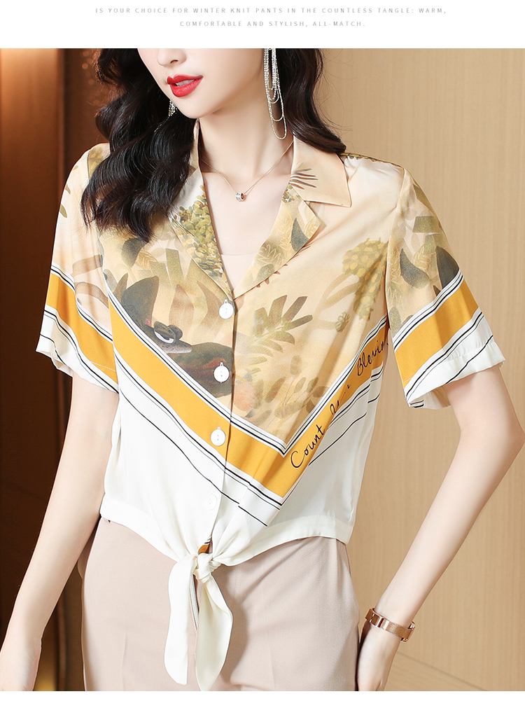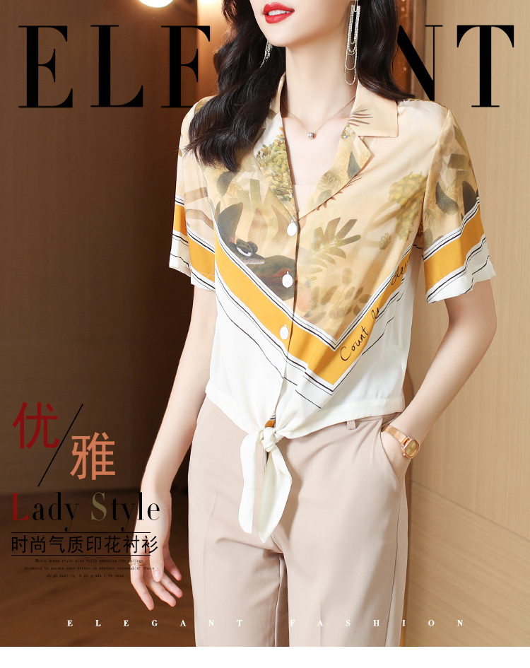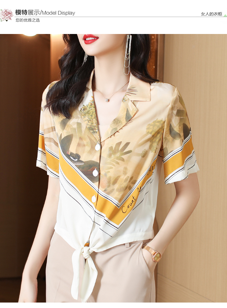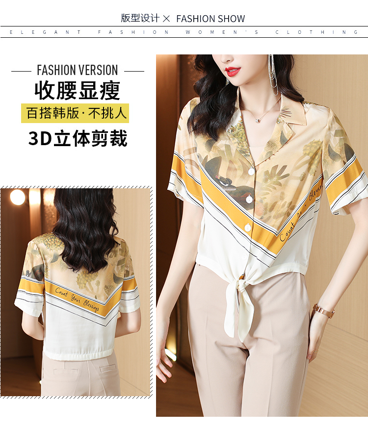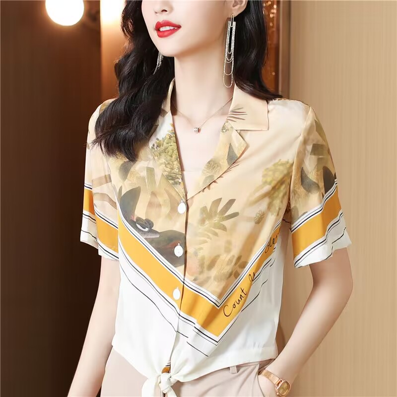 MY14582# 高端重磅真丝衬衫女士夏季新款短袖碎花复古衬衣显瘦别致上衣女裝貨源服裝批發