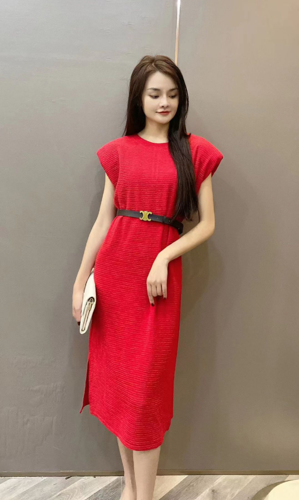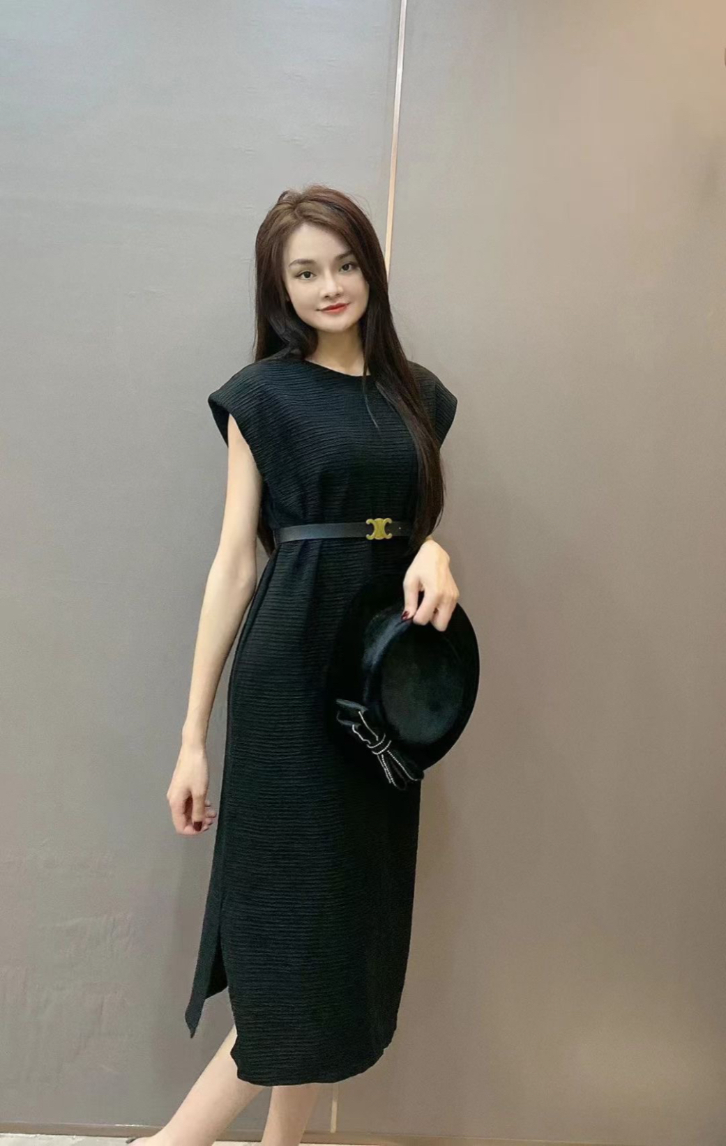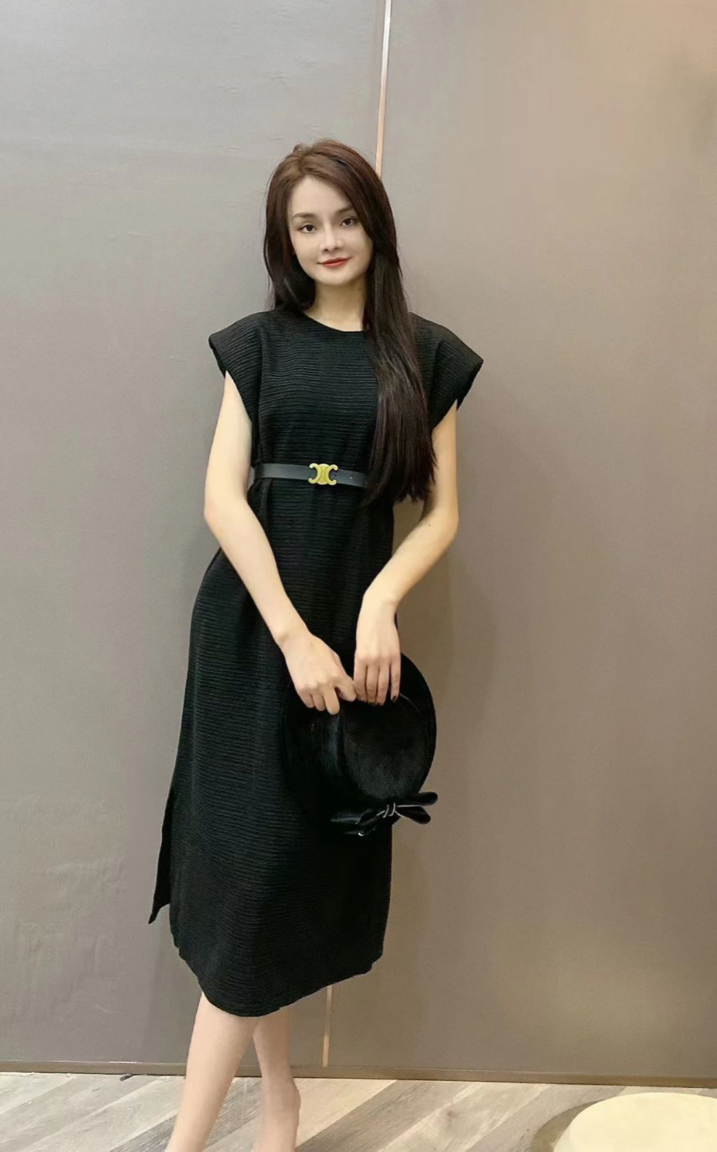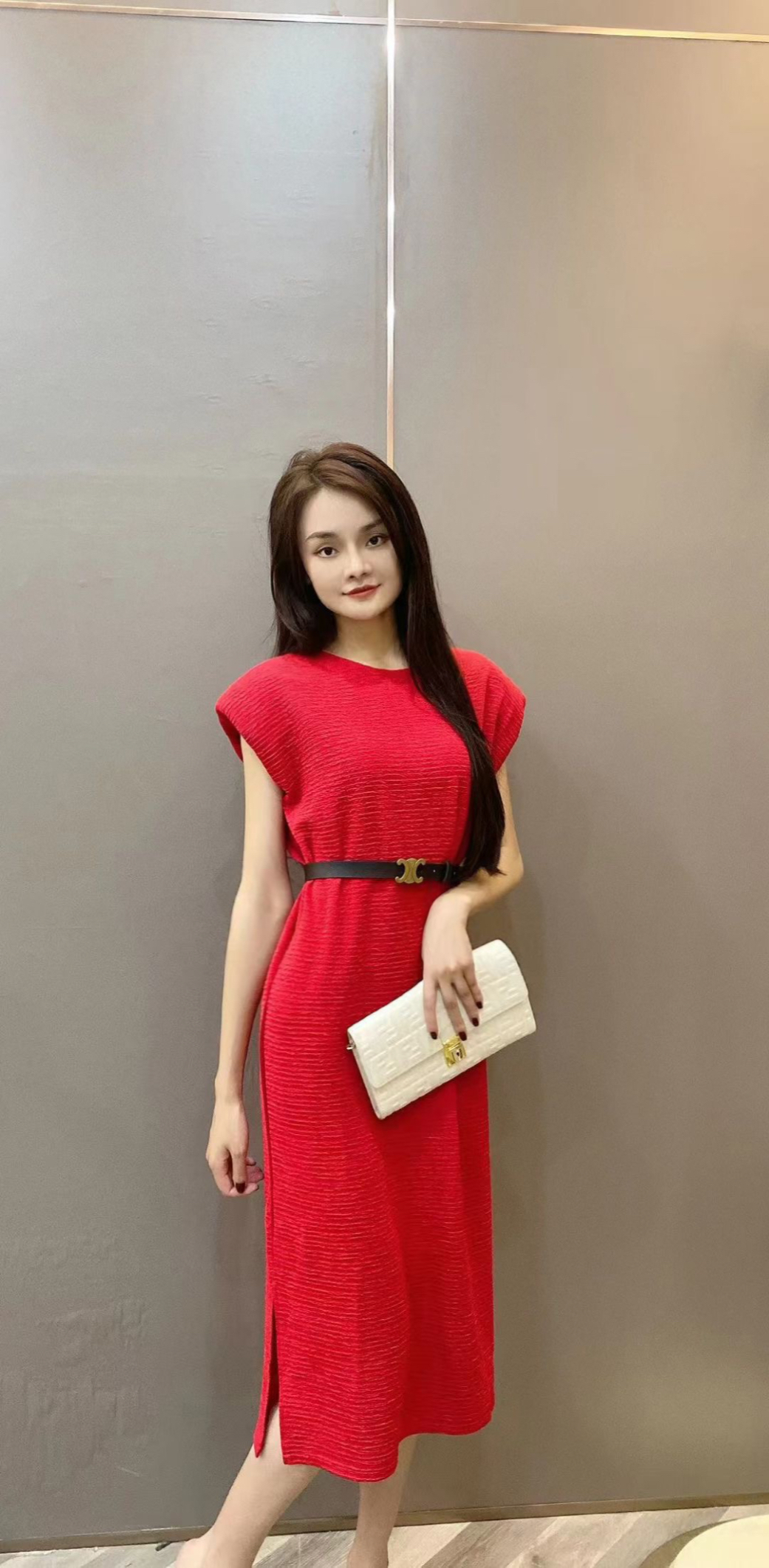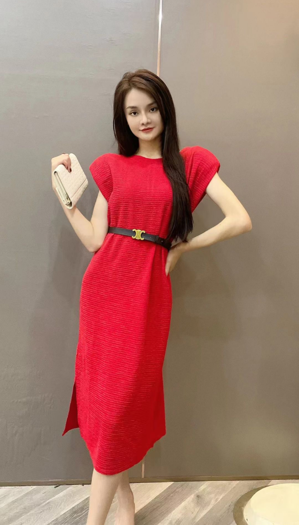 RM4911#连衣裙夏季2023新款女装修身收腰气质纯欲风短袖圆领T恤裙子