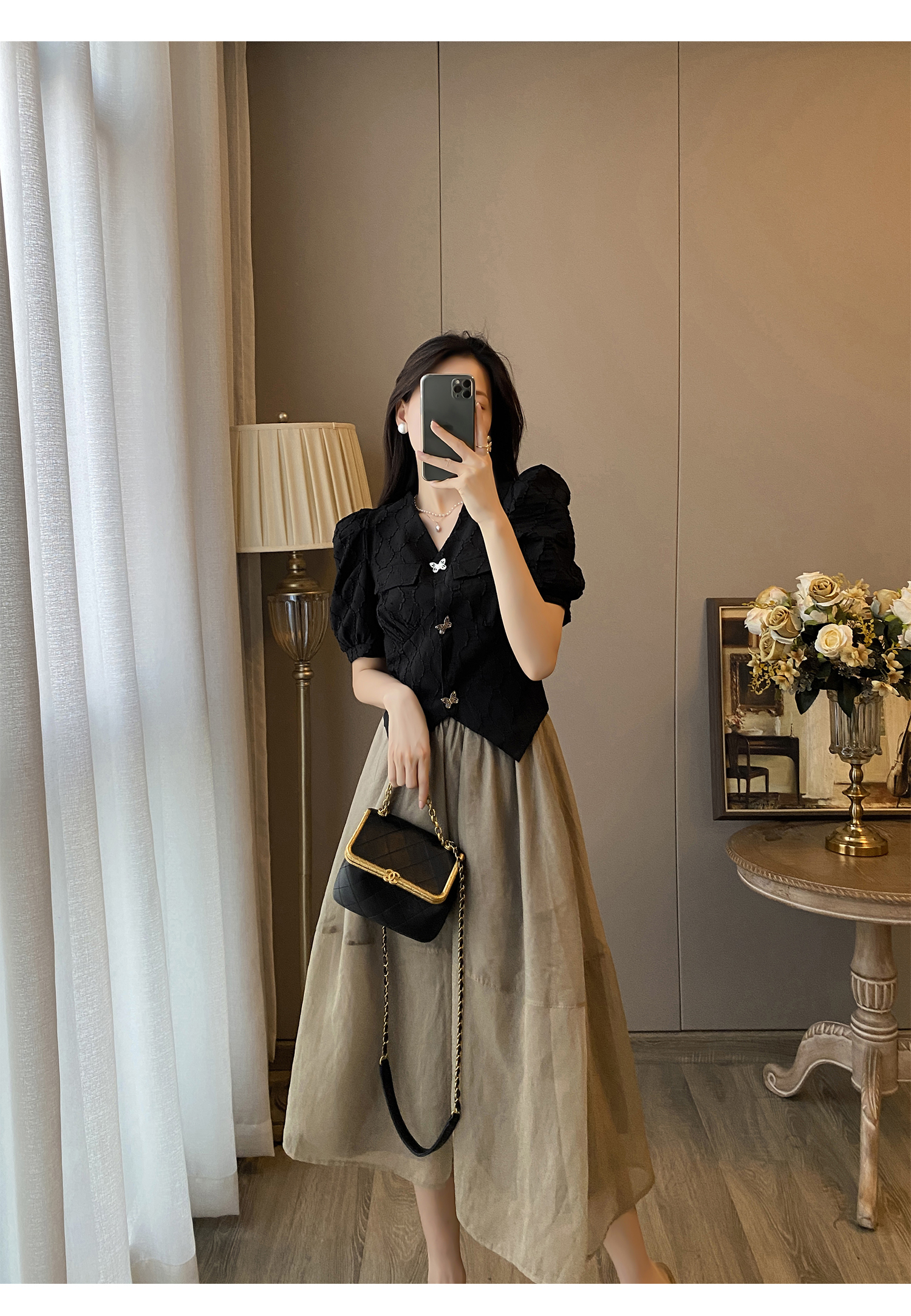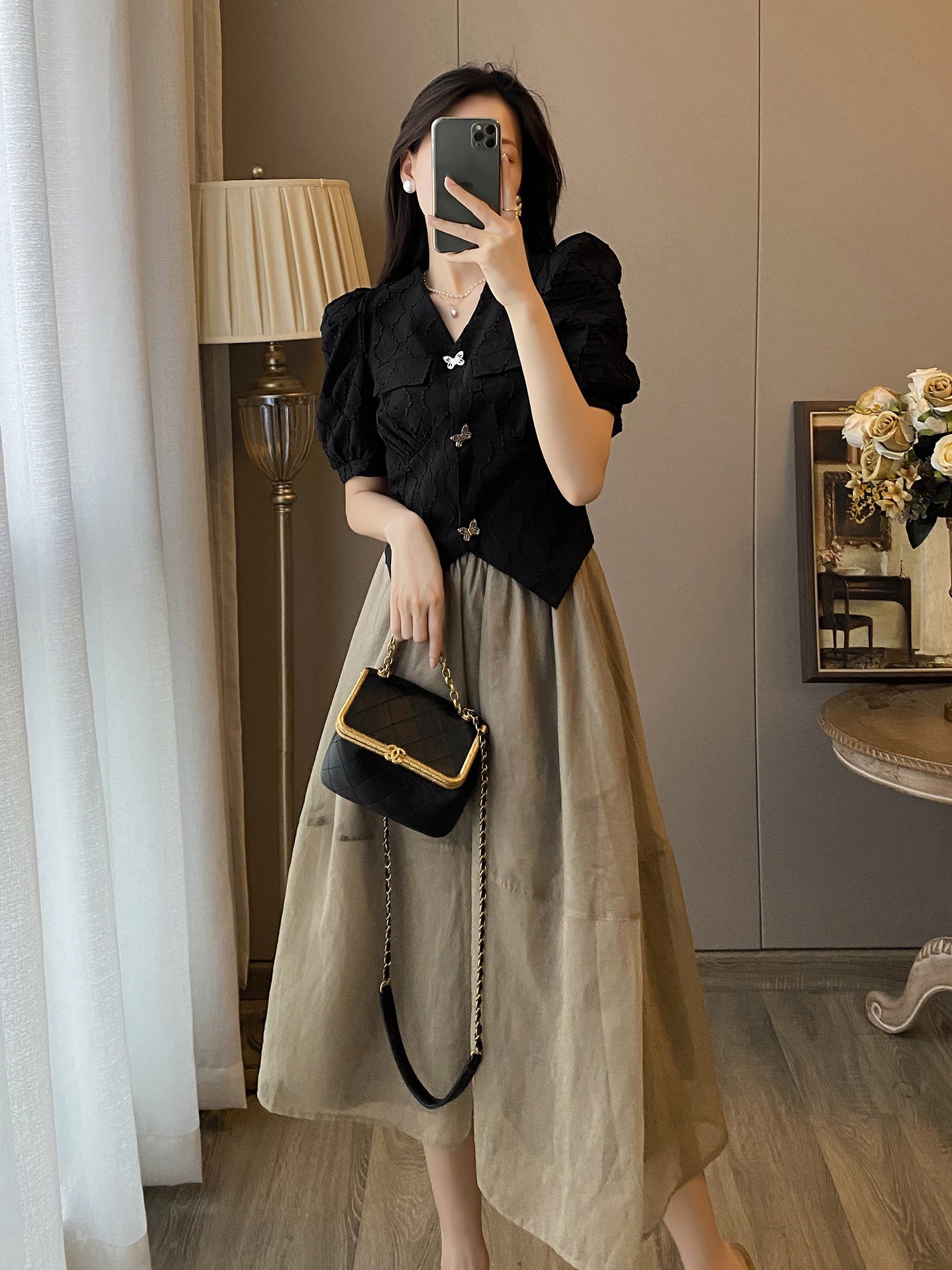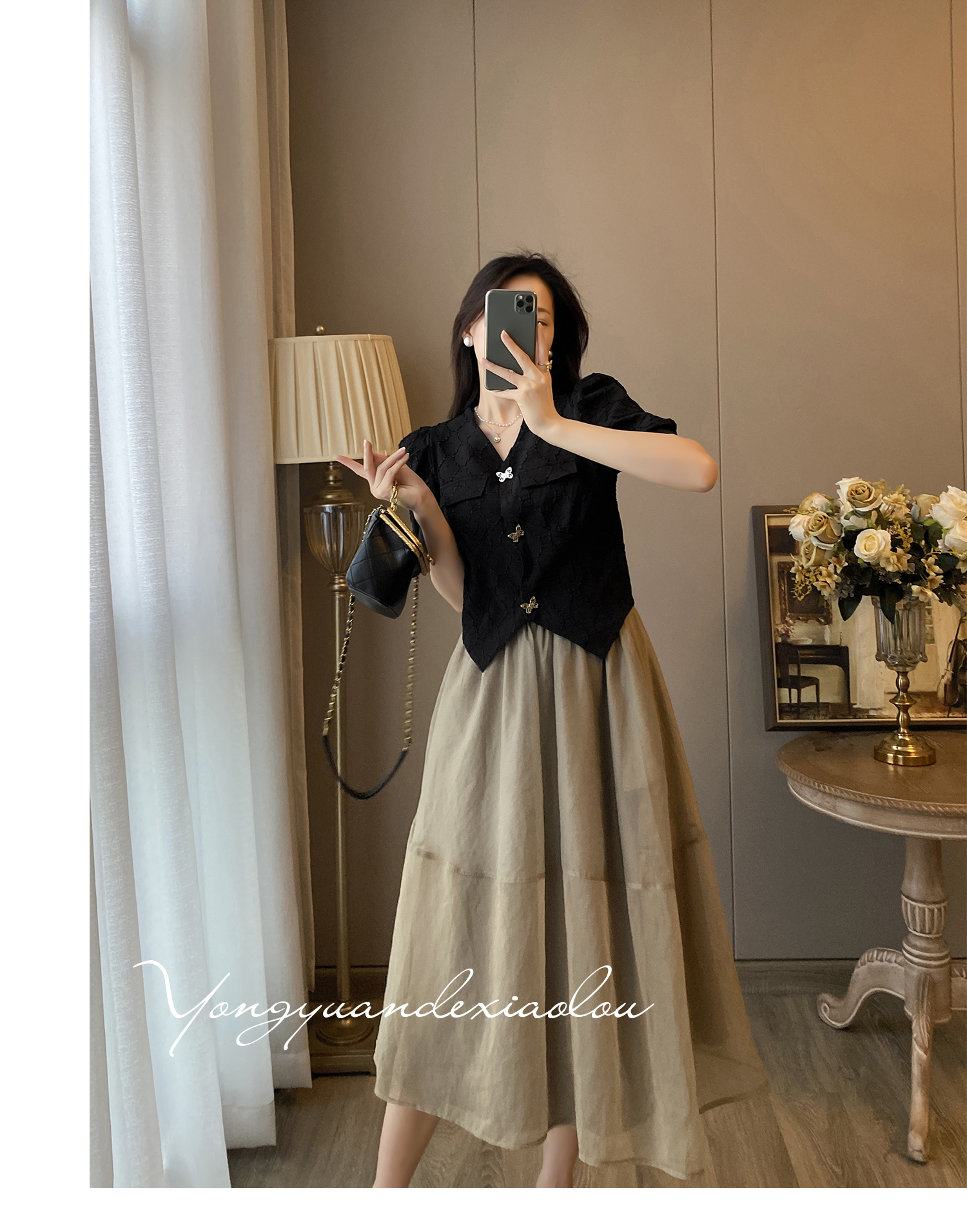 黑色上衣+半身裙