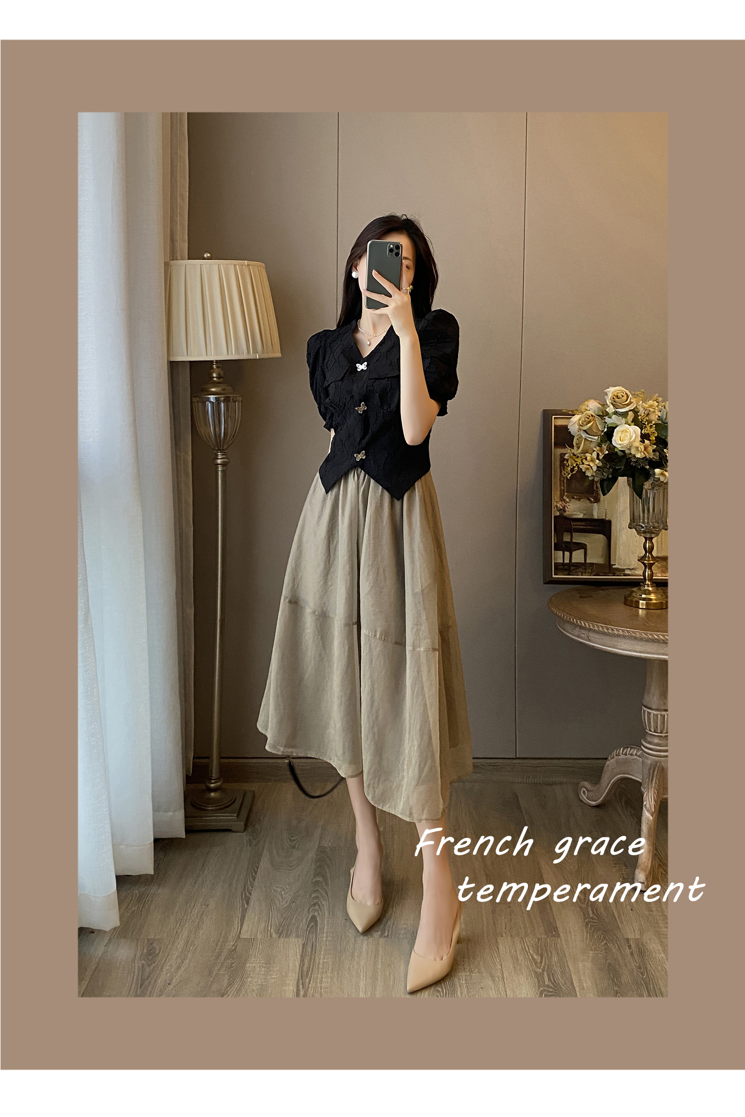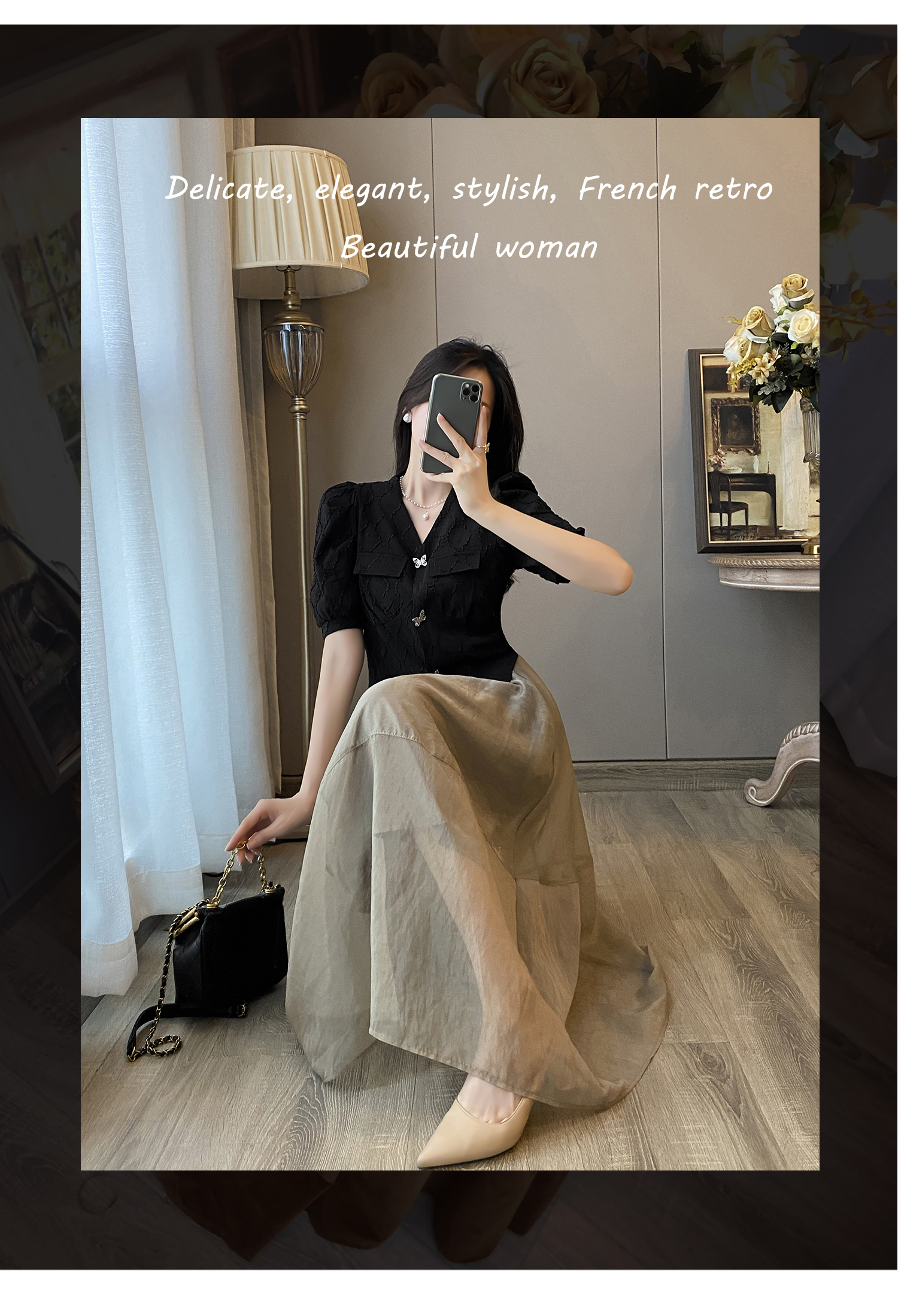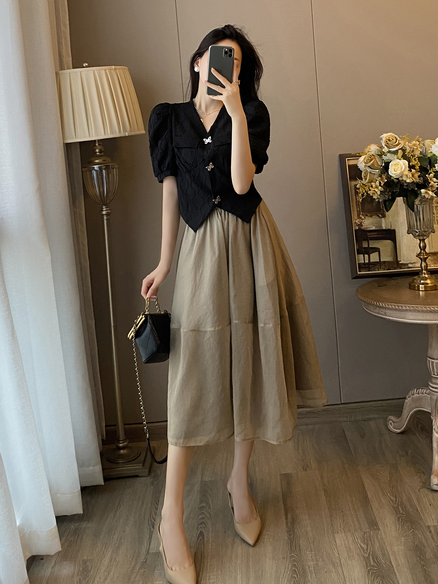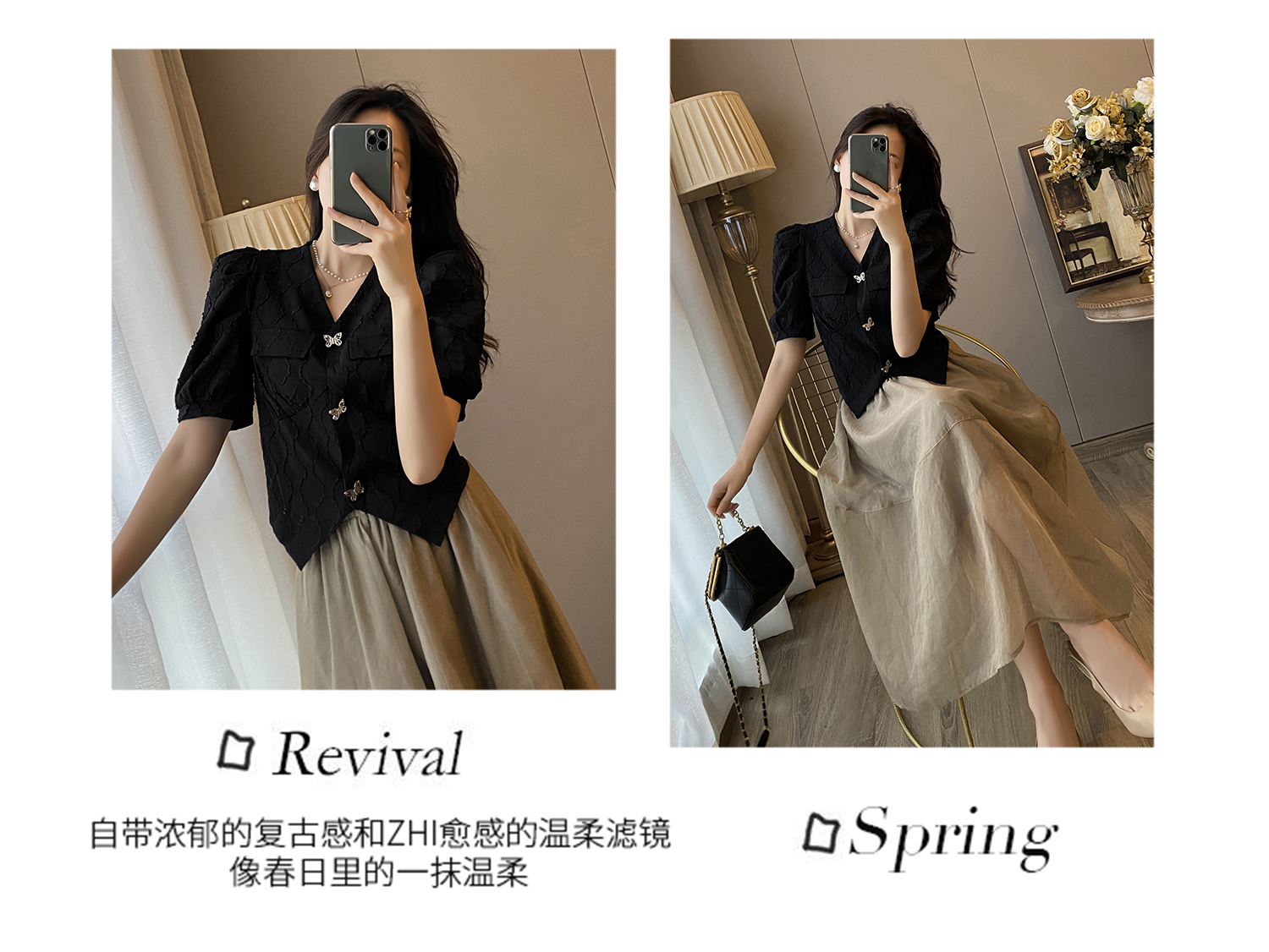 黑色上衣+半身裙