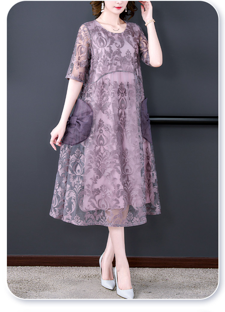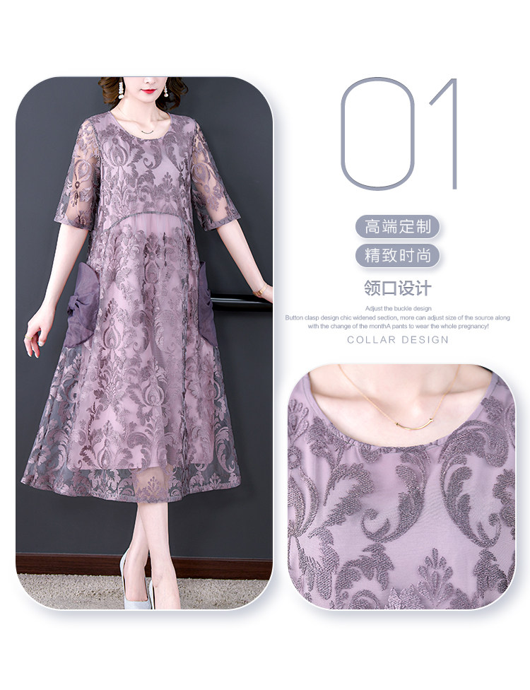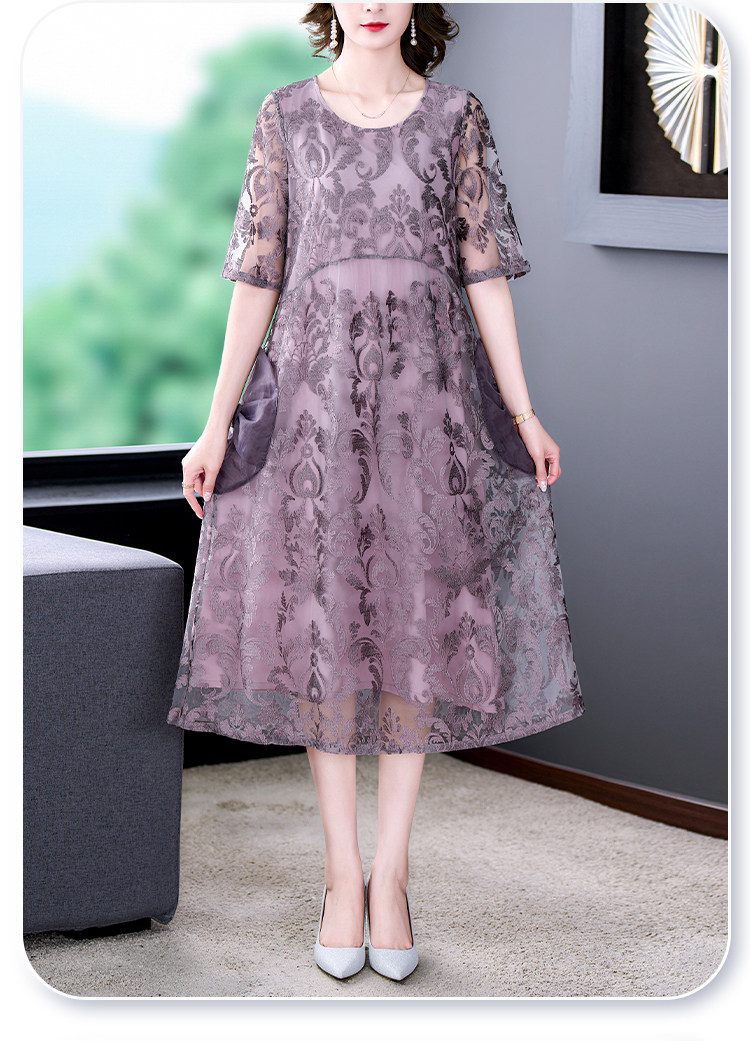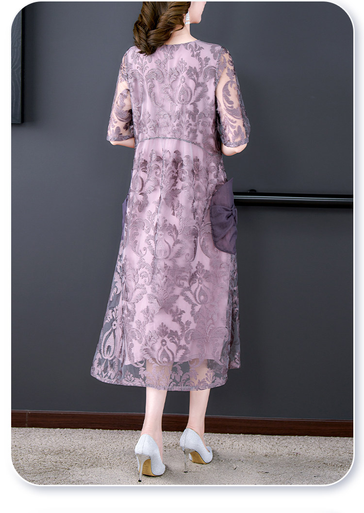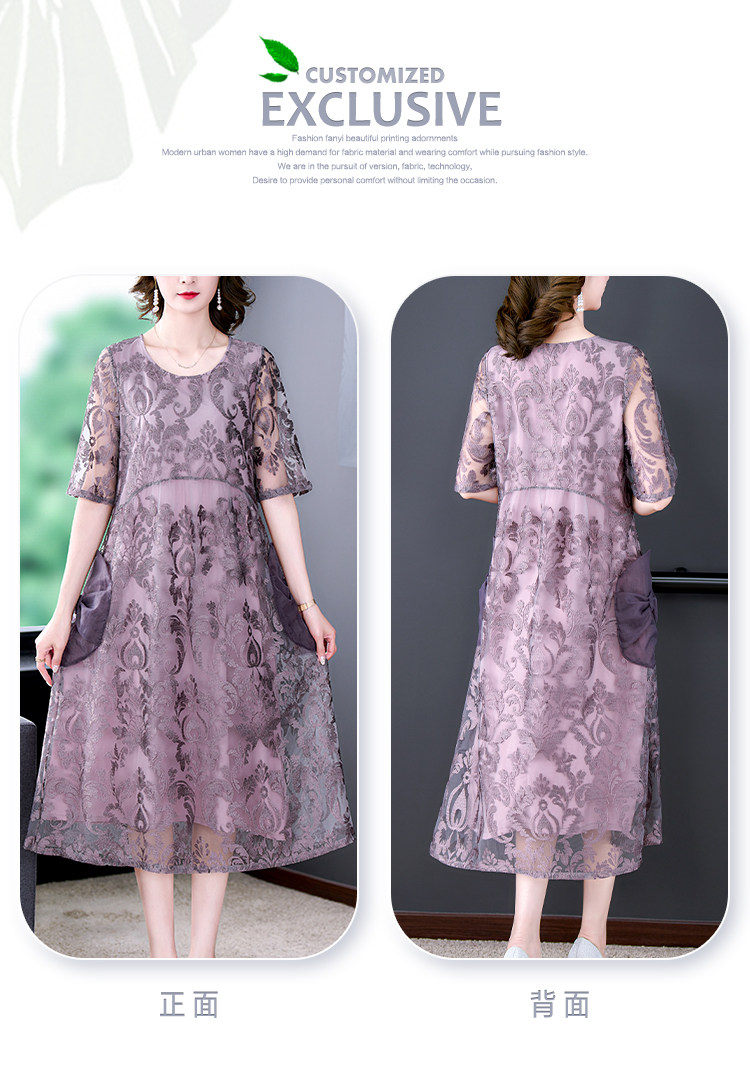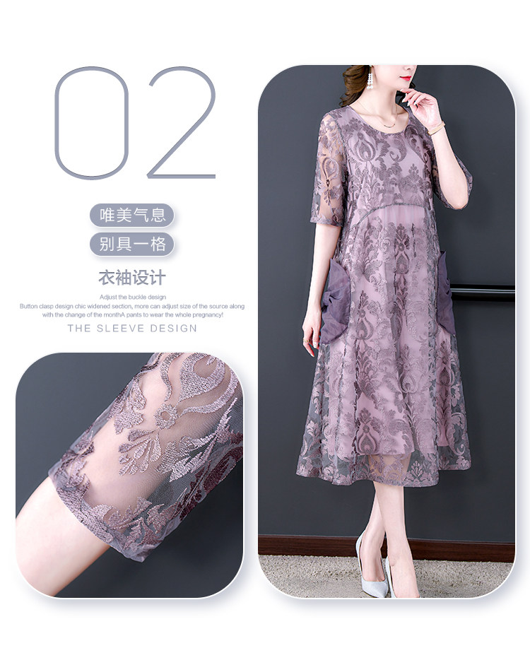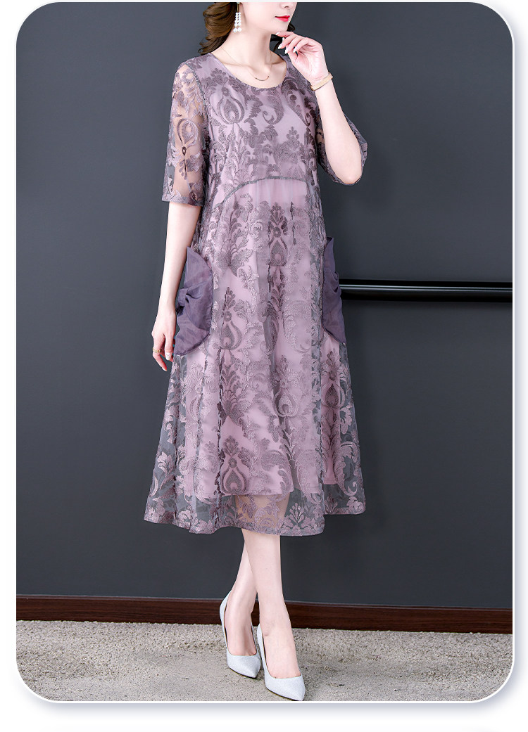 RM4945#重工刺绣连衣裙夏季新款设计感大口袋复古气质绣花过膝奢华长裙