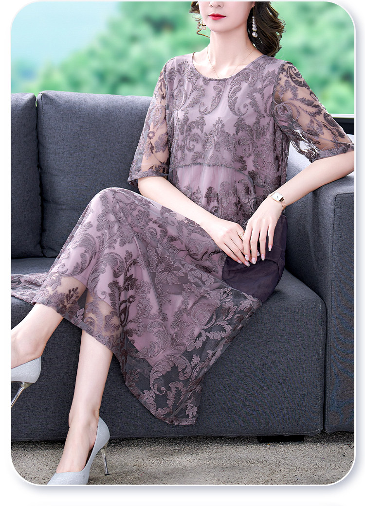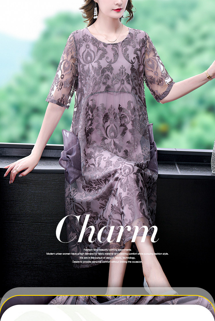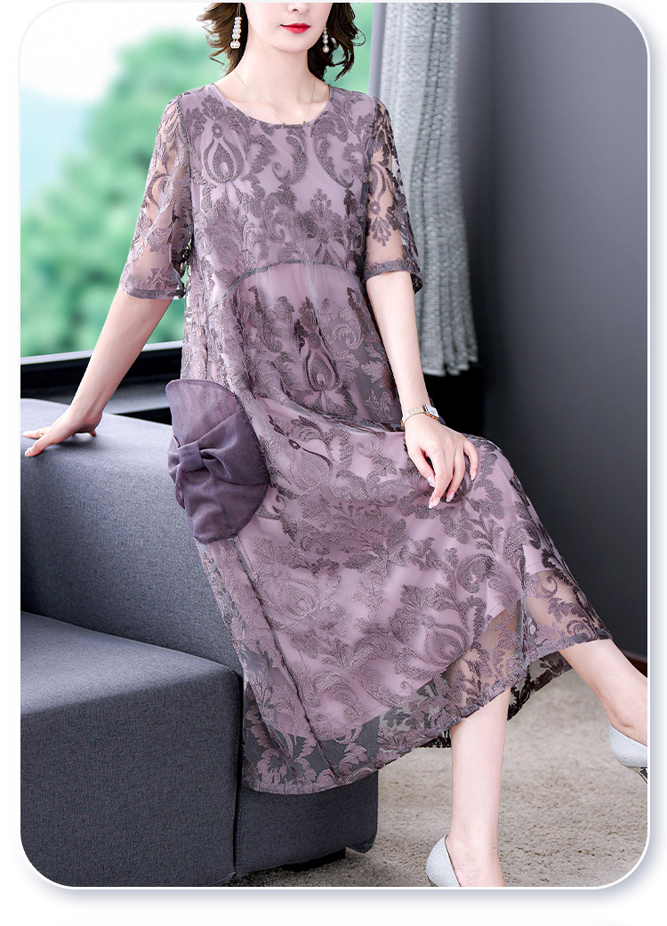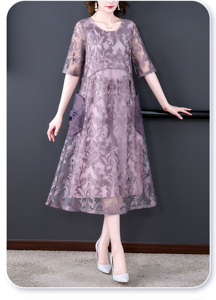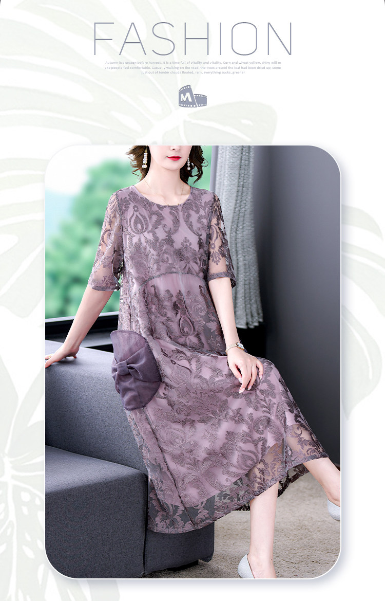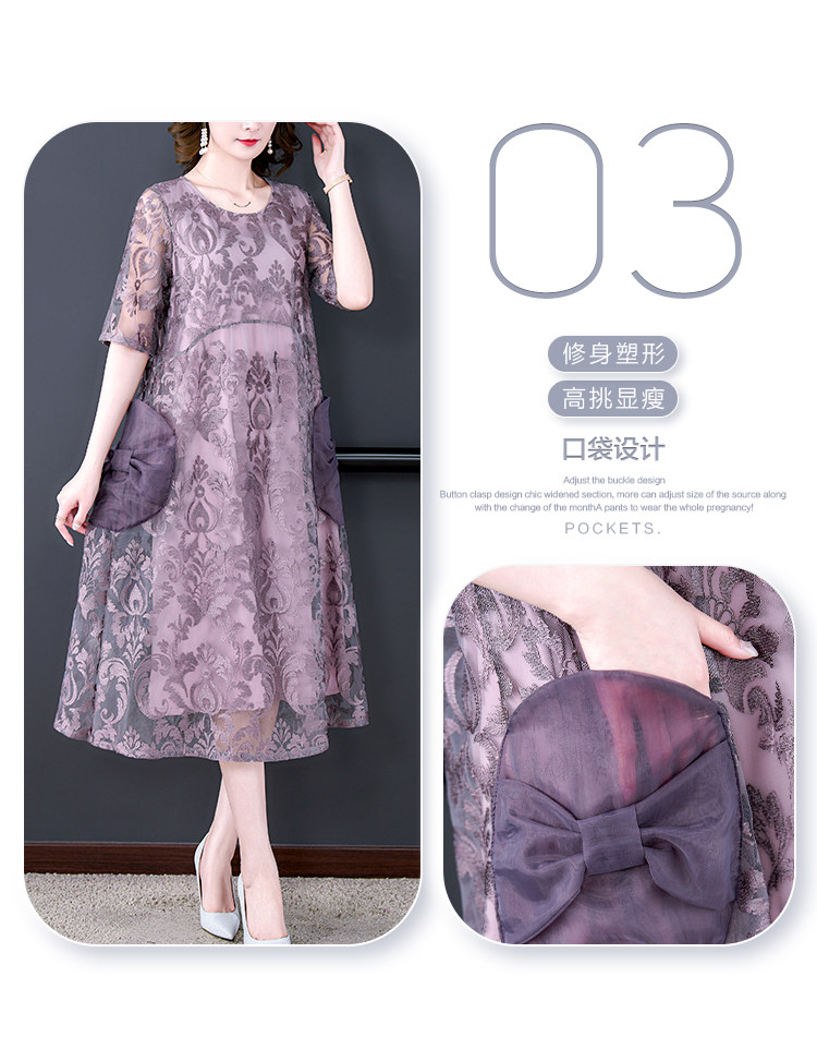 RM4945#重工刺绣连衣裙夏季新款设计感大口袋复古气质绣花过膝奢华长裙