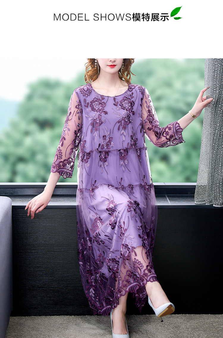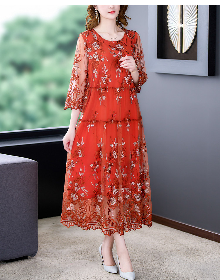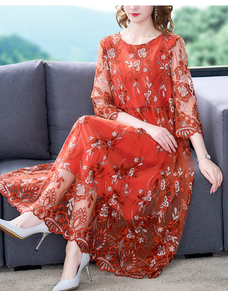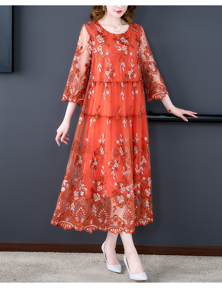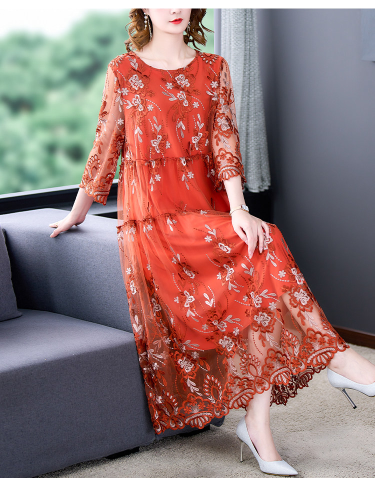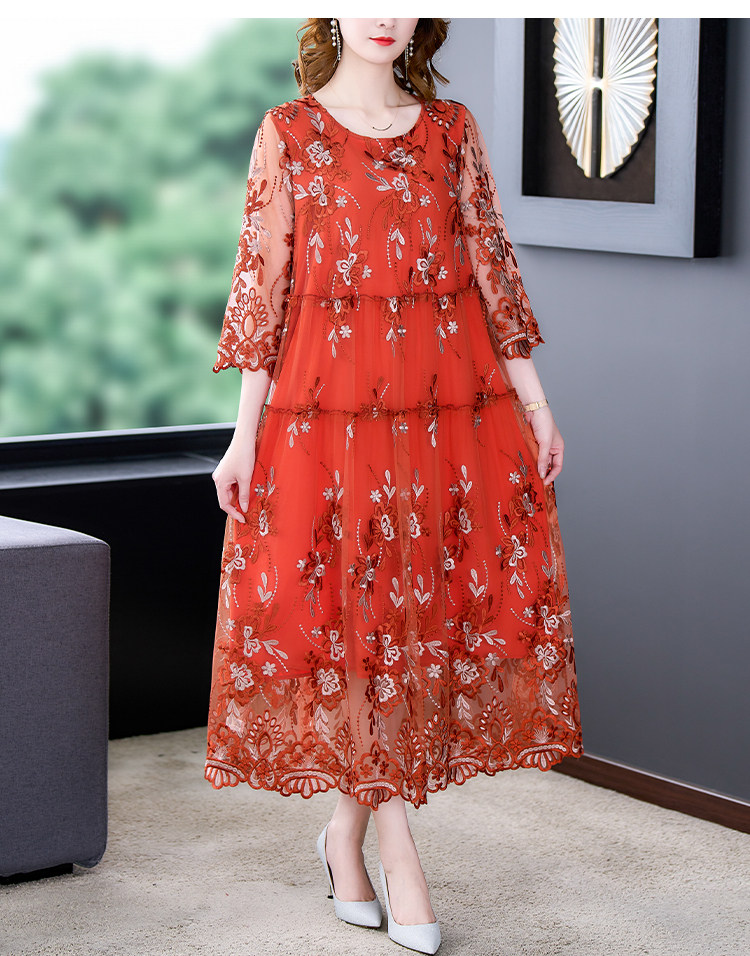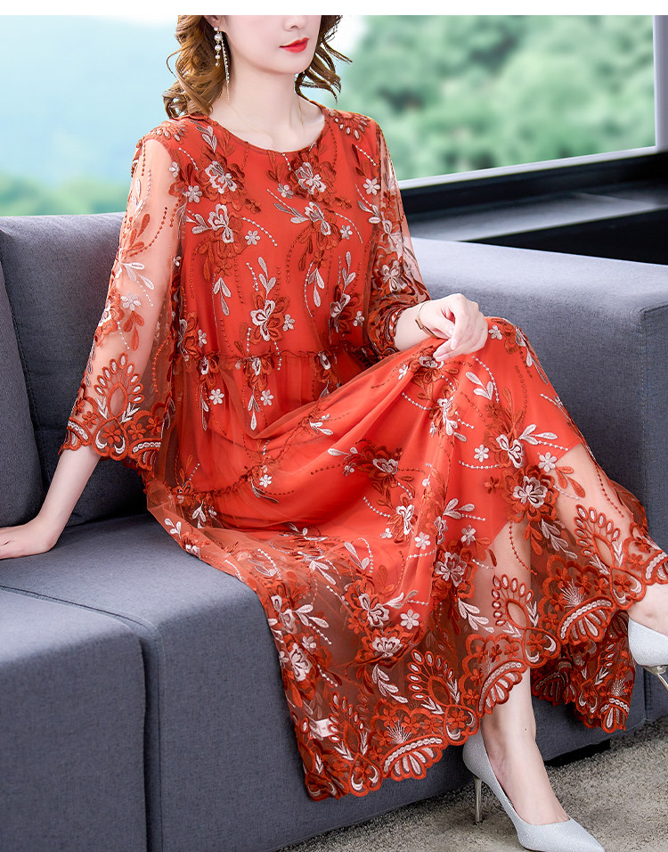 RM4948#重工网纱刺绣连衣裙女夏2022新款大码女装高端真丝桑蚕丝显瘦裙子