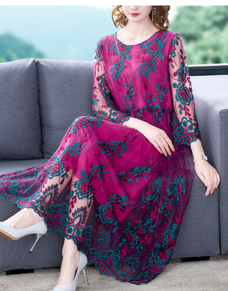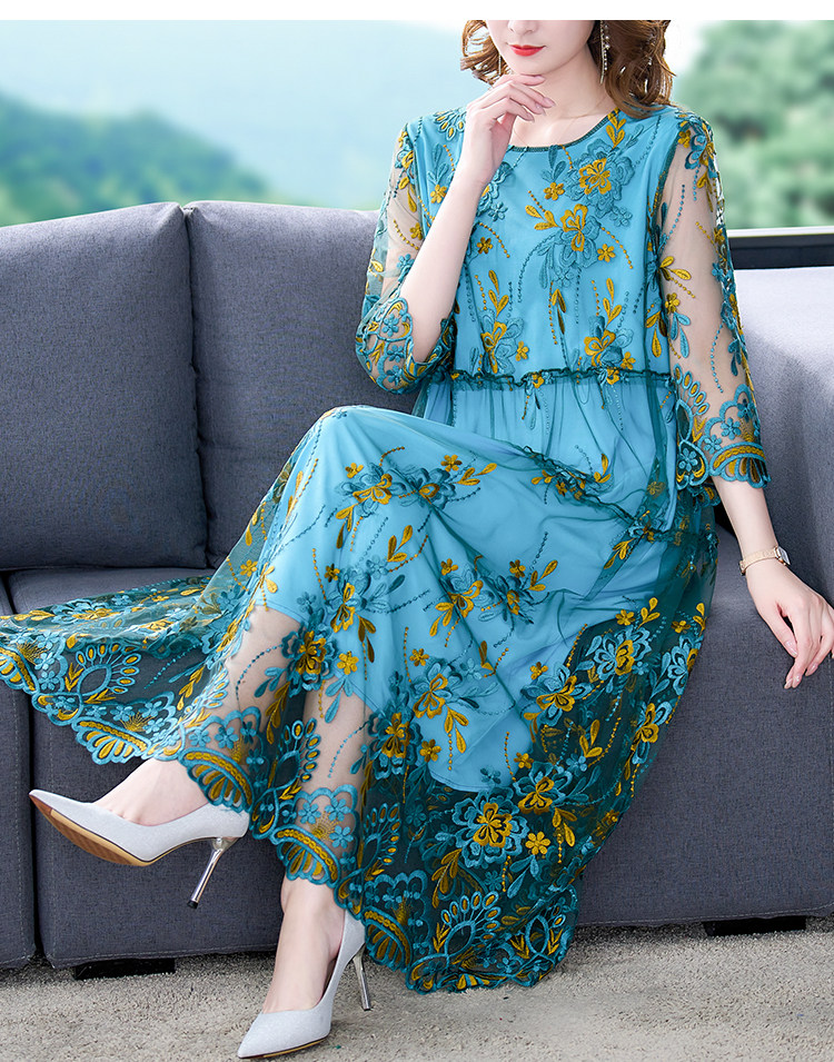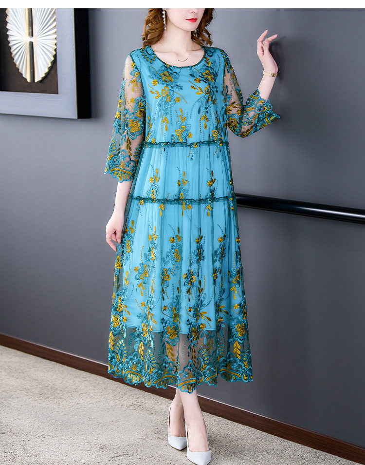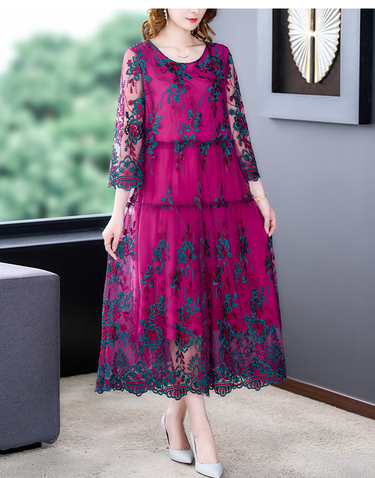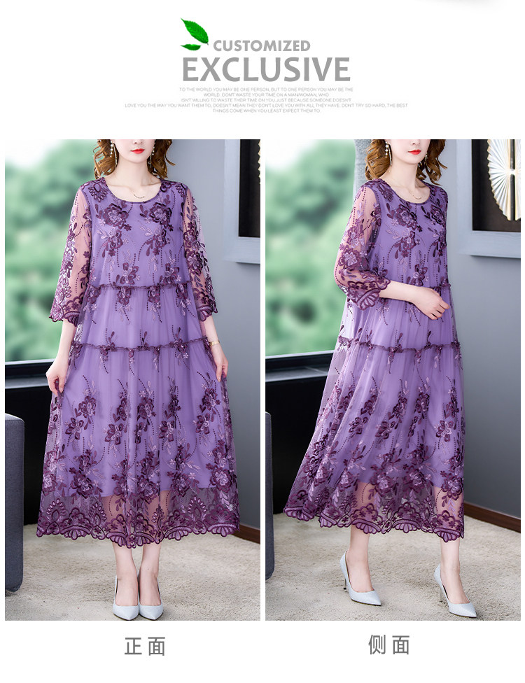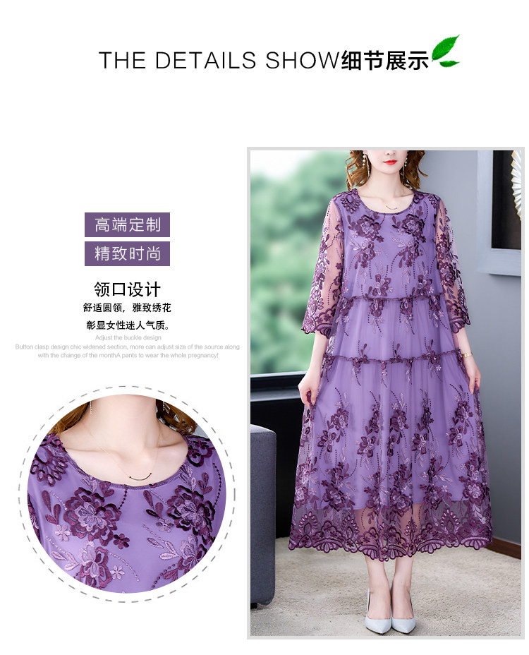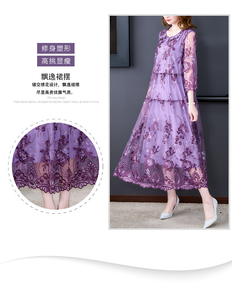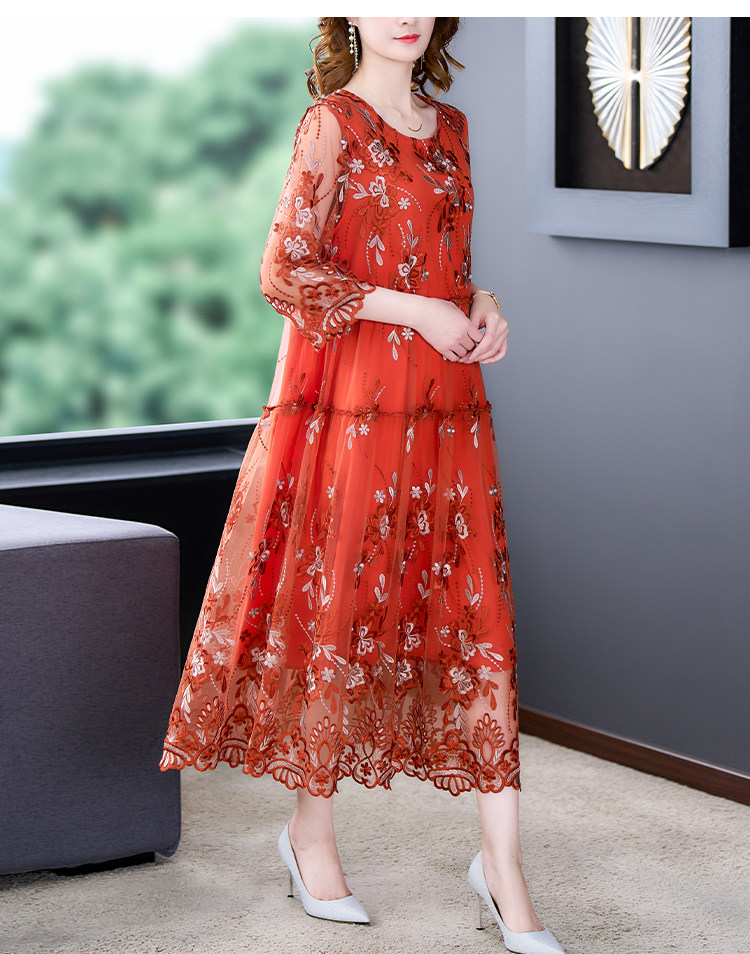 RM4948#重工网纱刺绣连衣裙女夏2022新款大码女装高端真丝桑蚕丝显瘦裙子