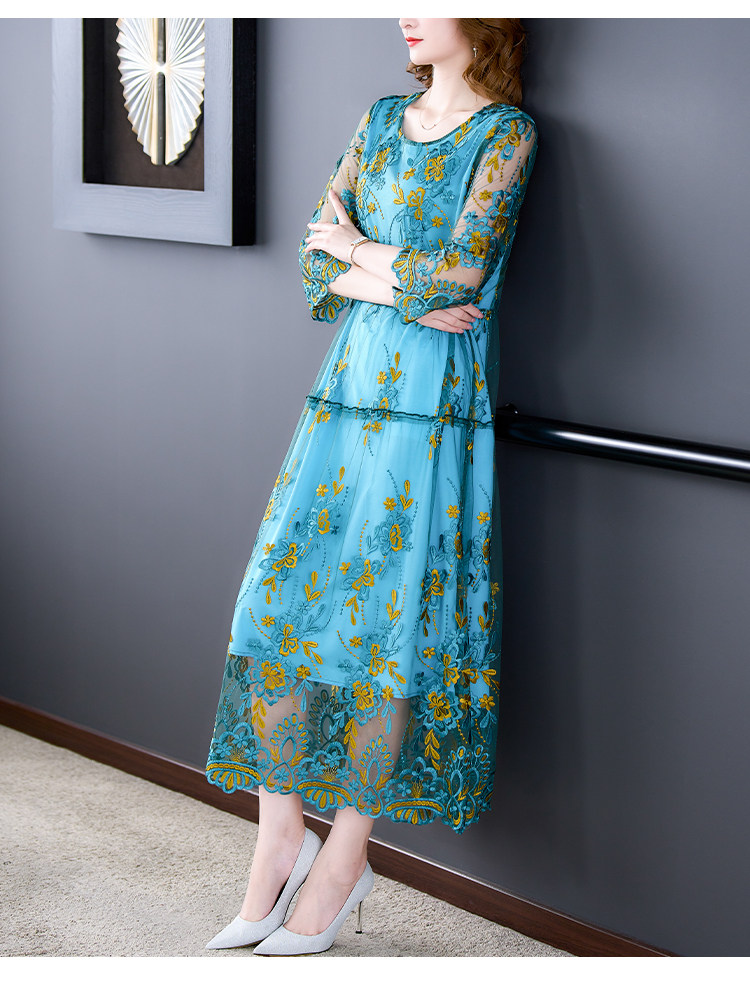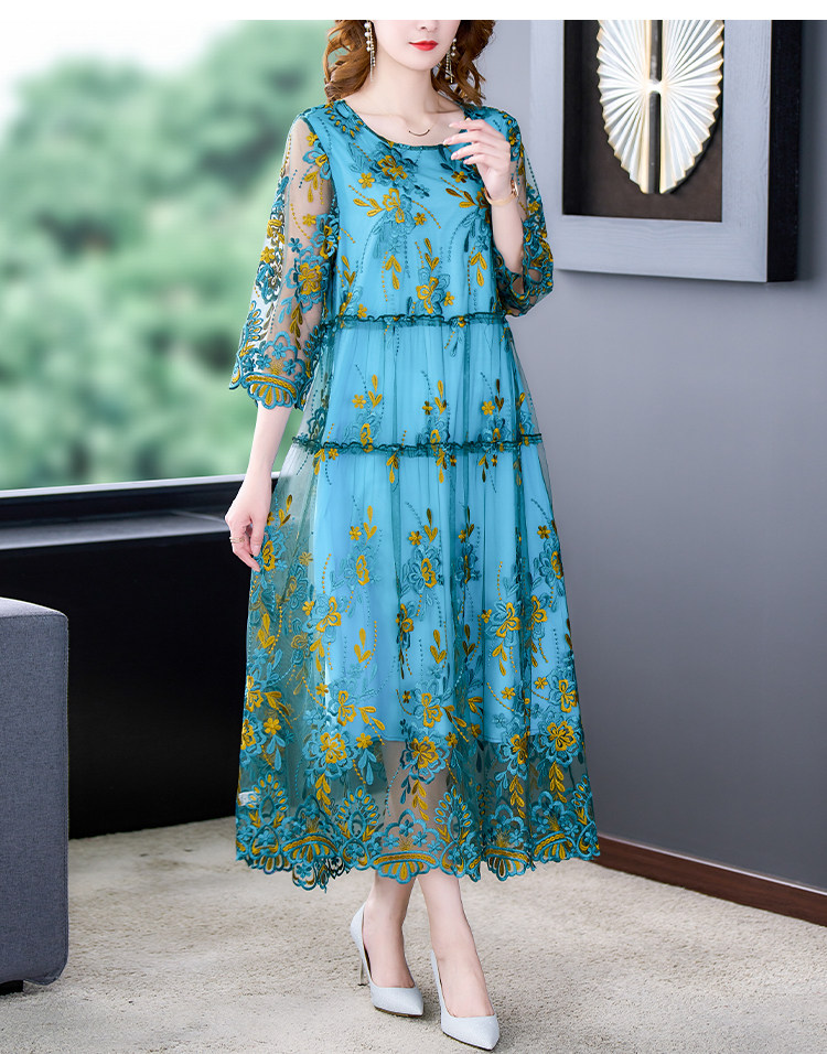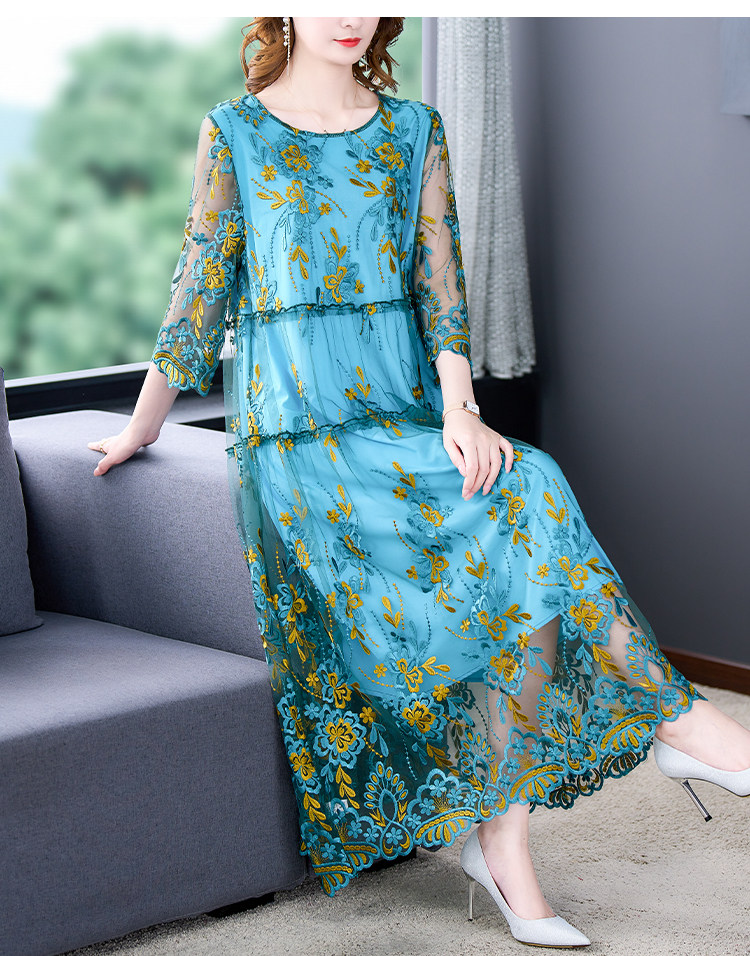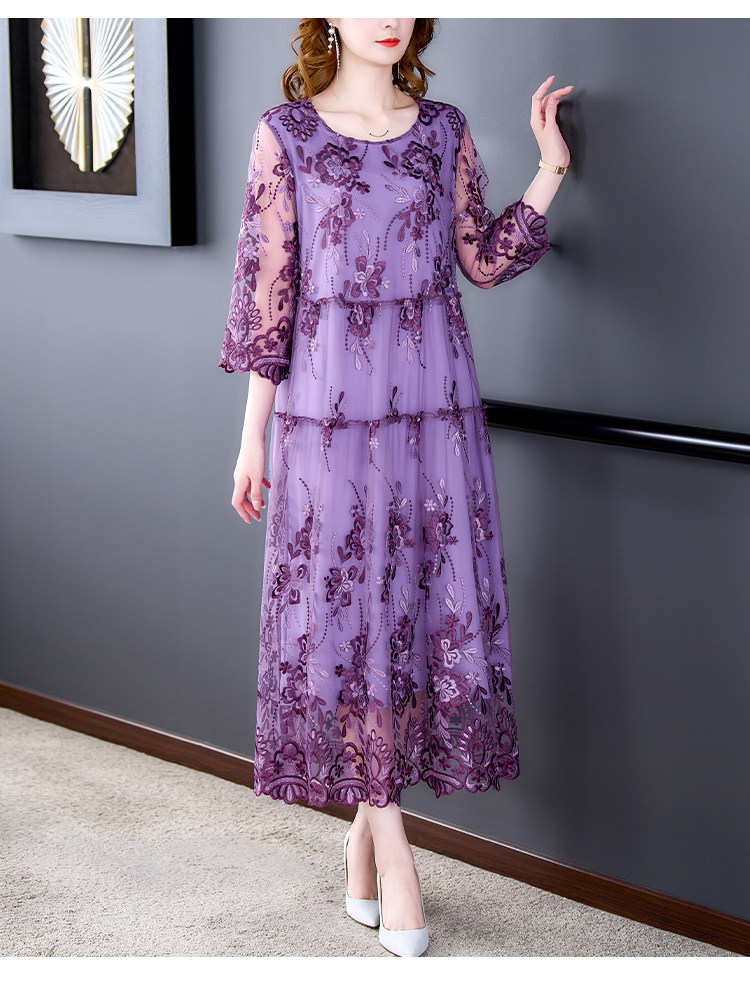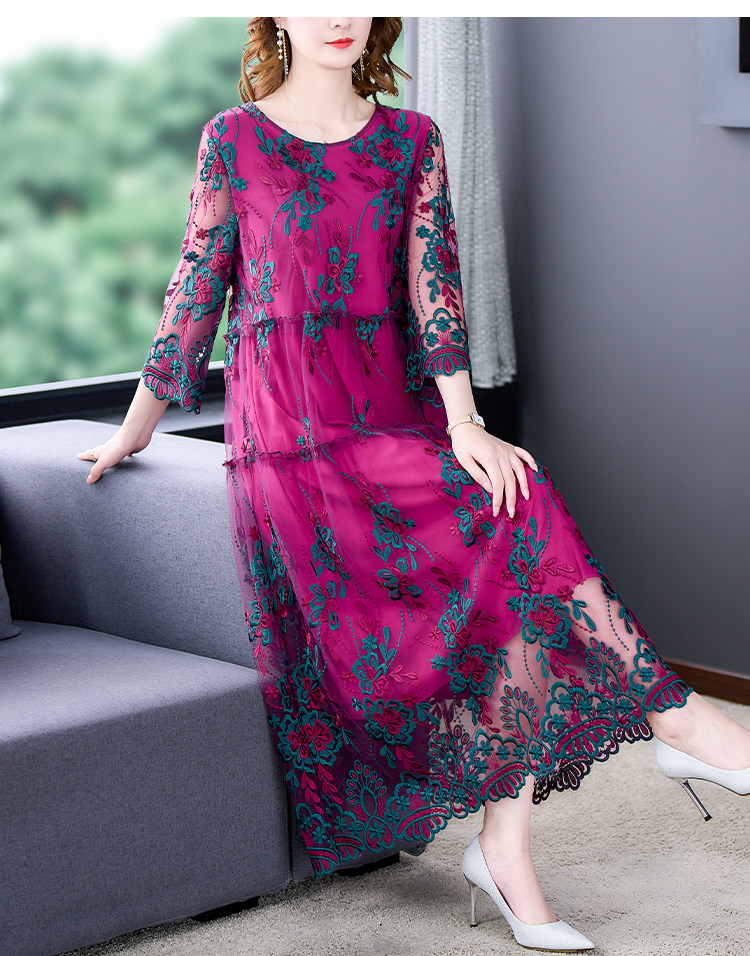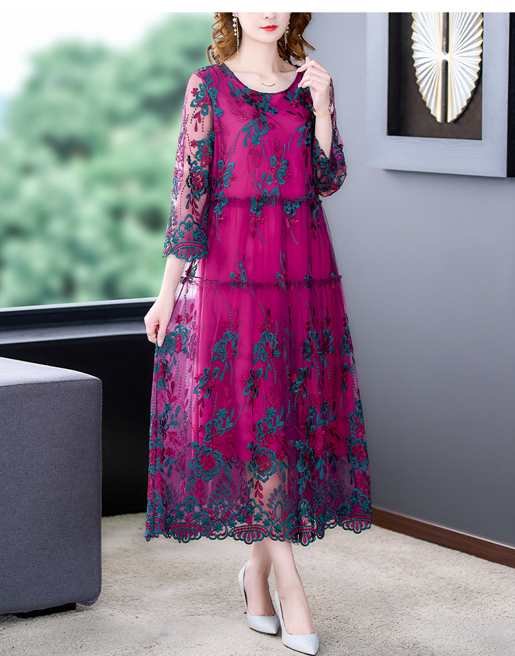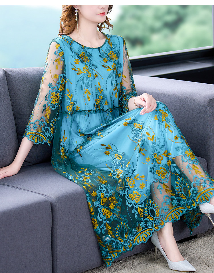 RM4948#重工网纱刺绣连衣裙女夏2022新款大码女装高端真丝桑蚕丝显瘦裙子