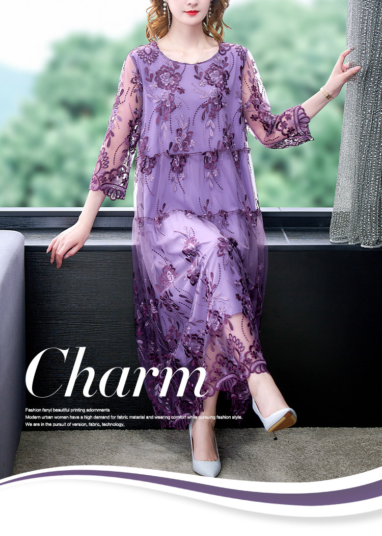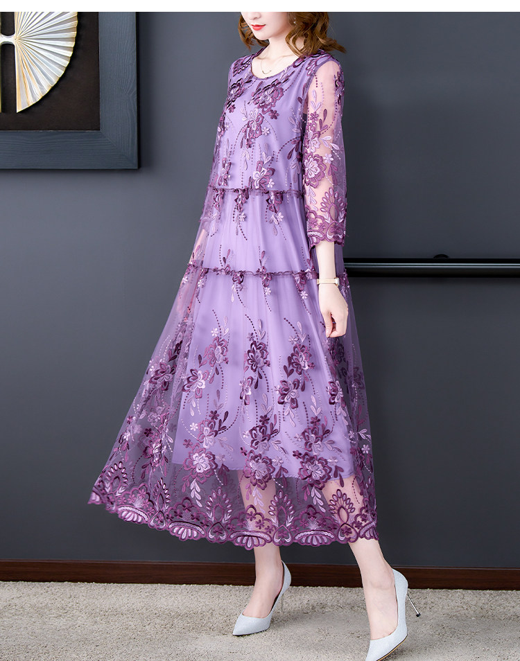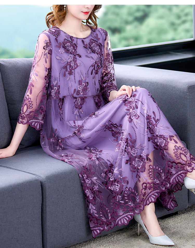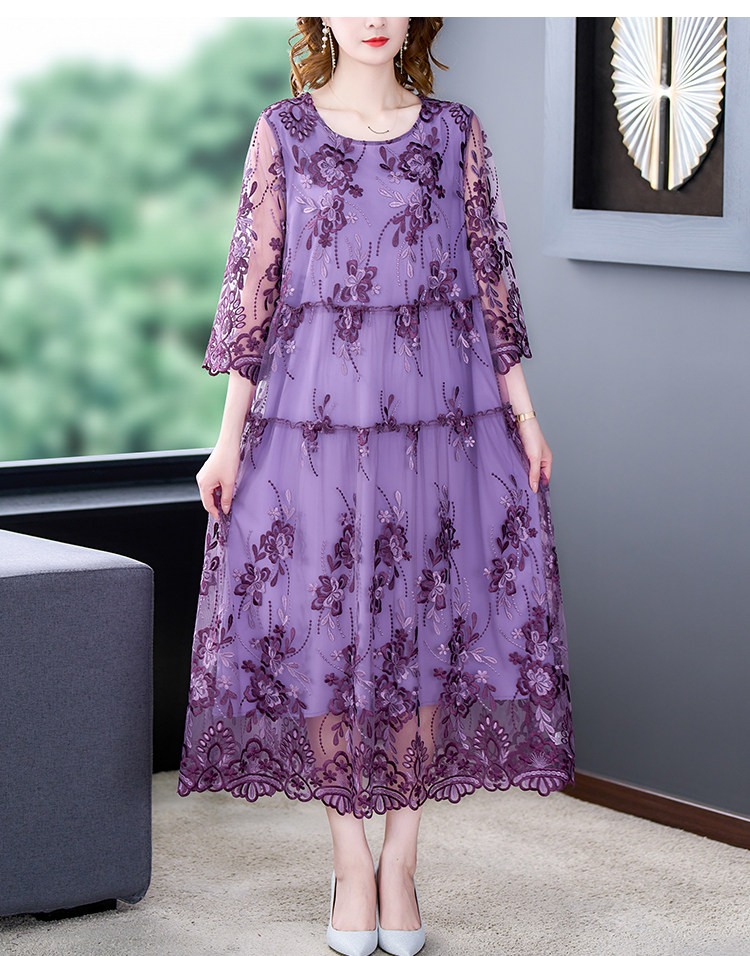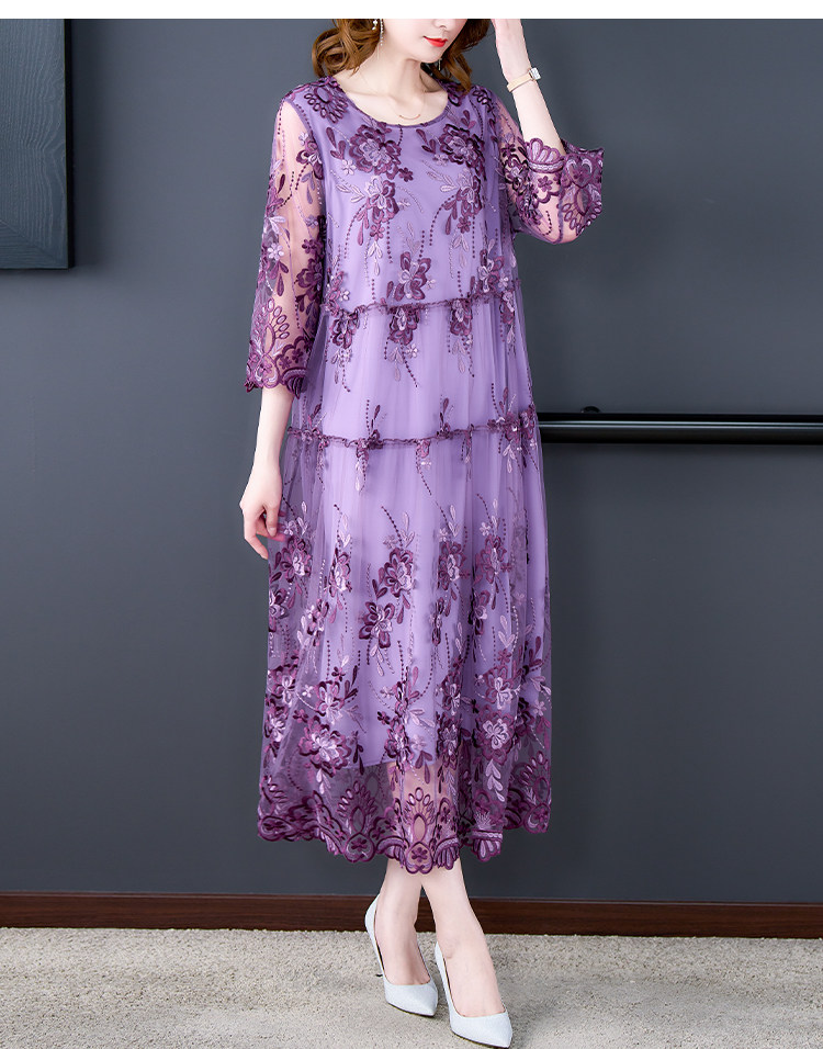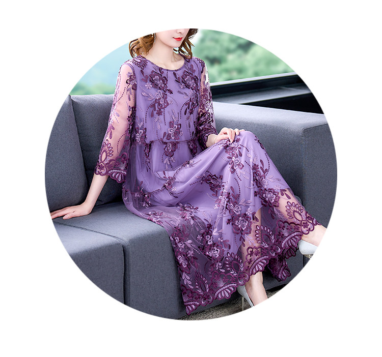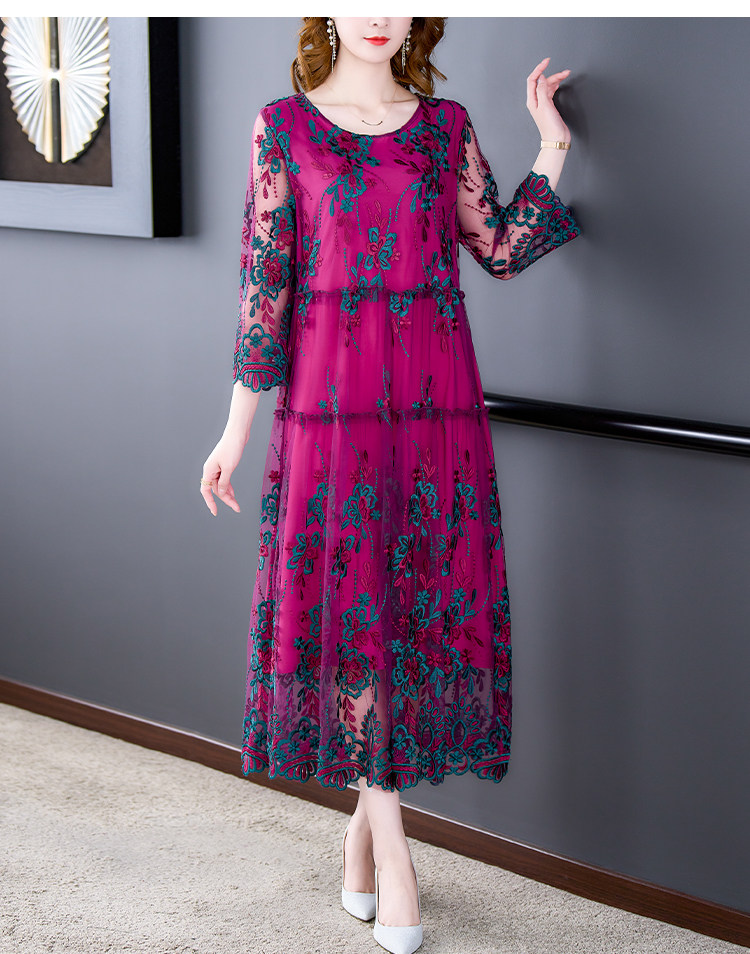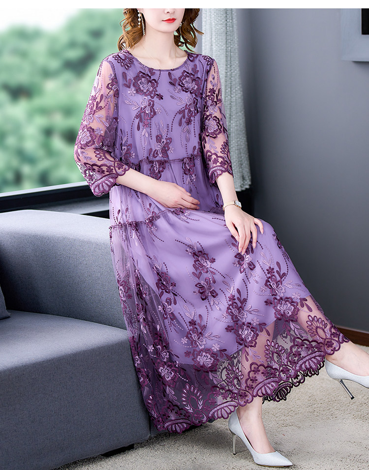 RM4948#重工网纱刺绣连衣裙女夏2022新款大码女装高端真丝桑蚕丝显瘦裙子