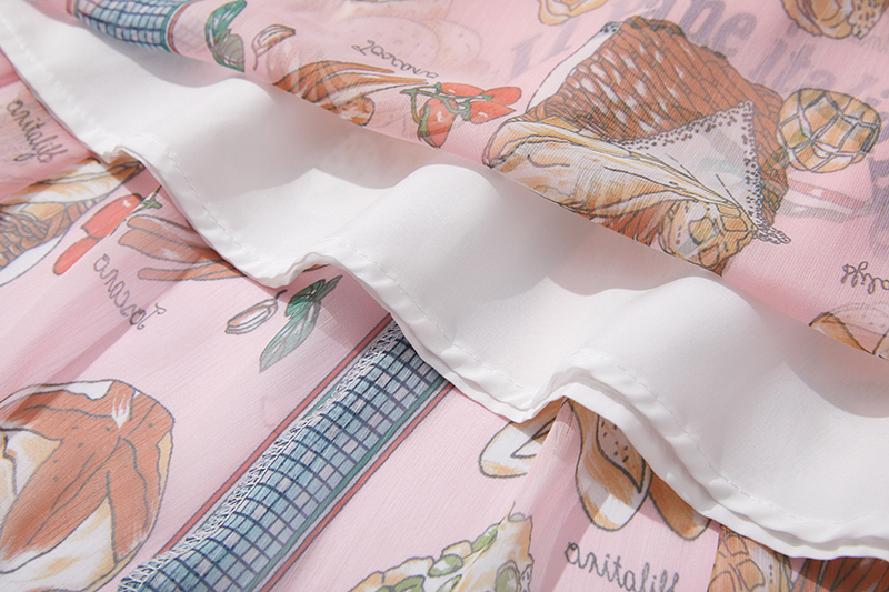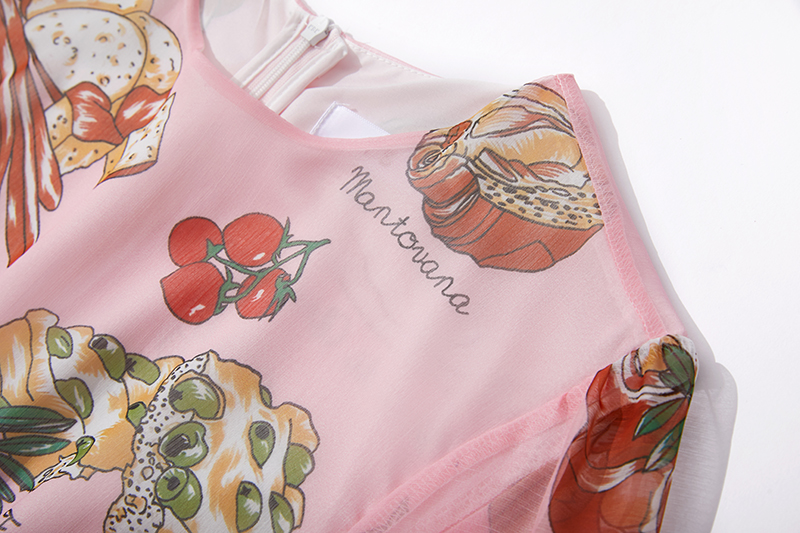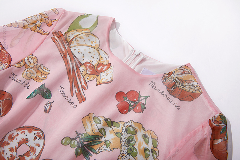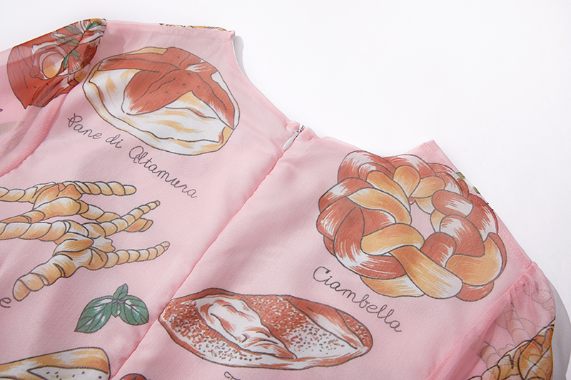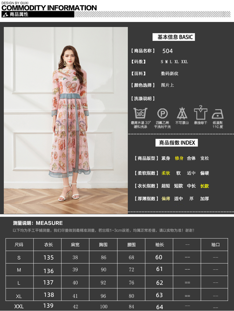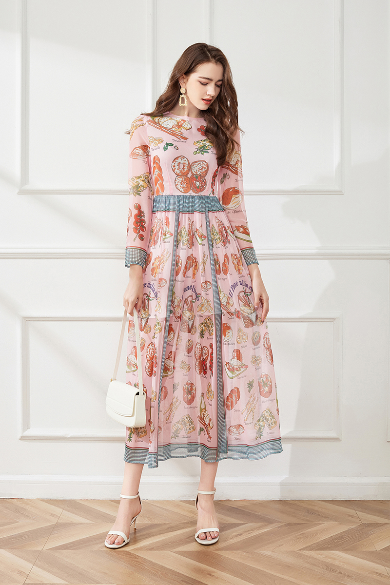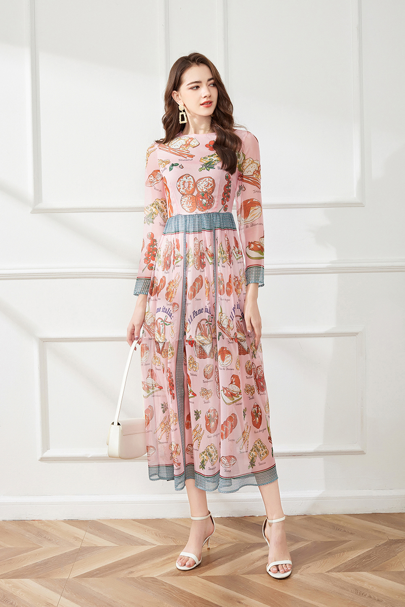 RM4958#春夏轻薄仿真丝雪纺印花连衣裙 圆领大摆大摆A字裙