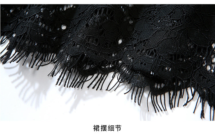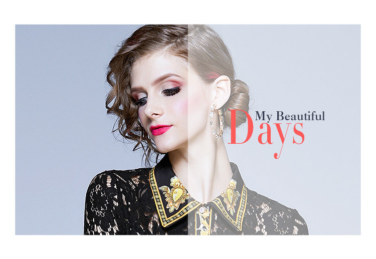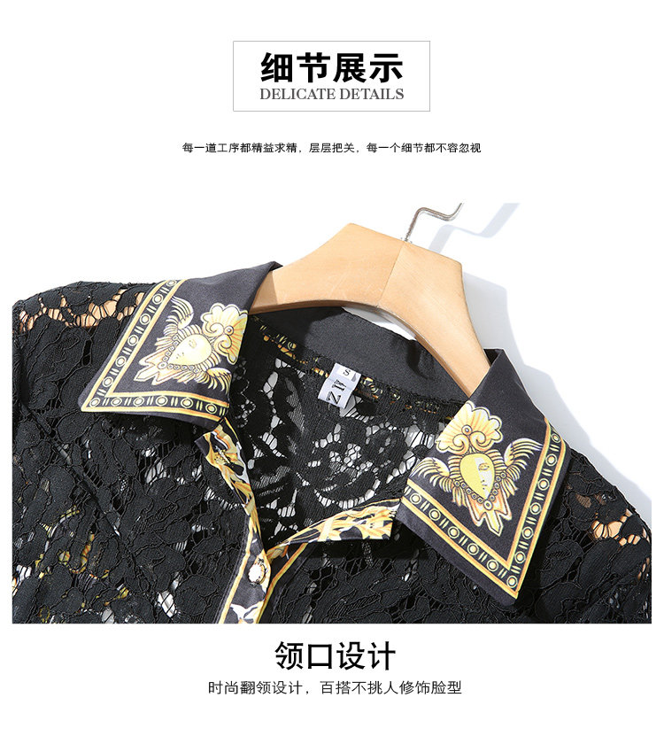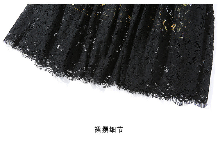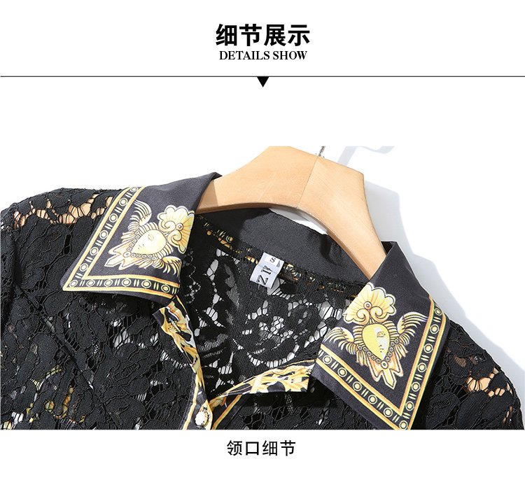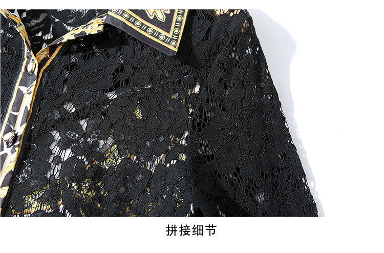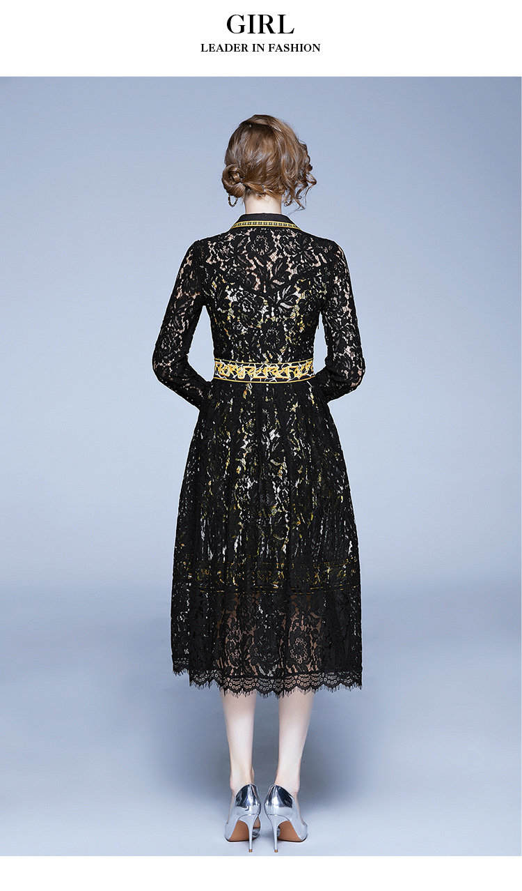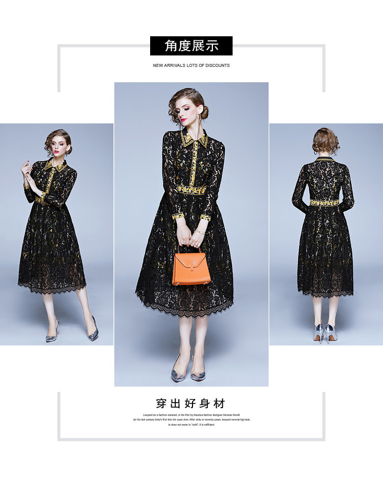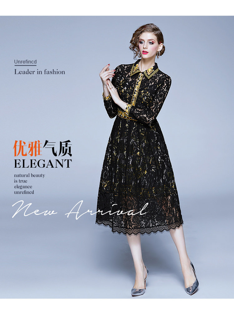 RM4972#新款翻领印花拼接 蕾丝中长款连衣裙