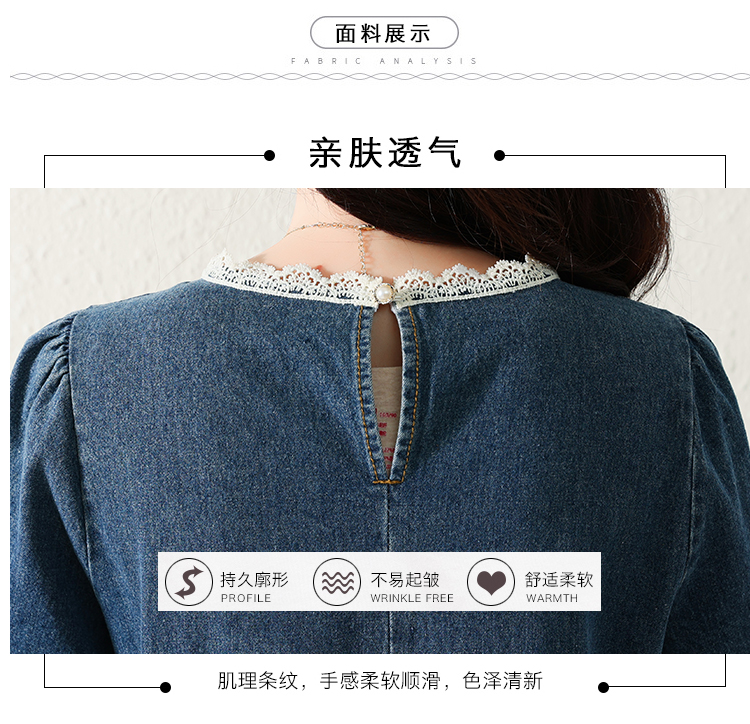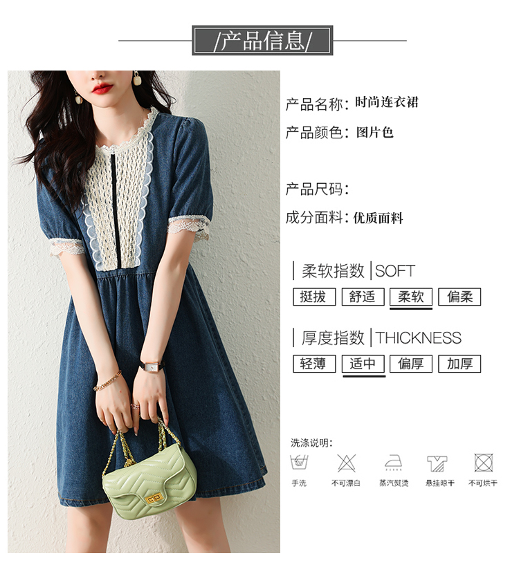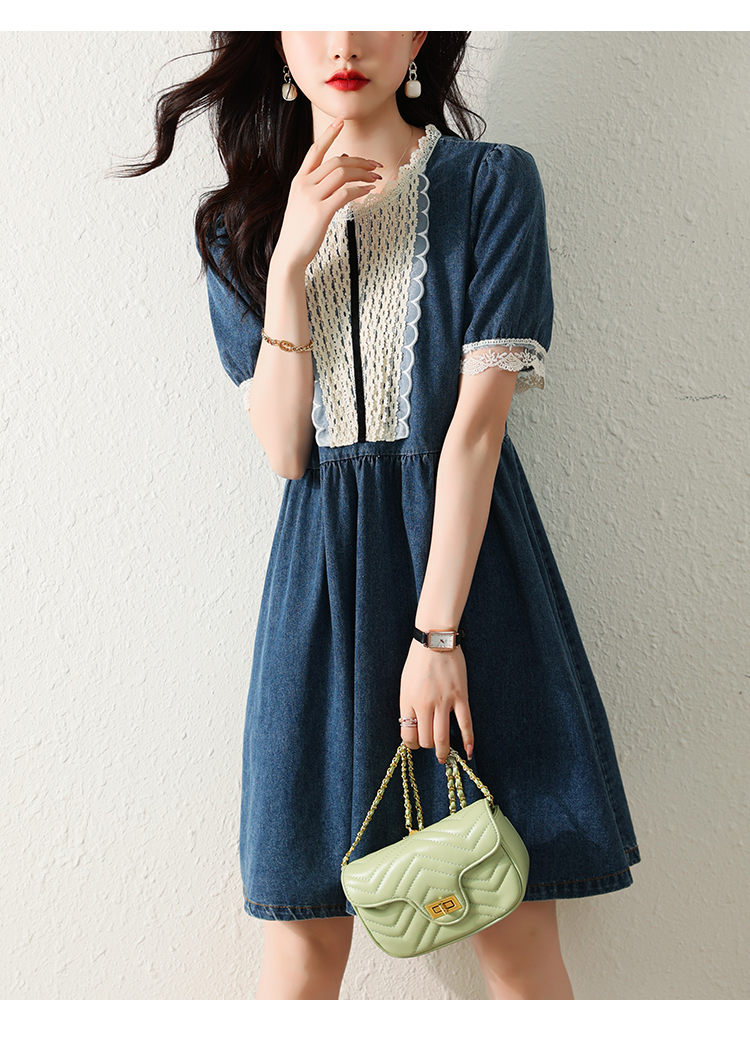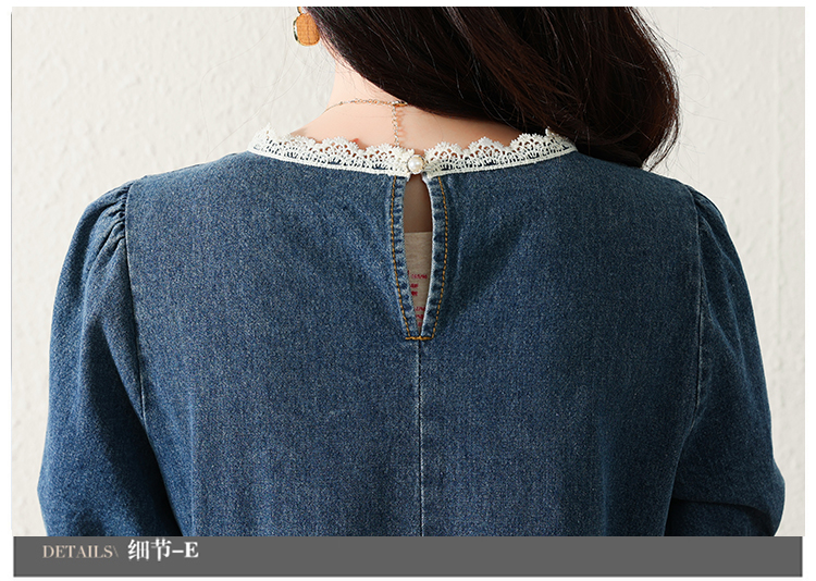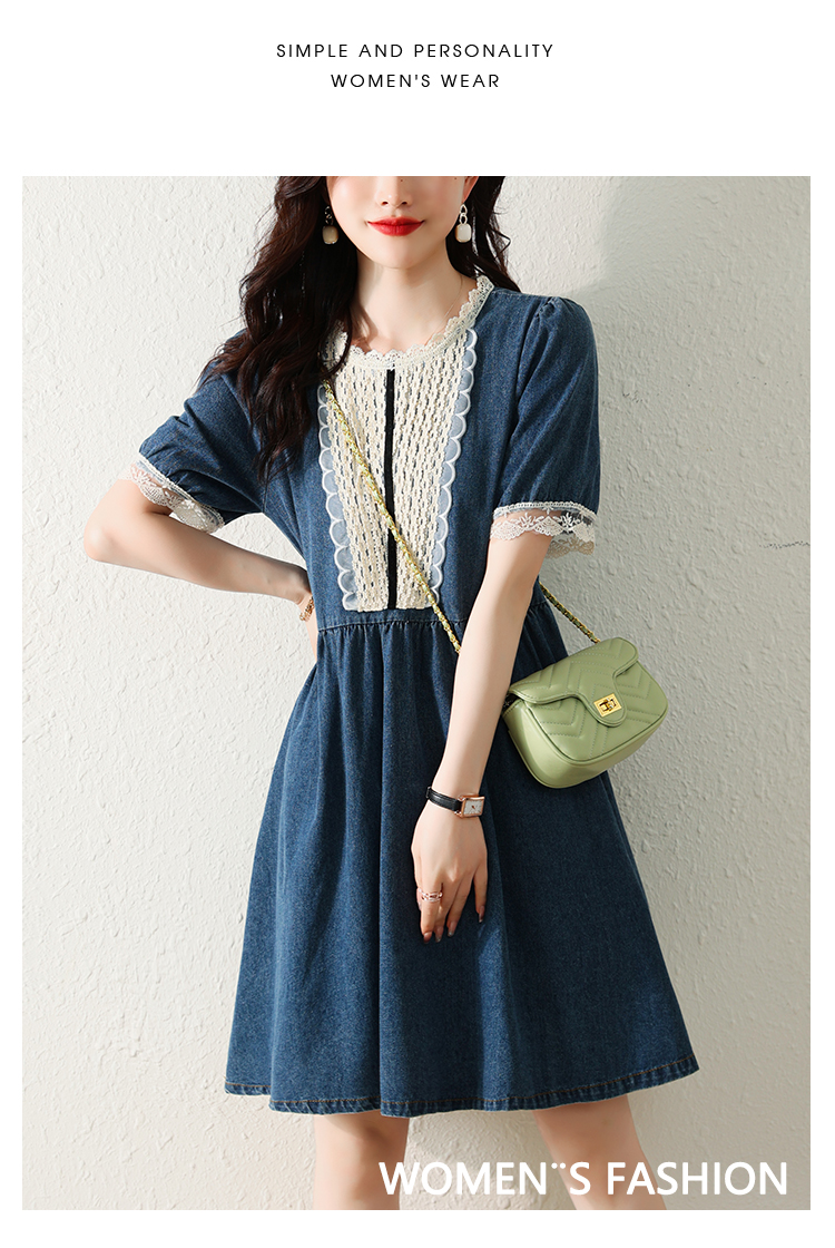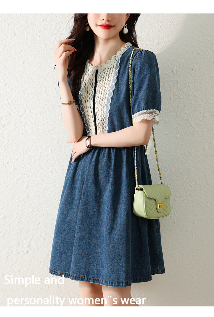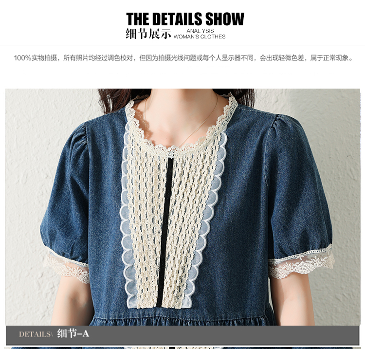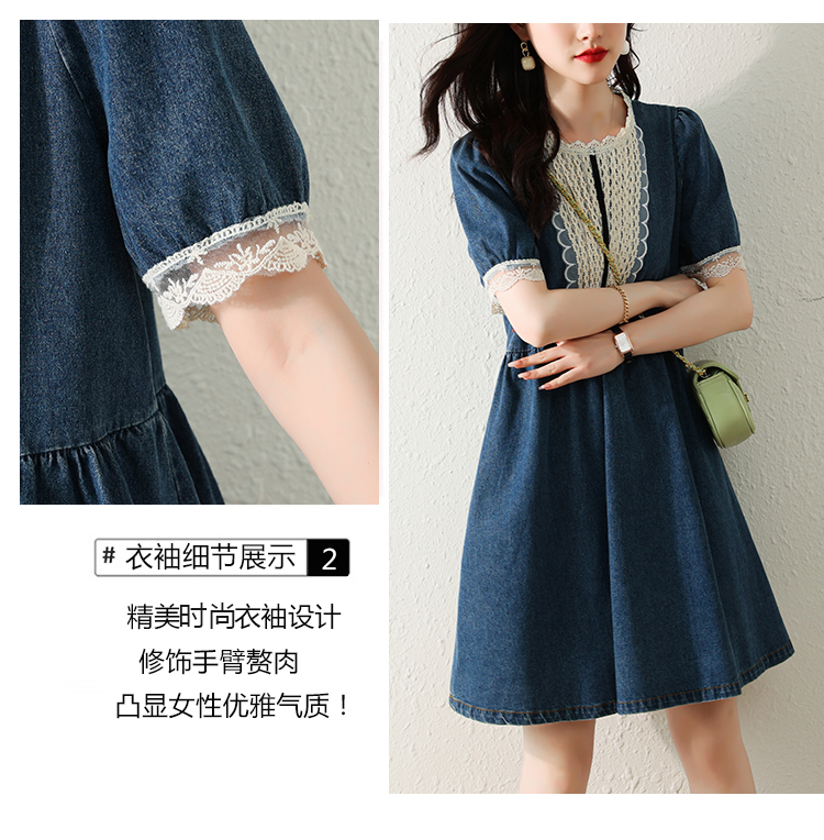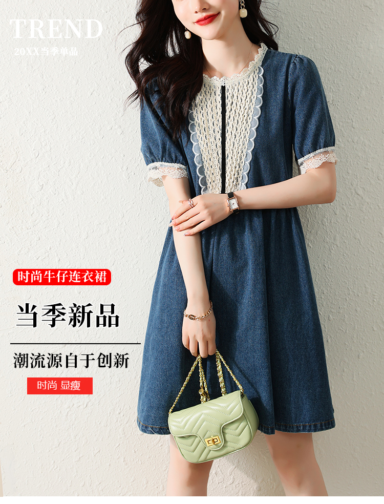 RM5228#夏季新款大码女装时尚洋气减龄遮肚显瘦蕾丝牛仔连衣裙
