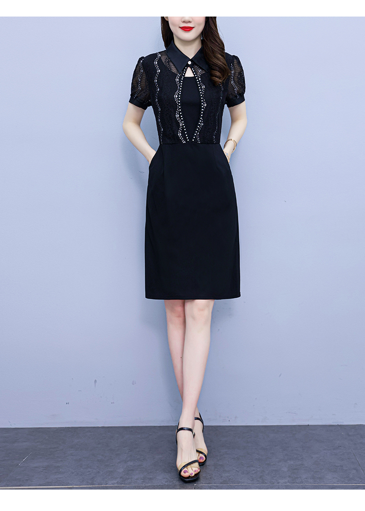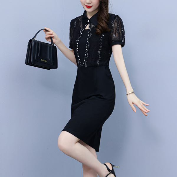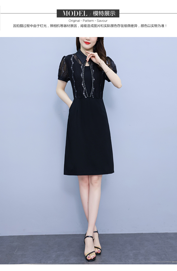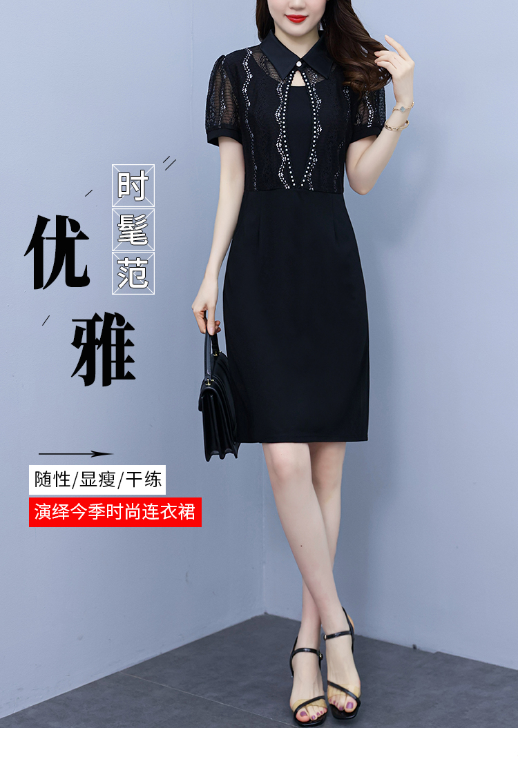 RM5275#大码女装气质蕾丝拼接连衣裙2023夏季新款胖妹妹遮肚显瘦裙子