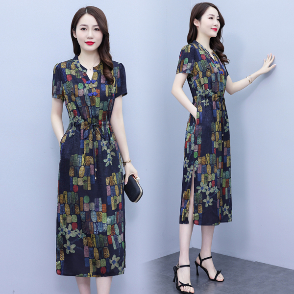 RM5284#醋酸连衣裙女夏2023年新款真丝桑蚕丝大牌高端洋气质名媛妈妈裙子