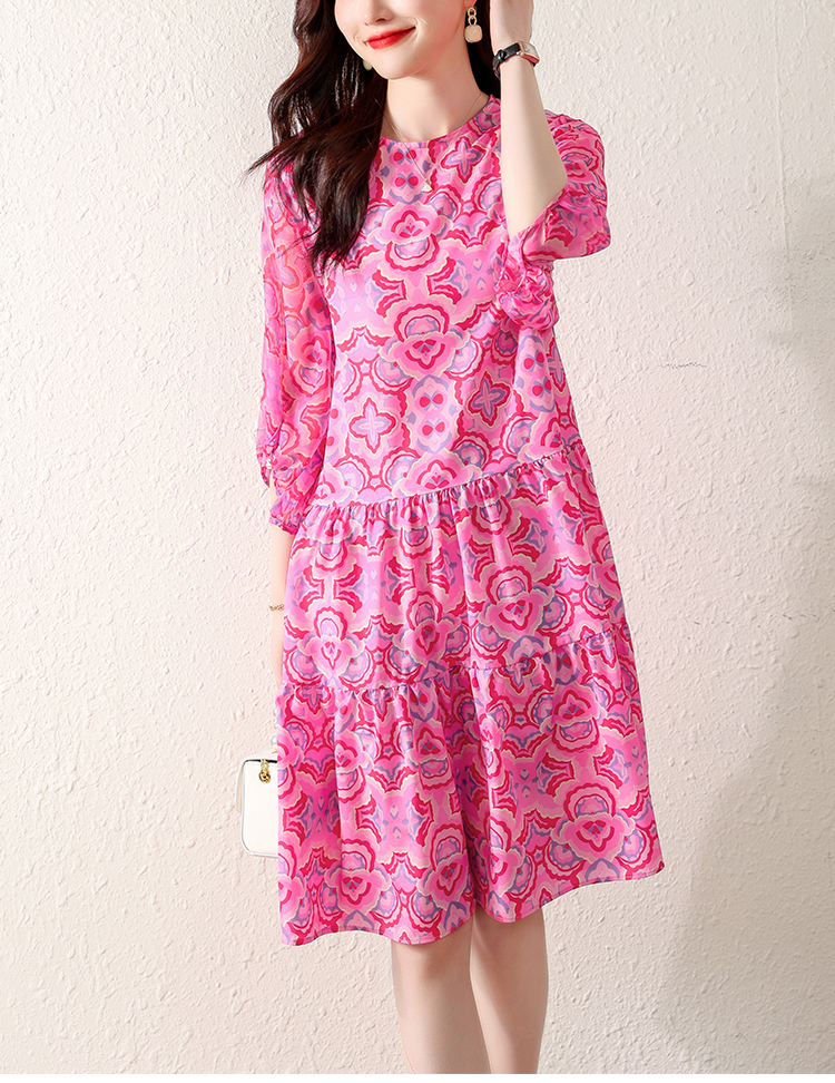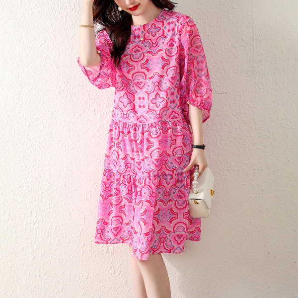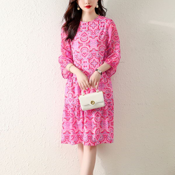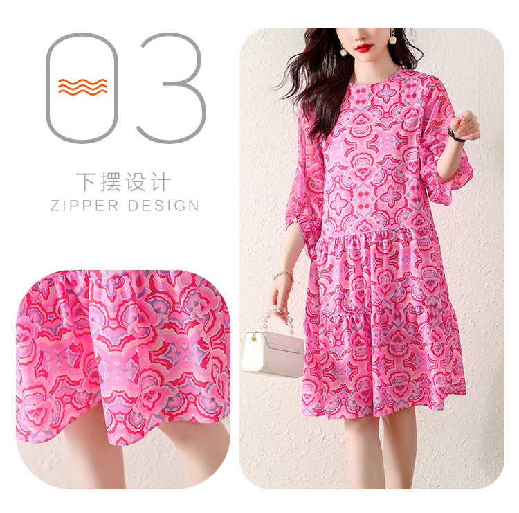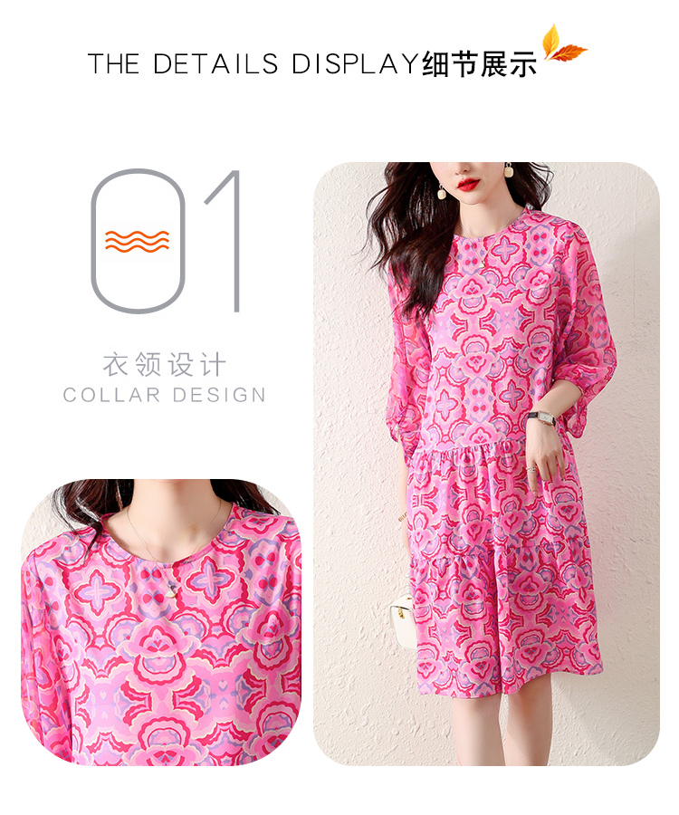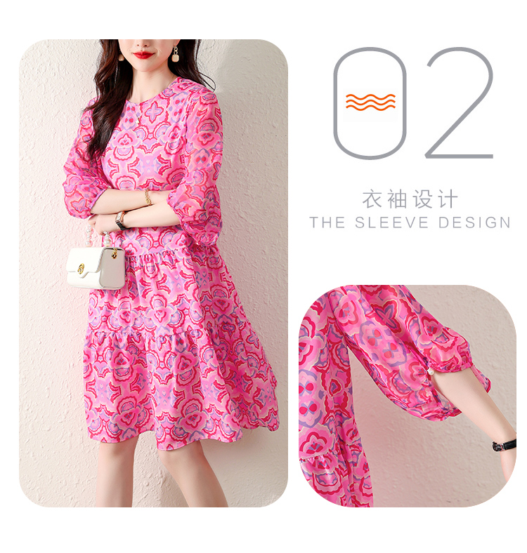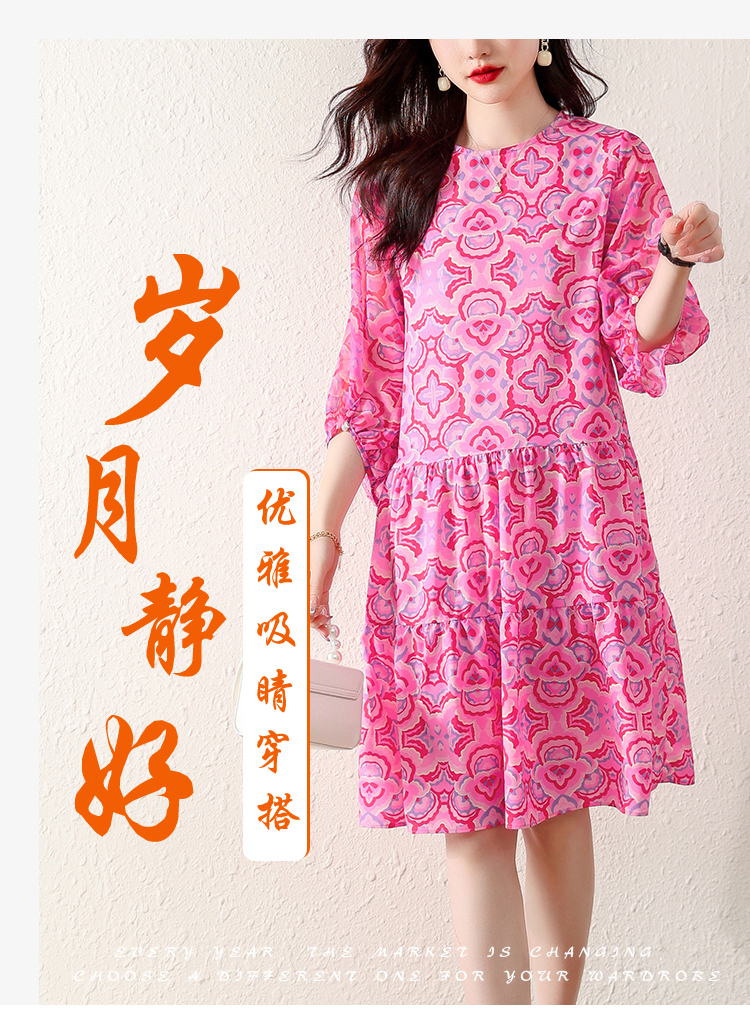 RM5391#碎花裙子女2023春装新款中长款度假裙显瘦减龄圆领印花连衣裙