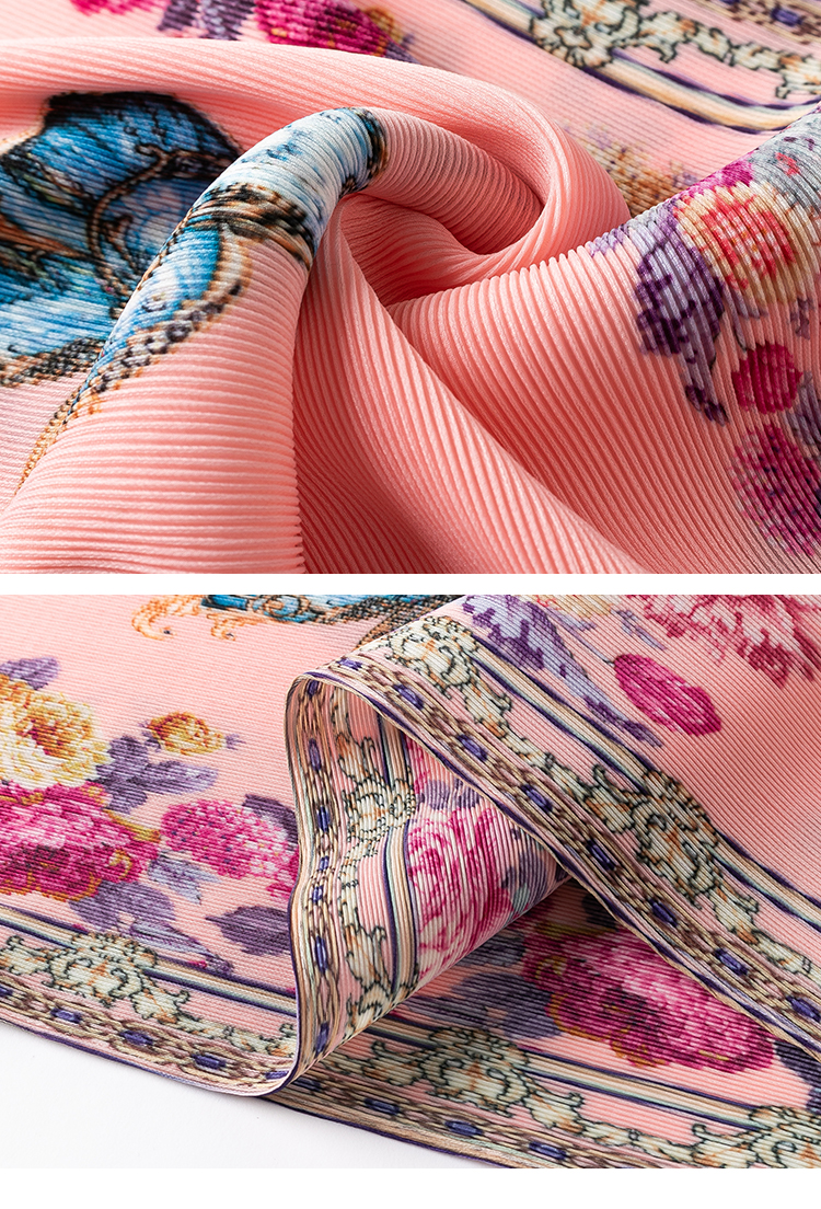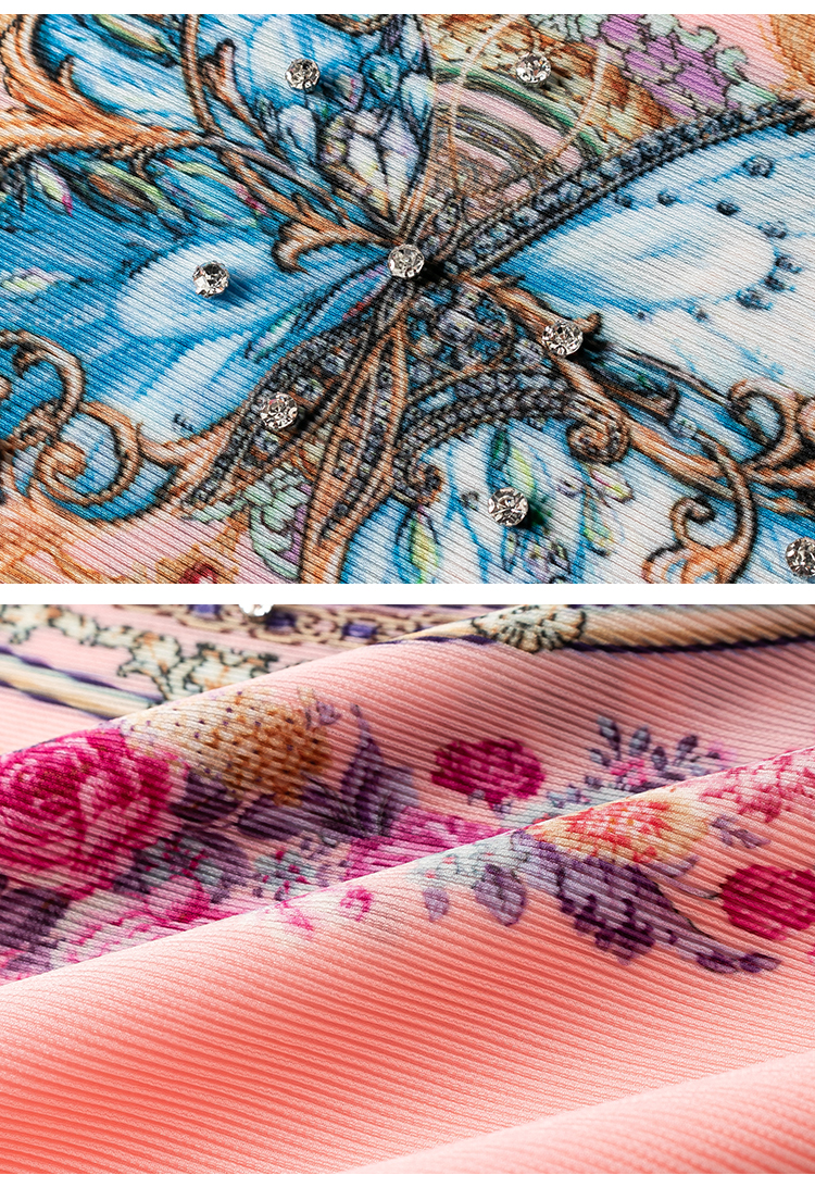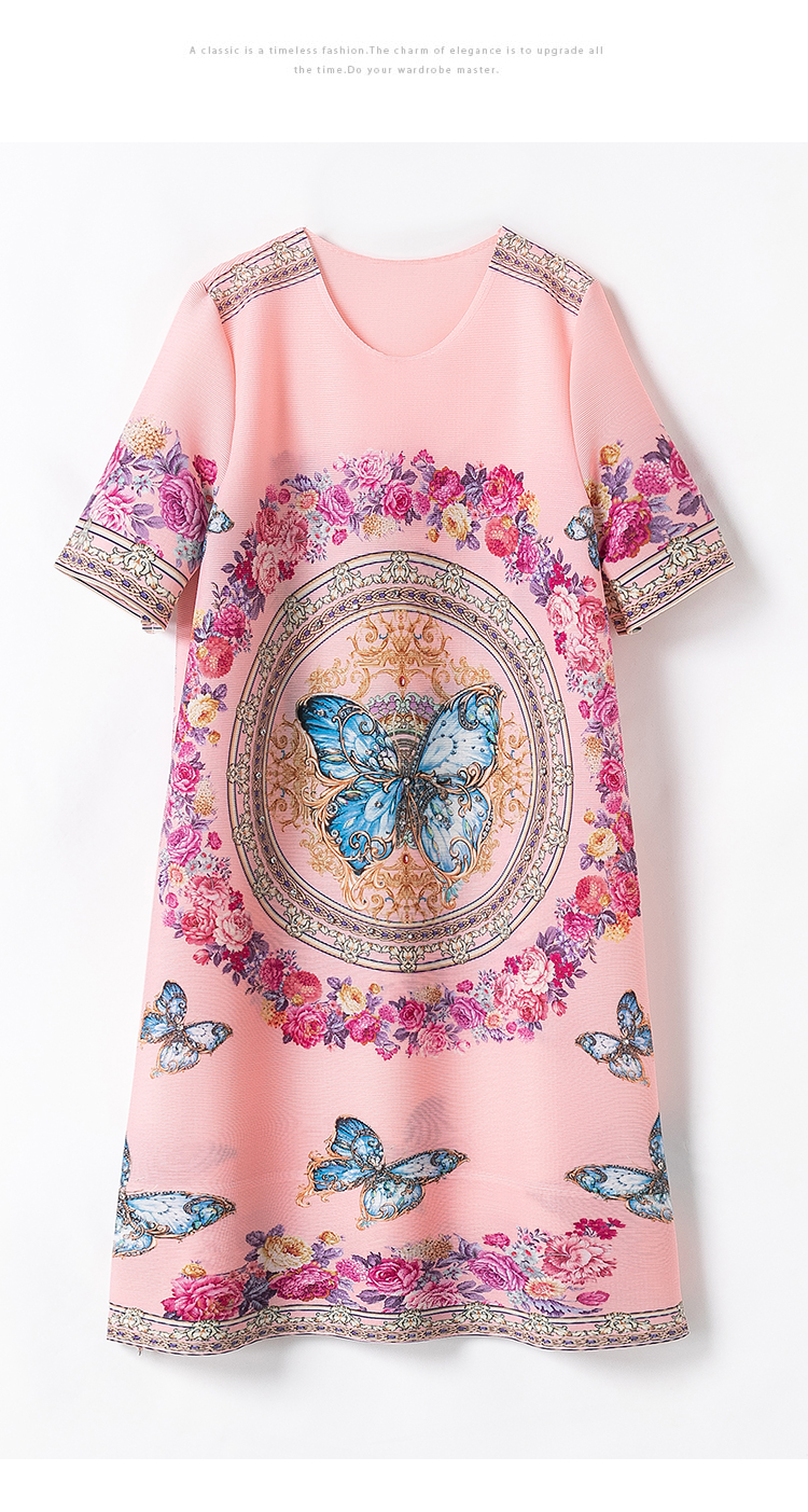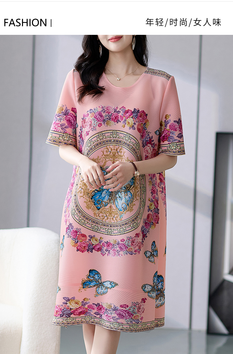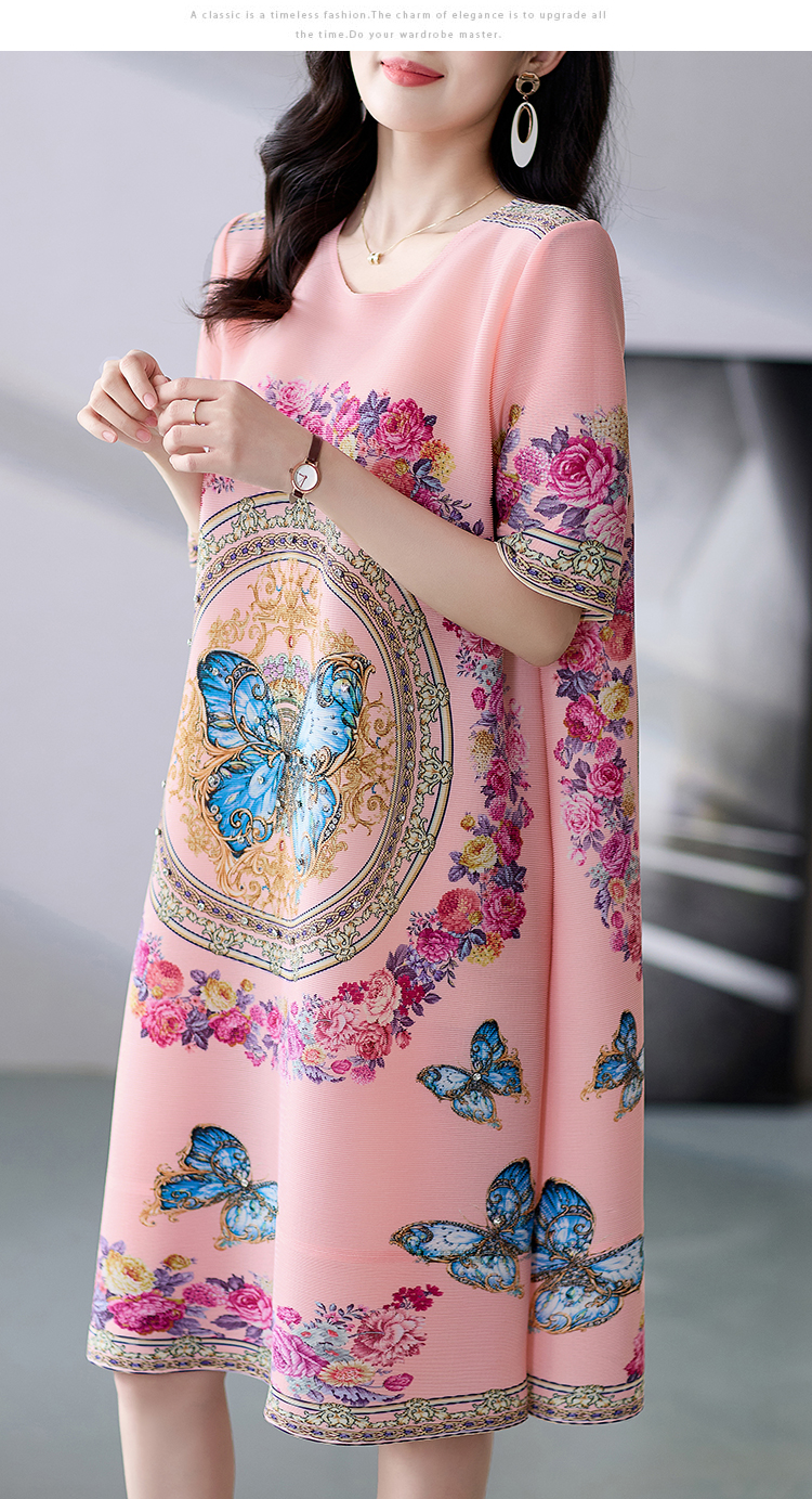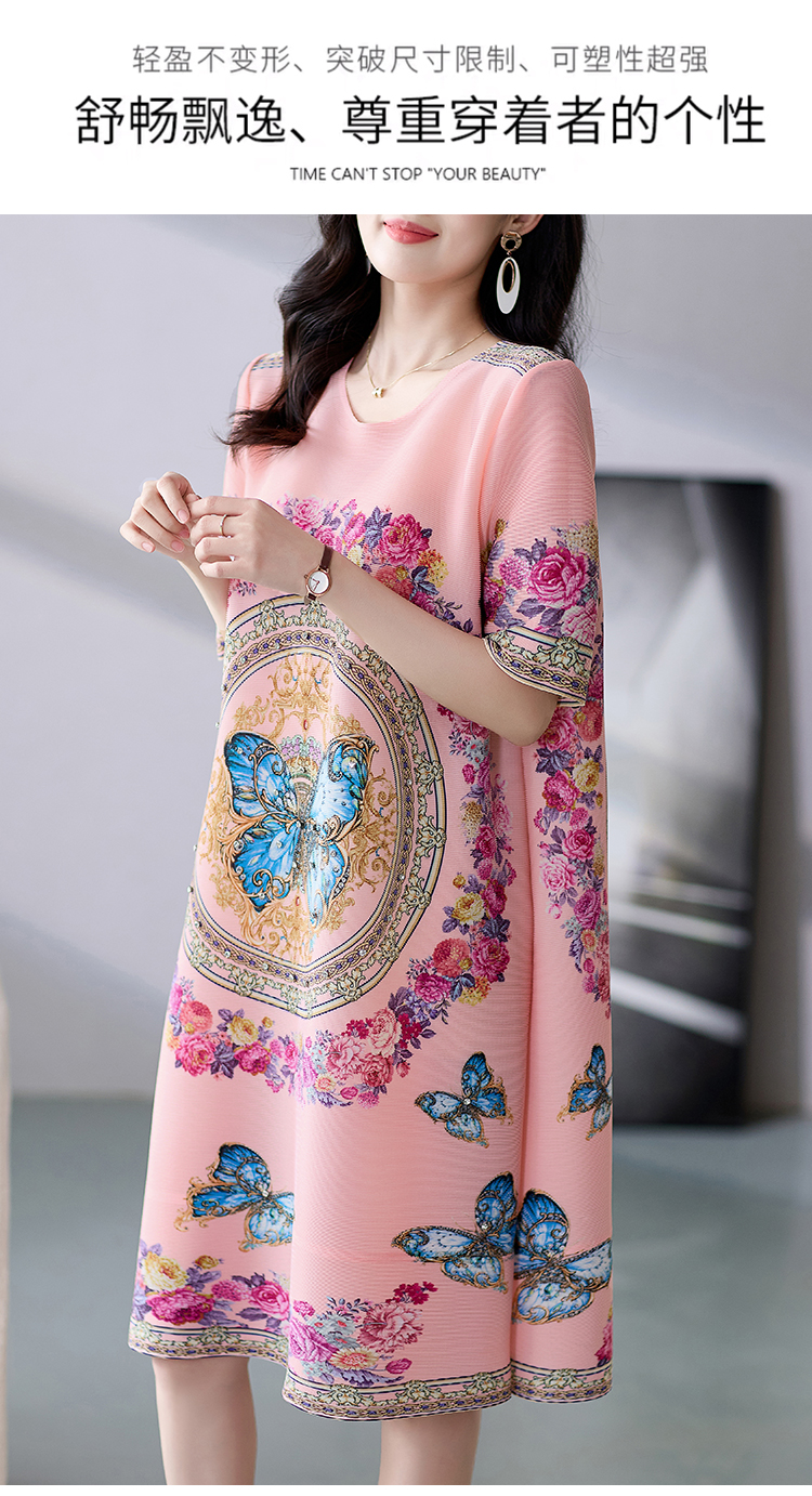 RM5236#夏季新款三宅褶皱印花钉钻大牌高级感连衣裙宽松大码妈妈A裙